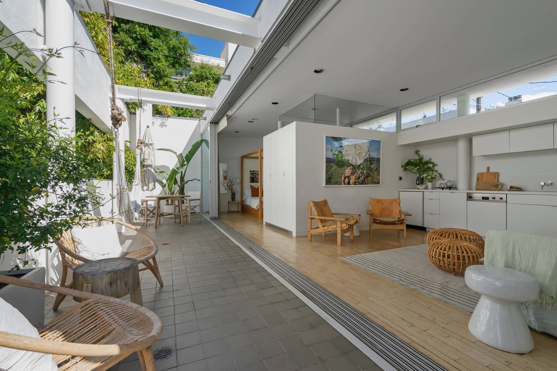 Tropical exterior with a bohemian interior - a unique home that embraces the California lifestyle.