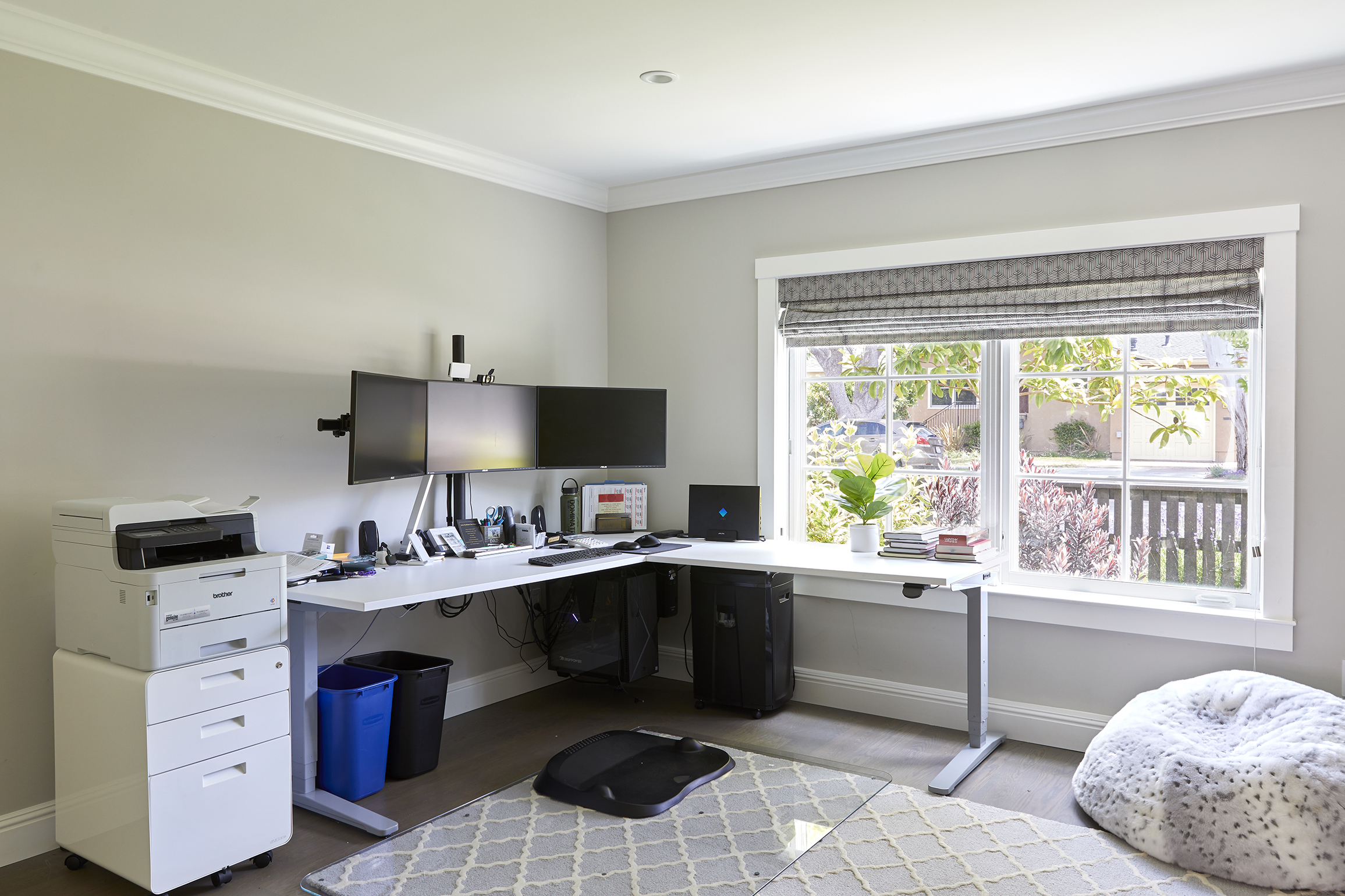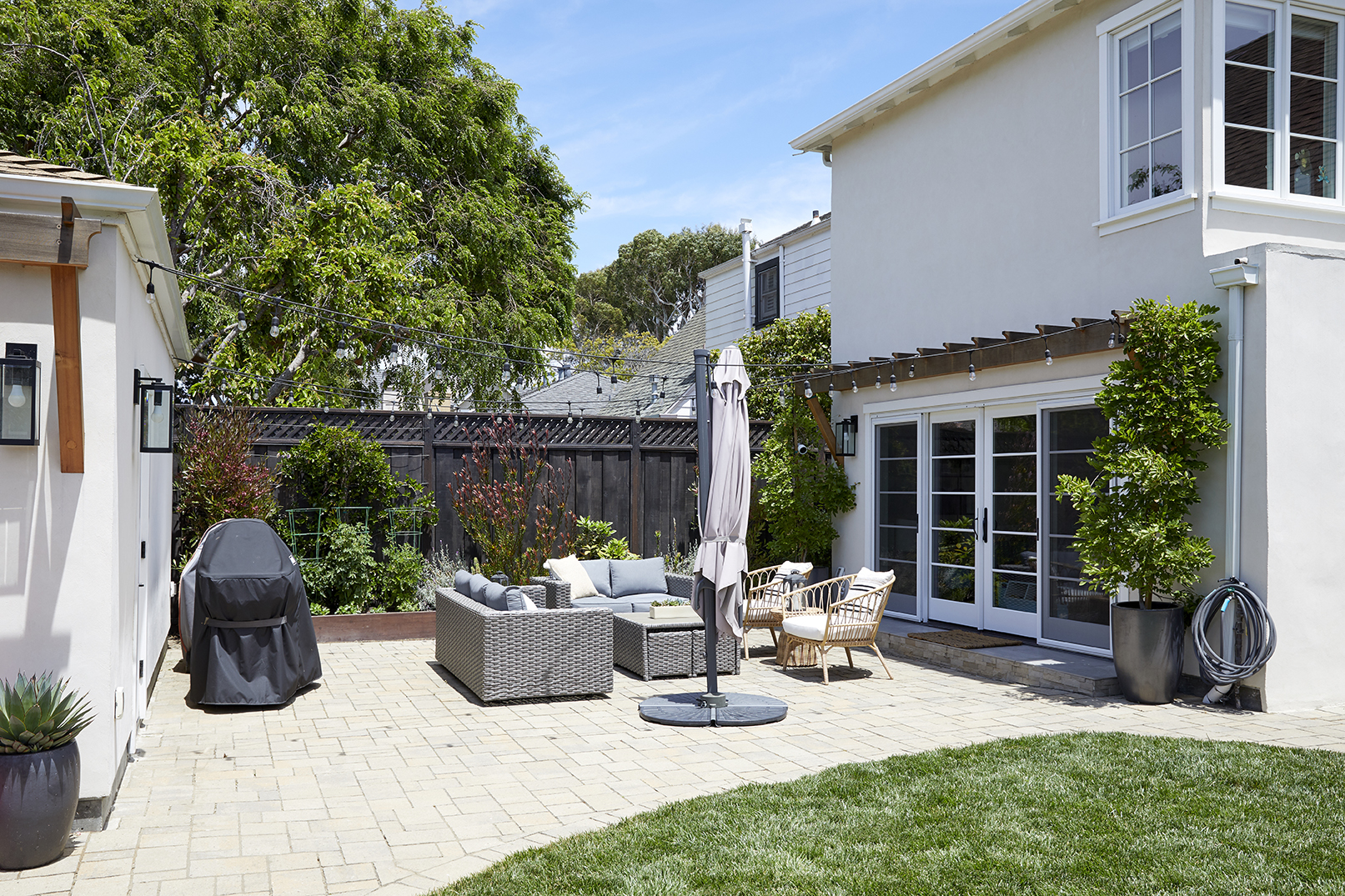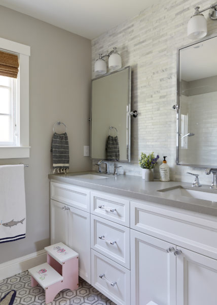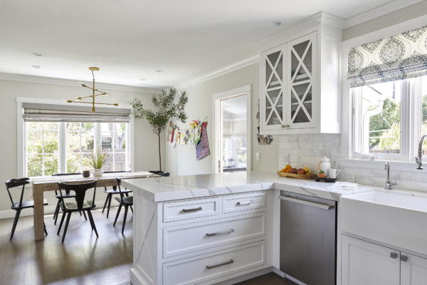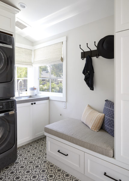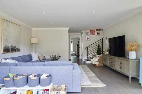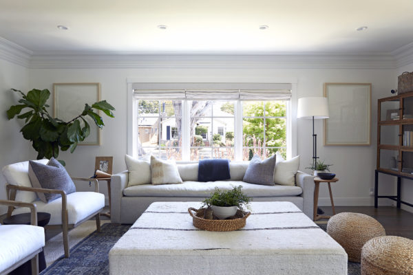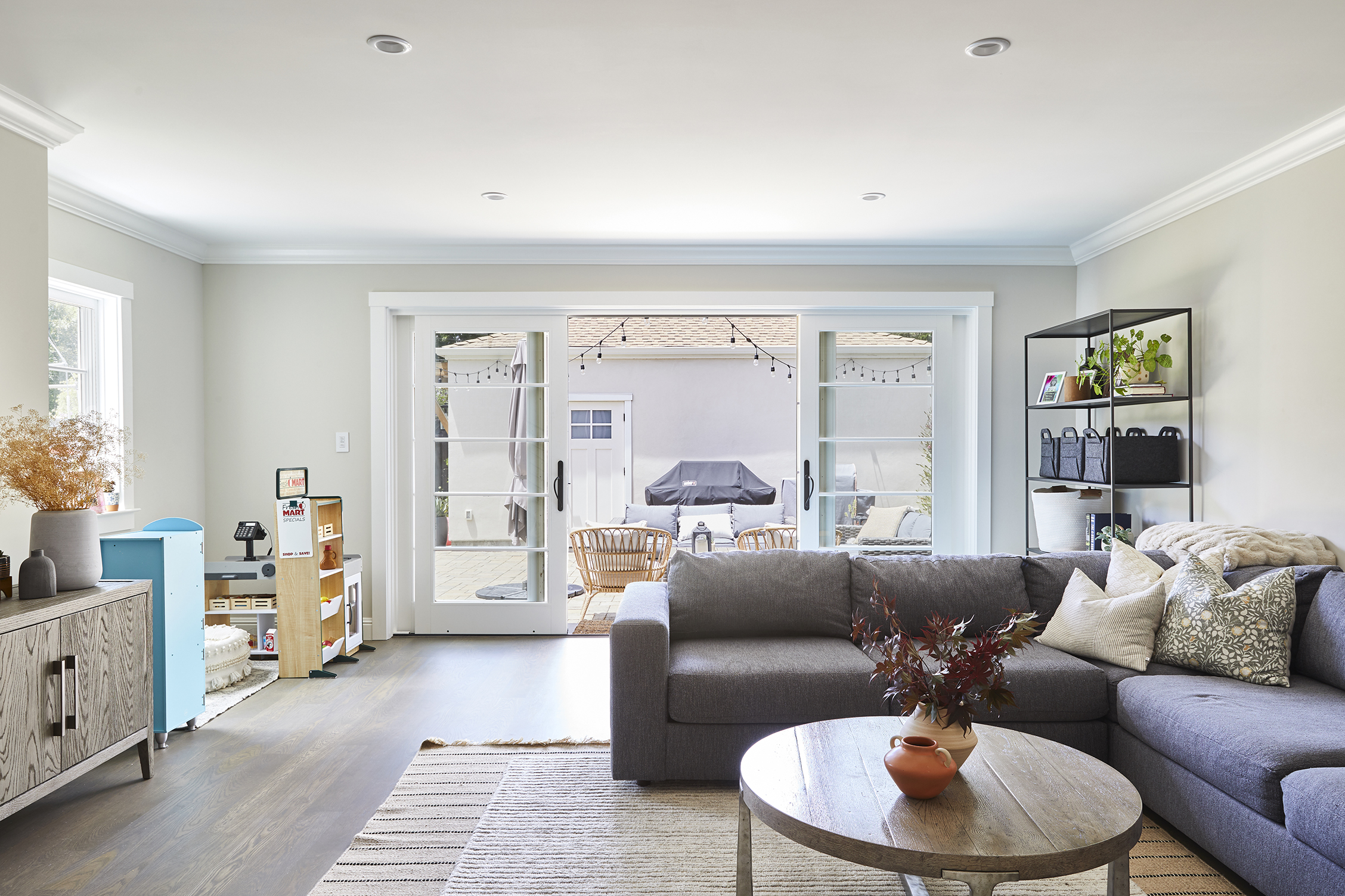 A yellow front door welcomes you into a traditional family home with casual elegance.
