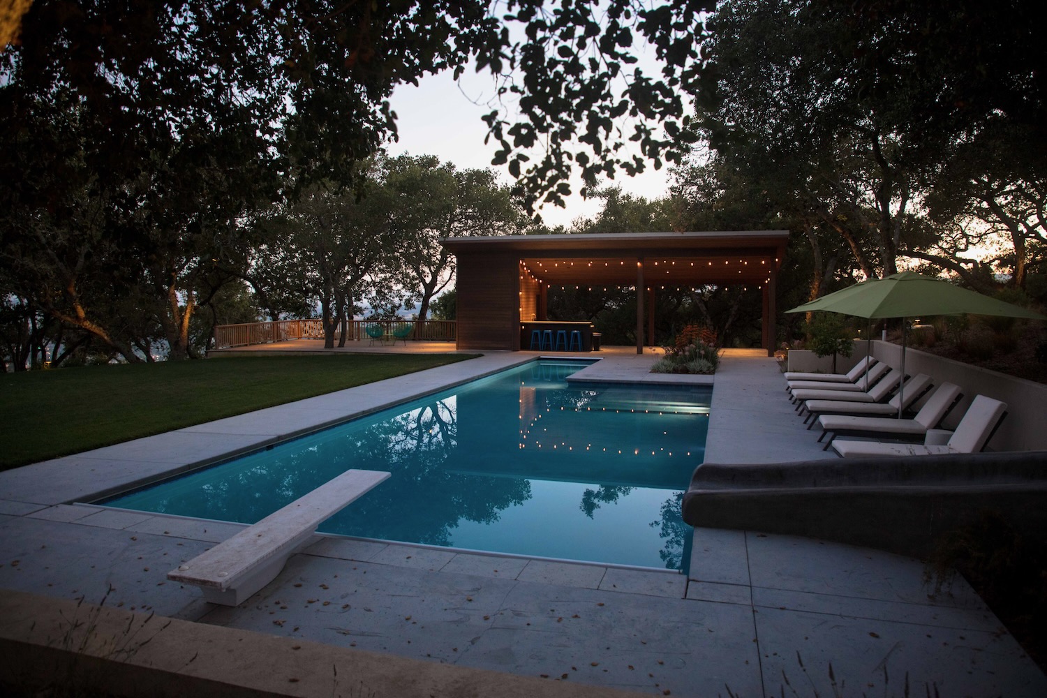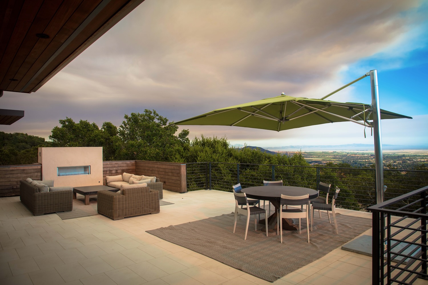 Situated in beautiful wine country, this 20-acre property has sweeping panoramic views of the Sonoma Valley and, on bright days, the San Francisco skyline.
