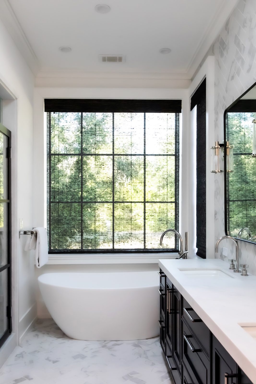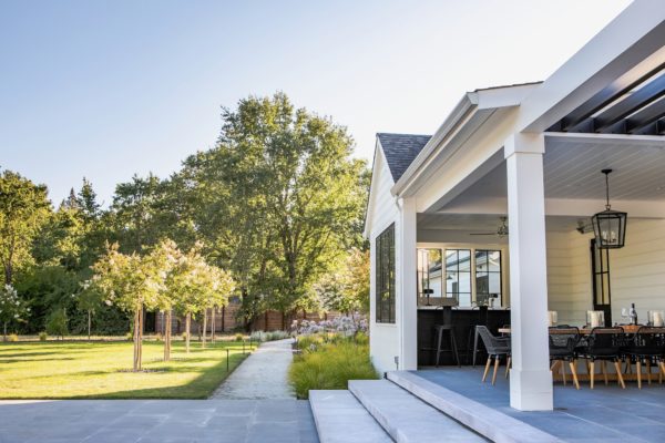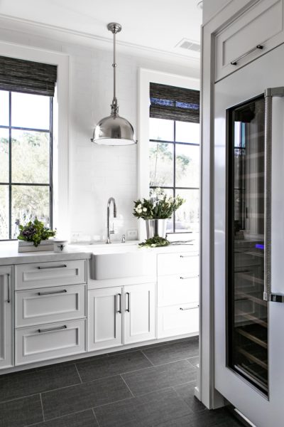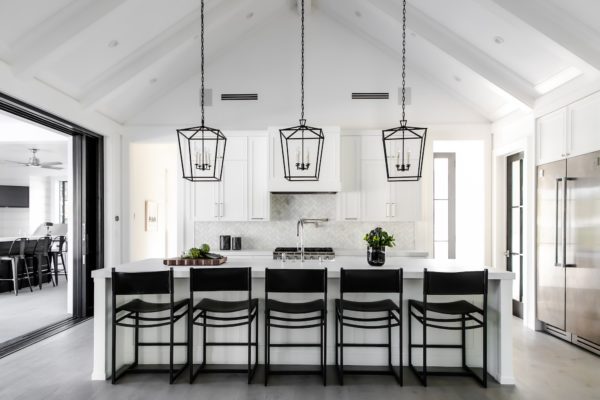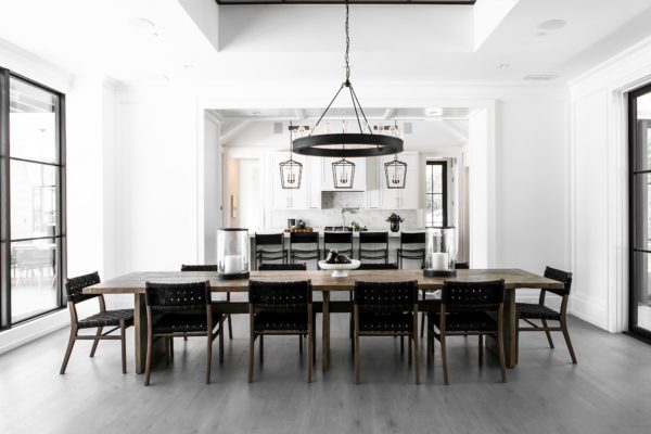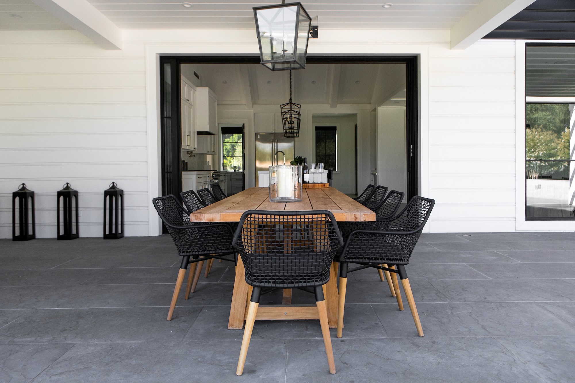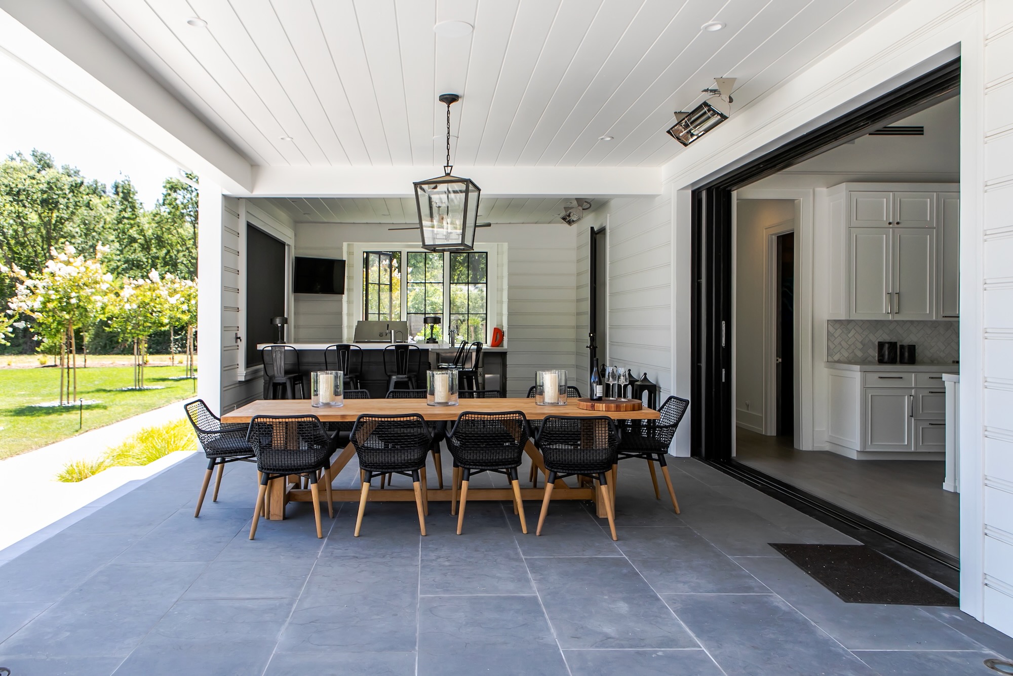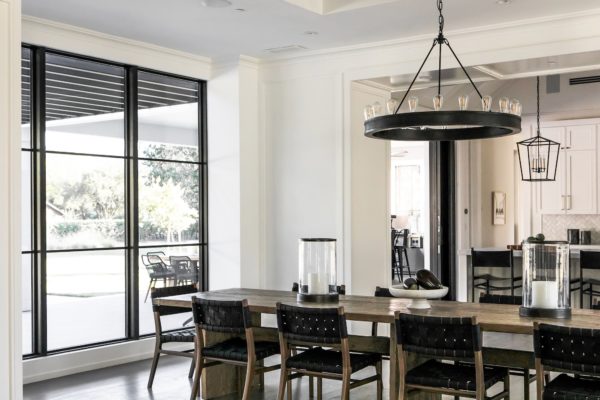 A serene space with an open, symmetrical floor plan that is flooded with natural light. Large windows allow the light to flow in and open wide for the best of alfresco entertaining by the pool. The furnishings have a modern sensibility with eye-catching surprises throughout. The open floor plan is perfect for large celebrations but intimate enough for a weekend away for two. The details of this Modern Farmhouse are layered in beauty and have created a home to be enjoyed for years to come.