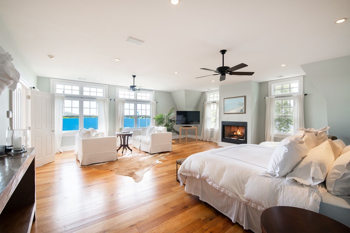 The house stands majestically tall at 2 stories with a full attic and spreads 5 bedrooms and 6.5 bathrooms across 6,140 sq. ft. of pristine interior space and 8,900sq.ft with decking and auxiliary garage. This home is truly the crown jewel of North Sea Harbor. Highlights include a charming cedar shingle Gambrel-style roof, gorgeous tobacco barn oak hardwood floors, huge windows throughout with incredible harbor views from every room!