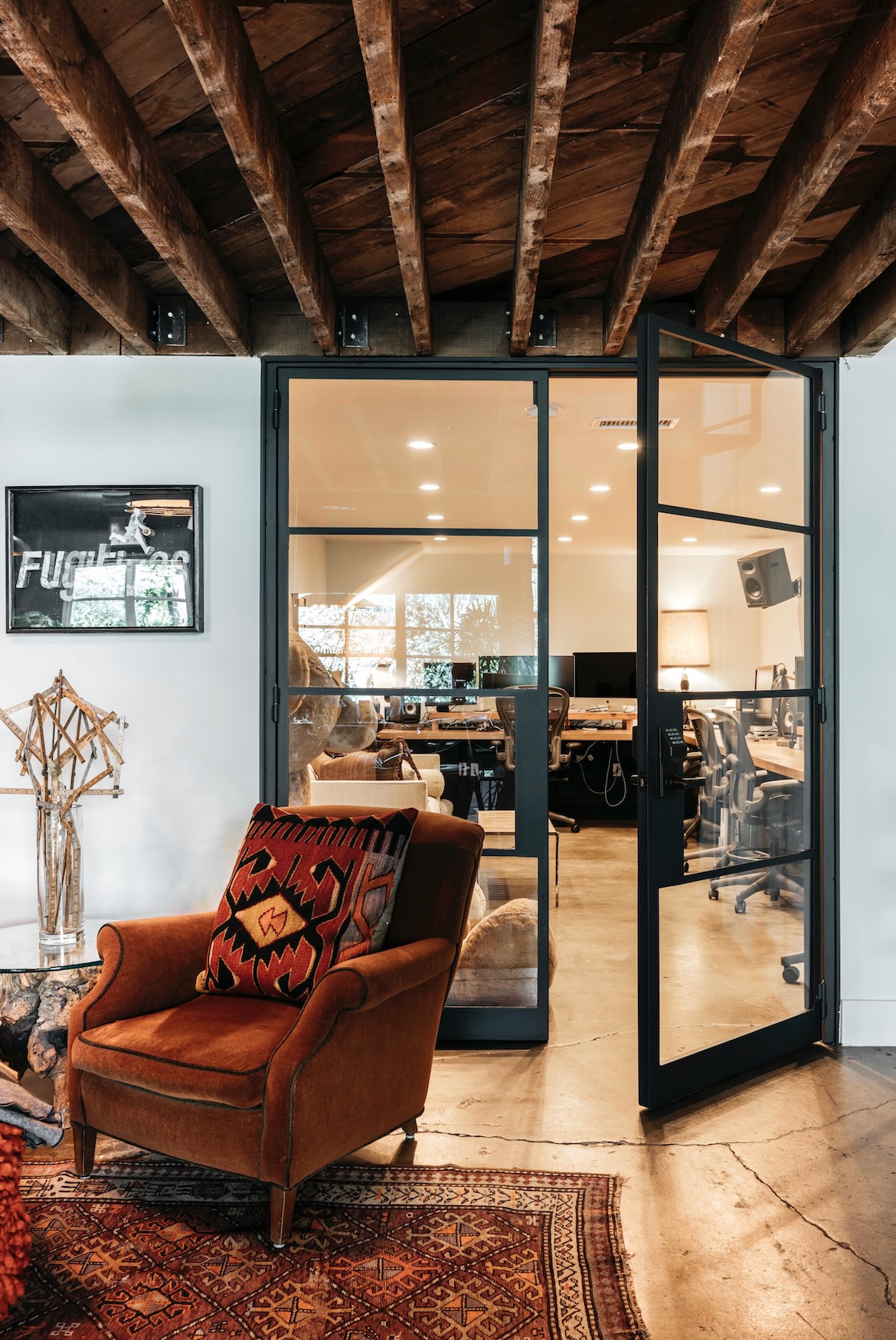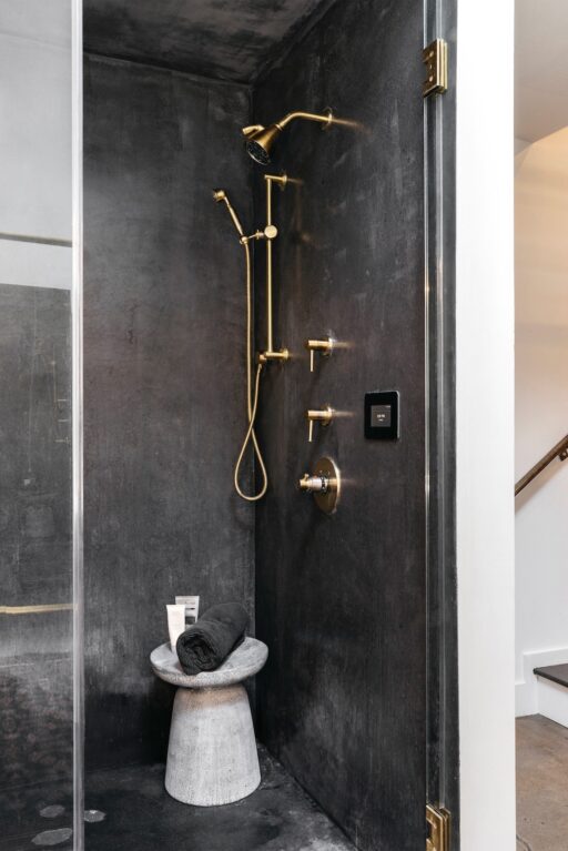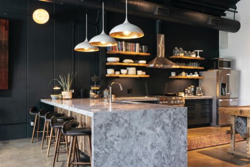 Contemporary loft textured with lots of light, wood and steel. Did you notice the rooftop deck, too?
