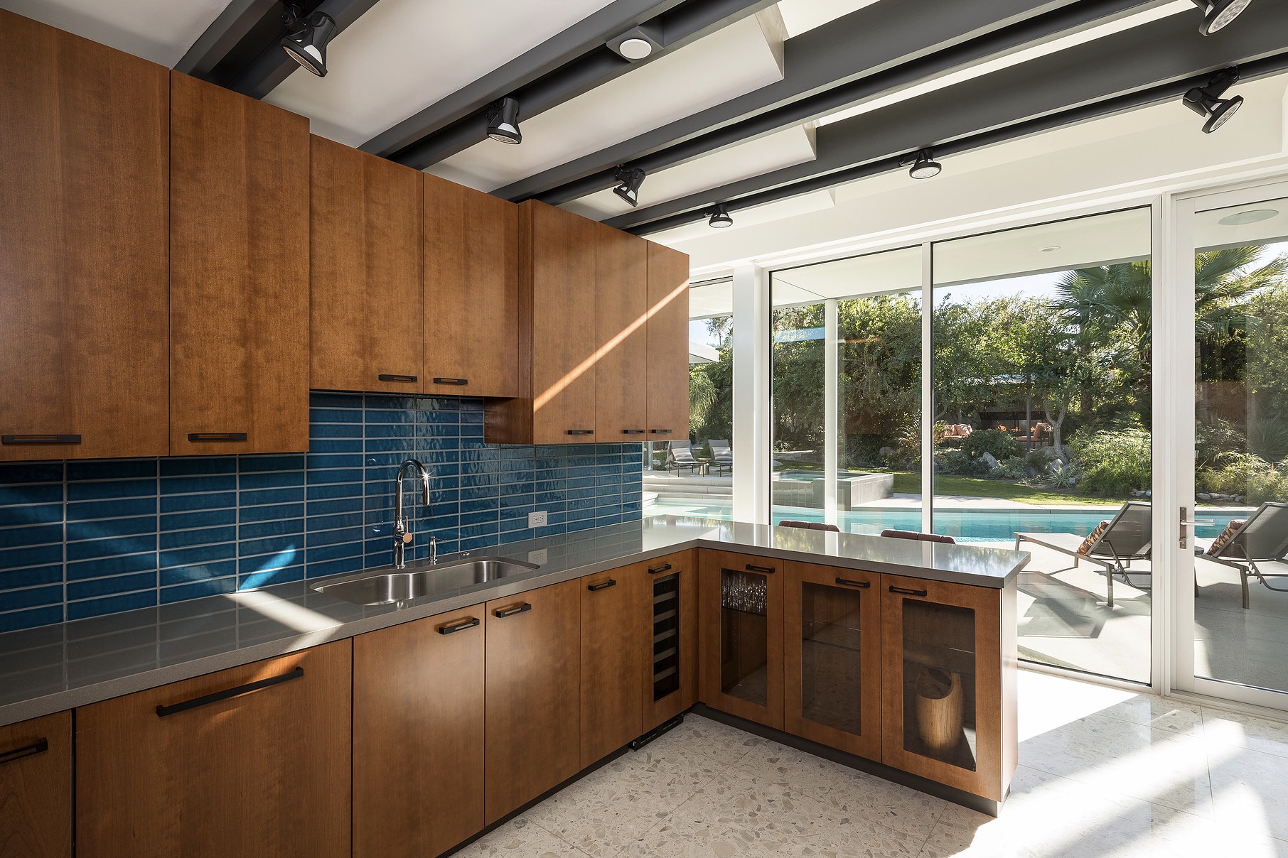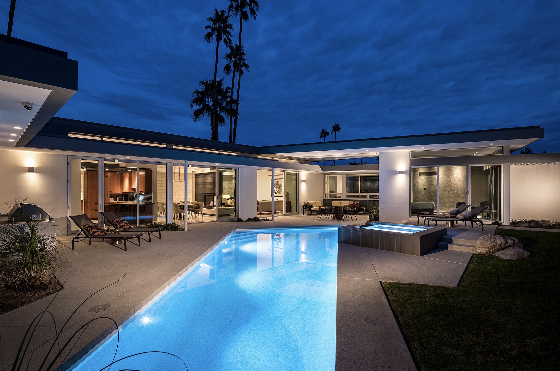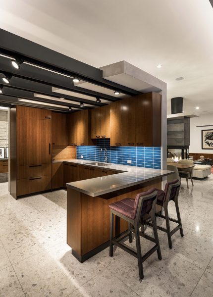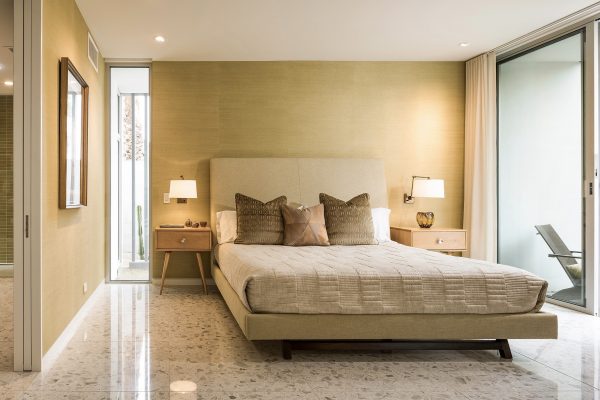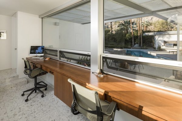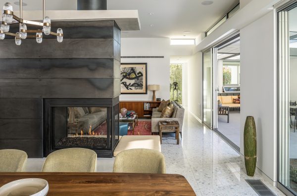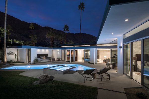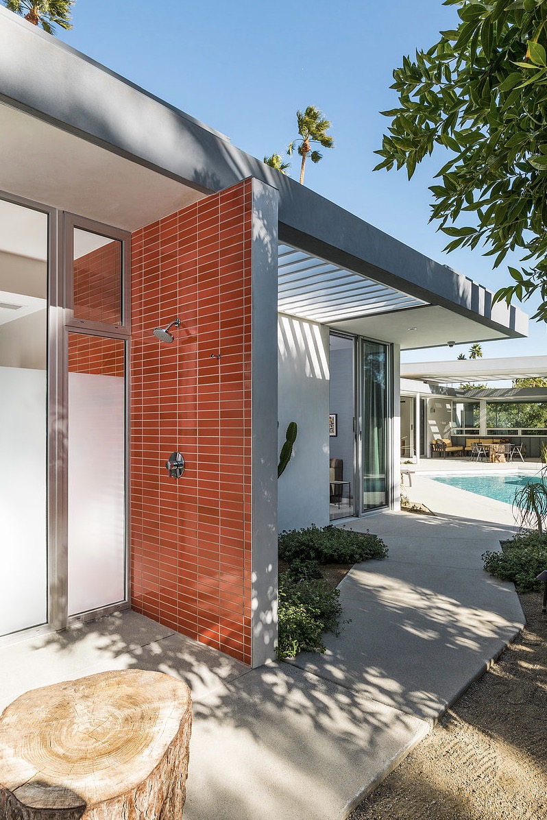It’s not just a mirage: the cool colors, elegant angles, and understated glam of this Palm Springs palace might just transport you back a century or so. Tones of sapphire sparkle in the luxe lap pool, while tangerine tiles jazz up the outdoor shower. Between retro rugs and fab fireplaces, open-concept architecture accentuates the fluidity between decor and desert.