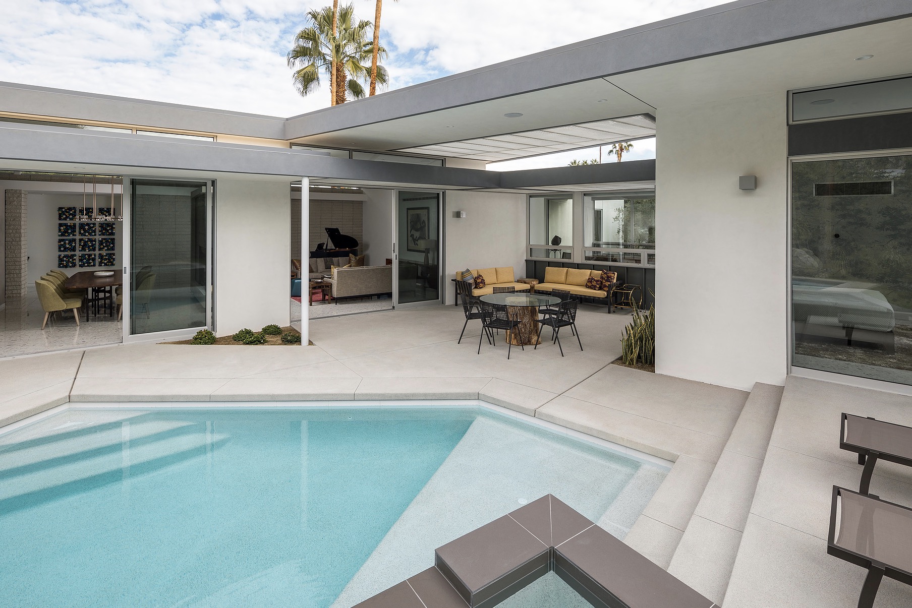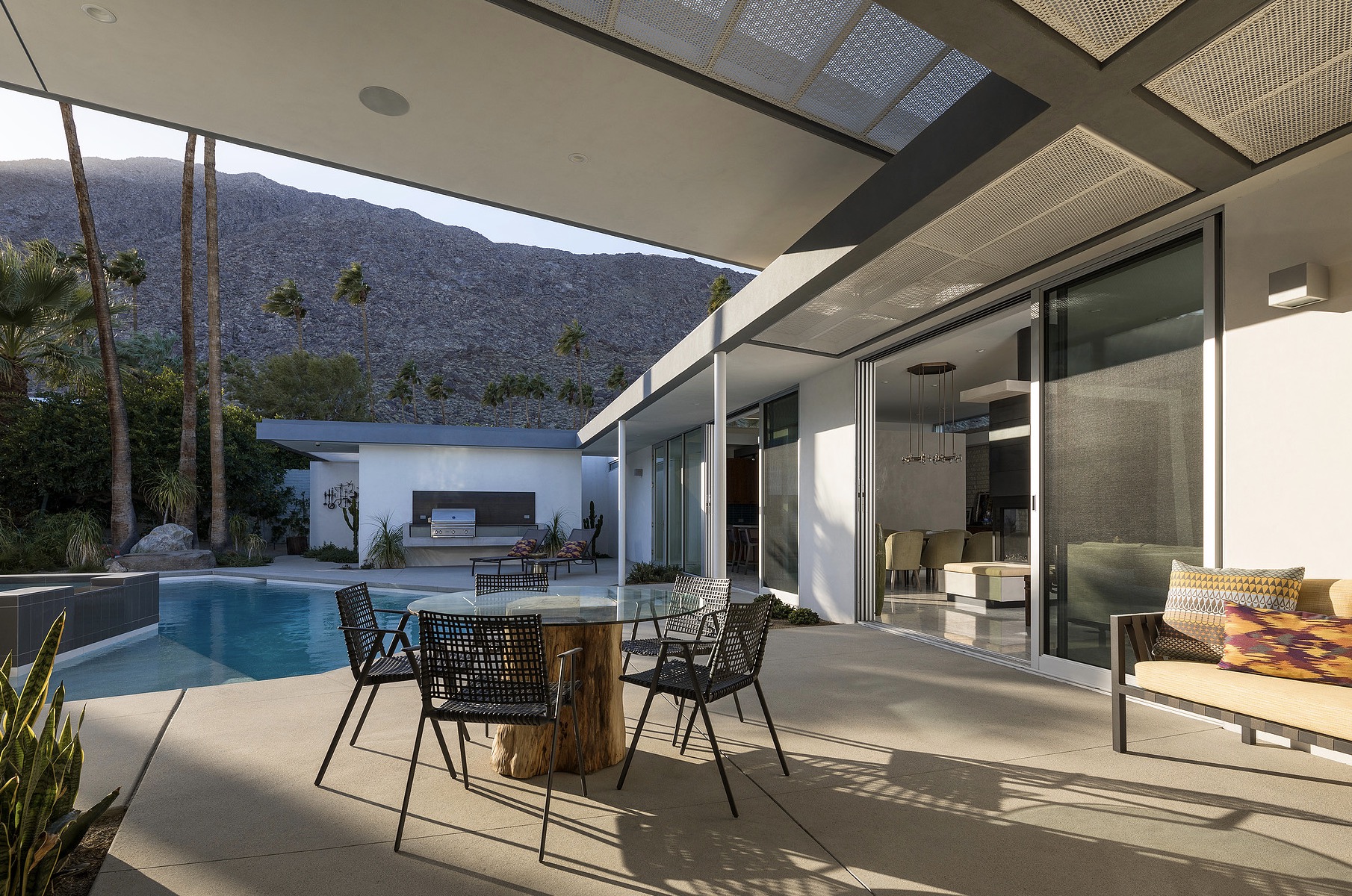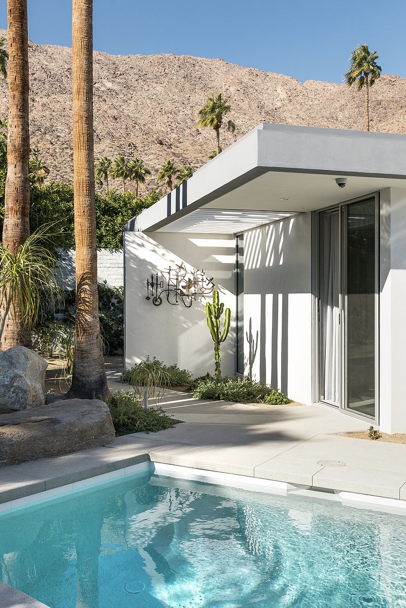 Secluded and private meet open and inviting in this getaway gem. The most prominent neighbors are jutting mountains in the backyard. A fast flight or rapid roadtrip from Los Angeles to Palm Springs, this dapper desert domicile is enticingly accessible.