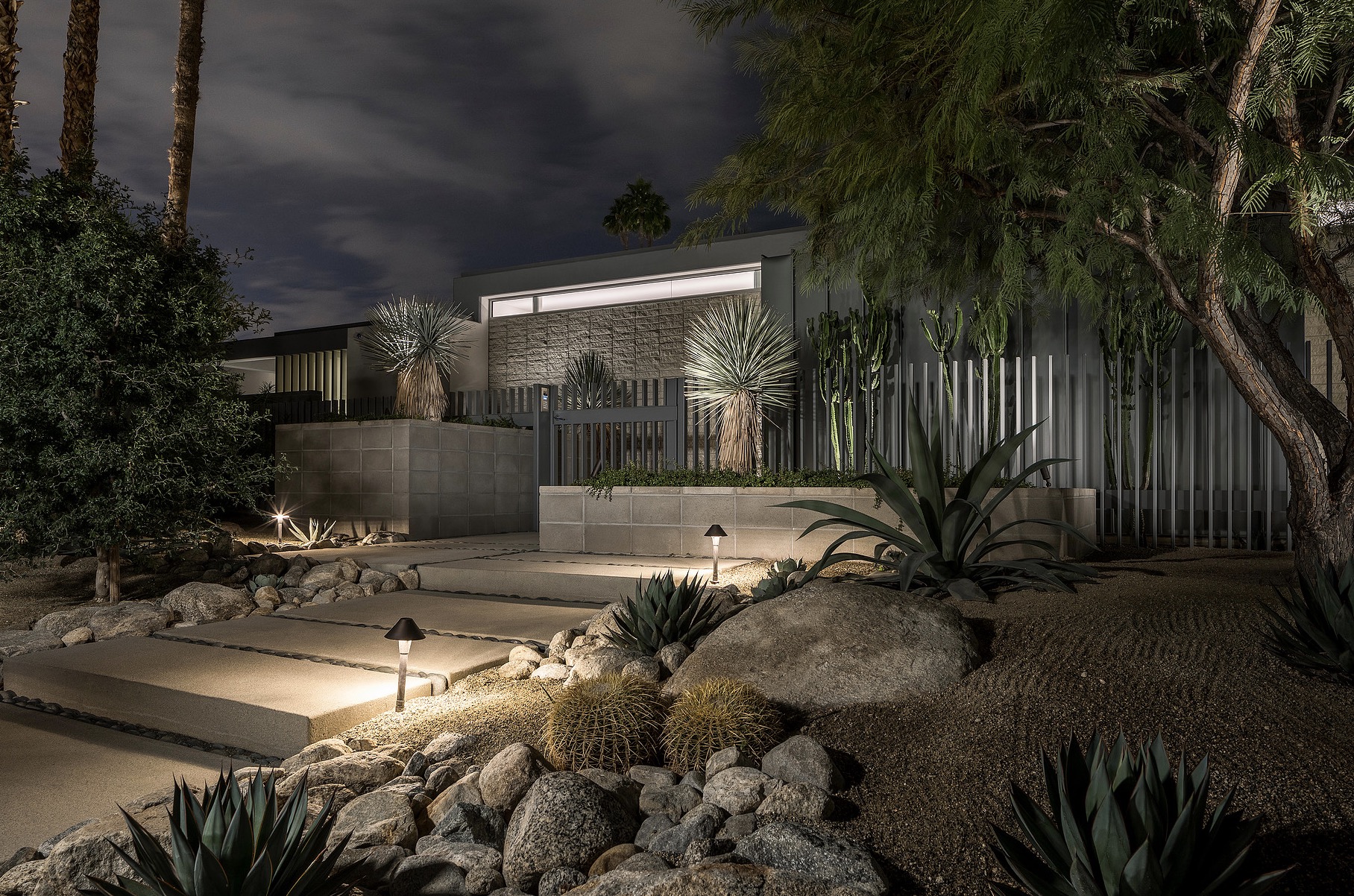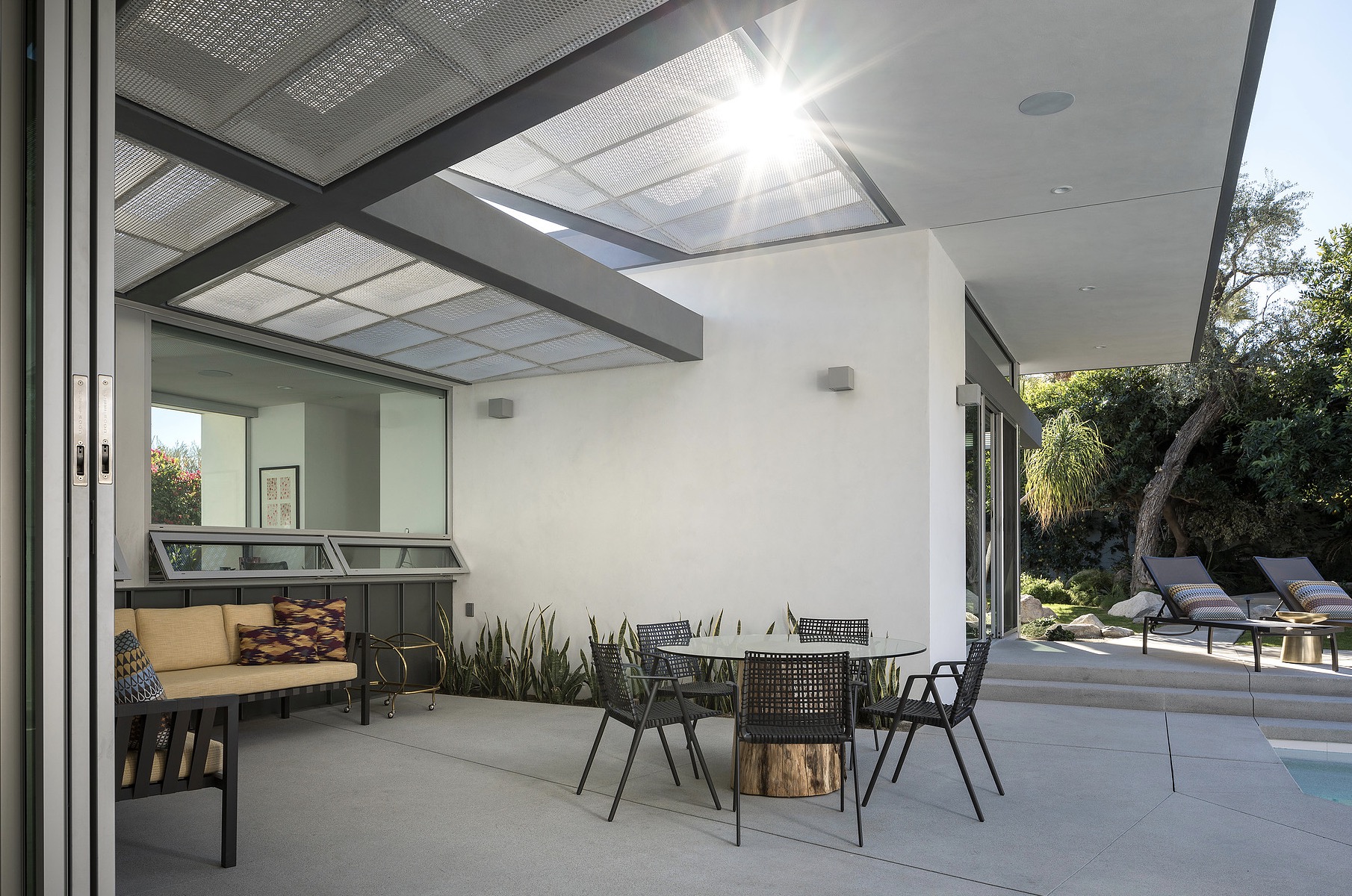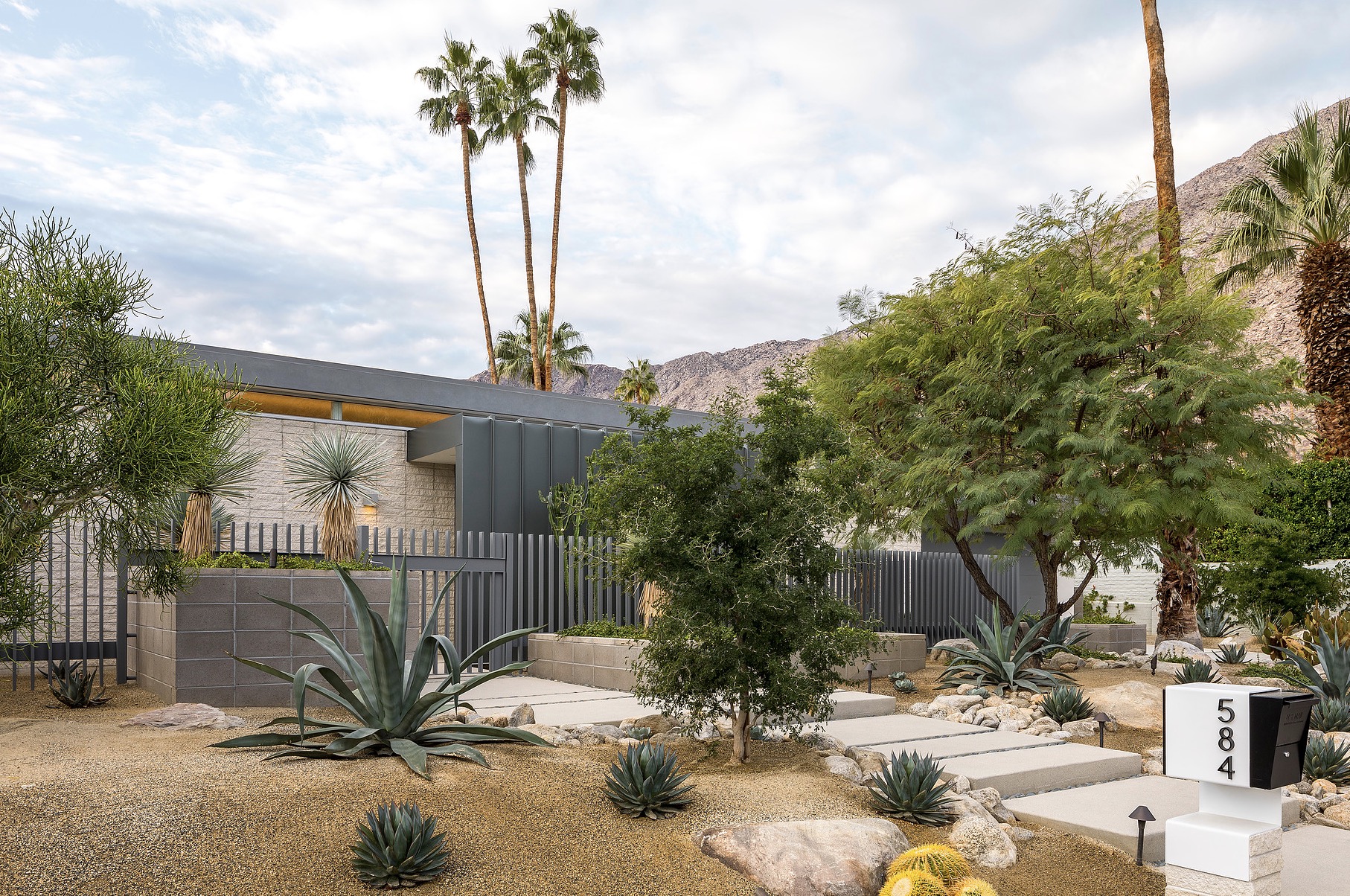 Secluded and private meet open and inviting in this getaway gem. The most prominent neighbors are jutting mountains in the backyard. A fast flight or rapid roadtrip from Los Angeles to Palm Springs, this dapper desert domicile is enticingly accessible.