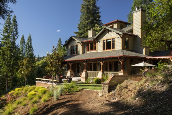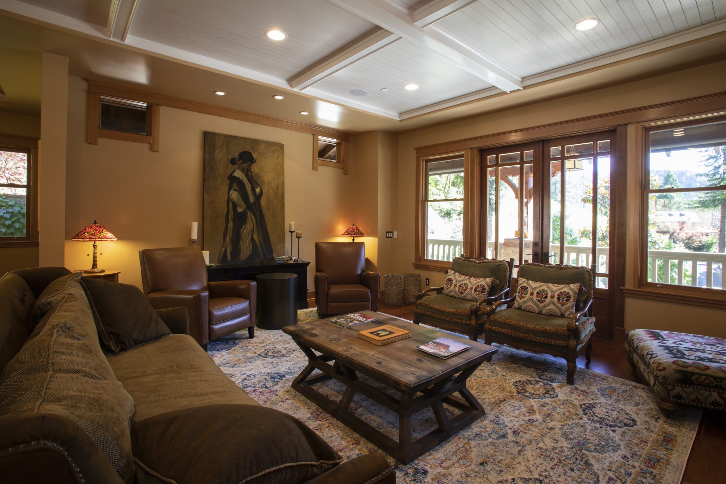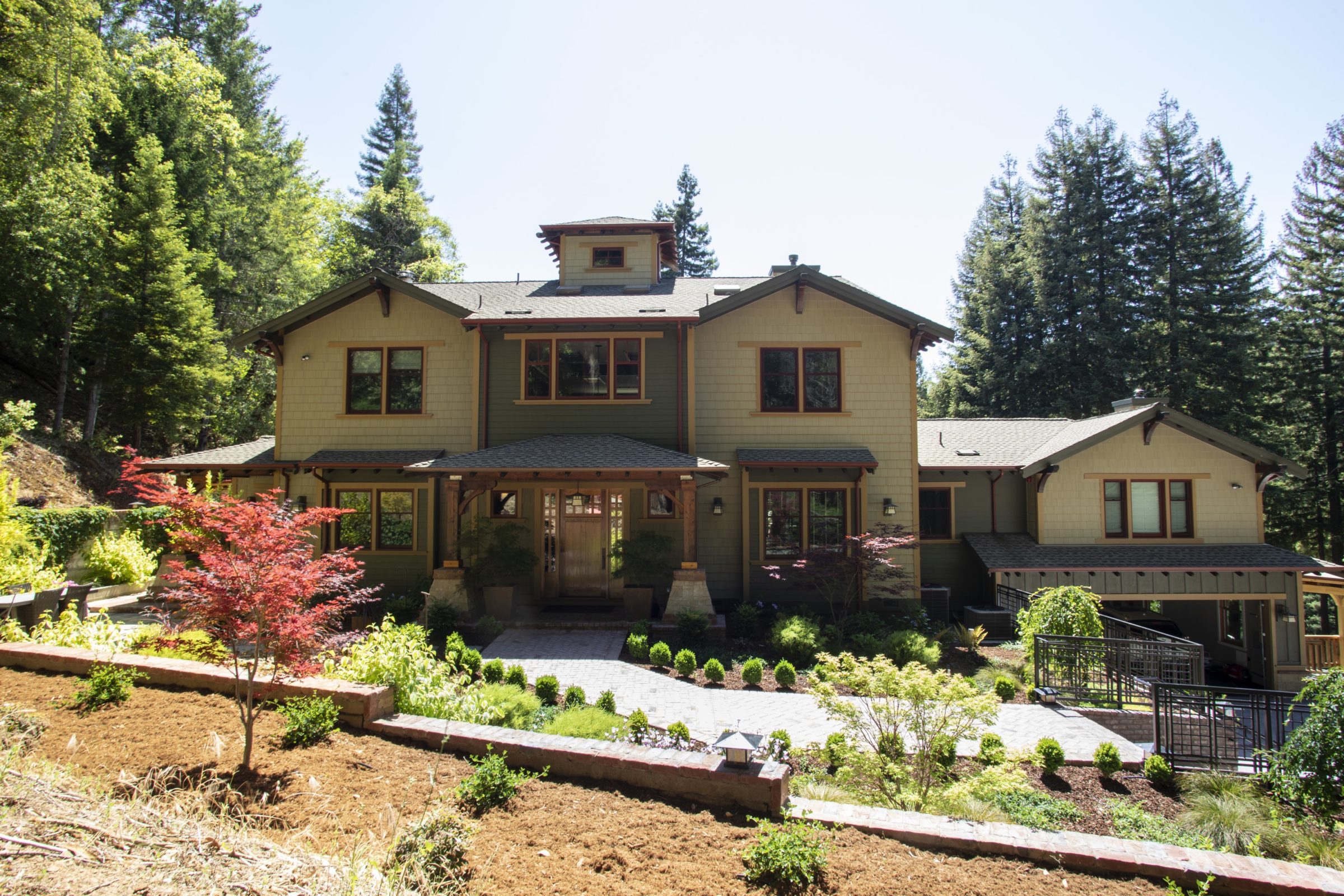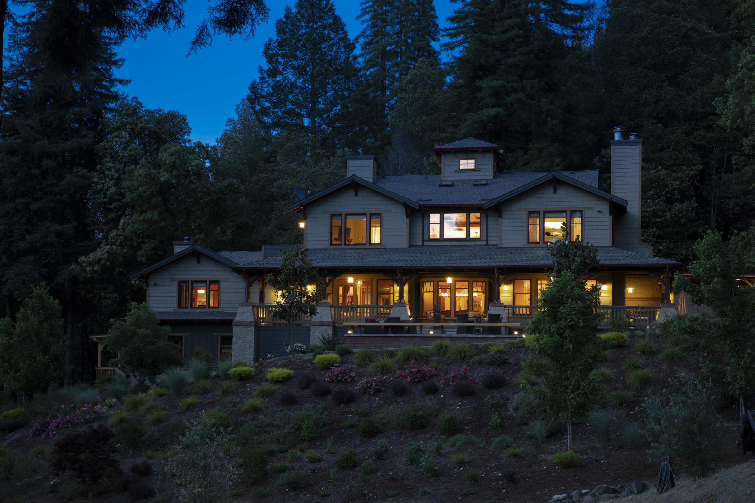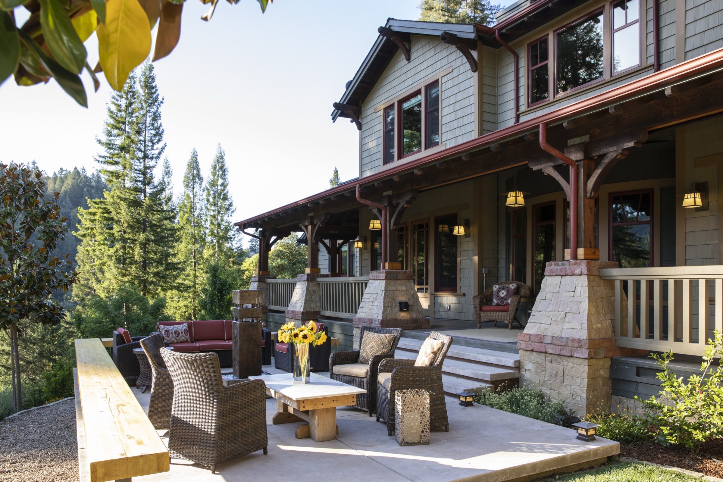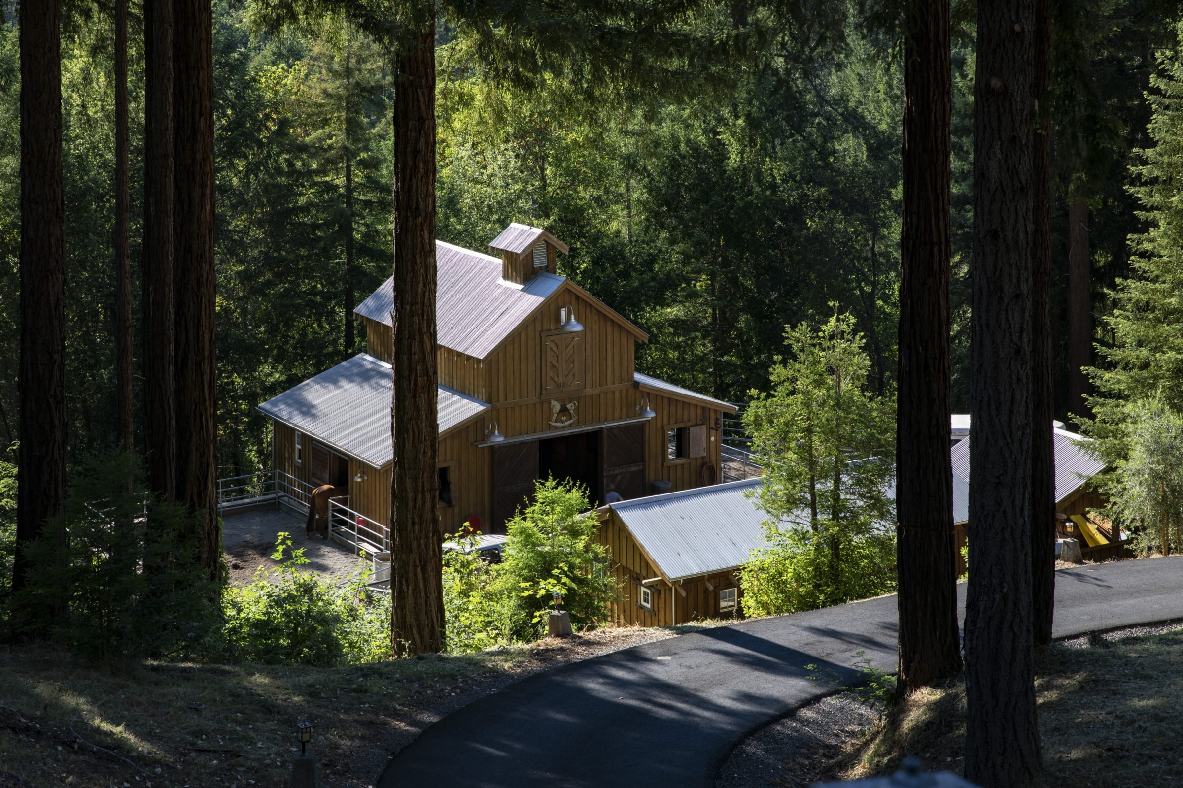 A classic craftsman tucked amongst the pines featuring a barn, pool and outdoor pavilion.