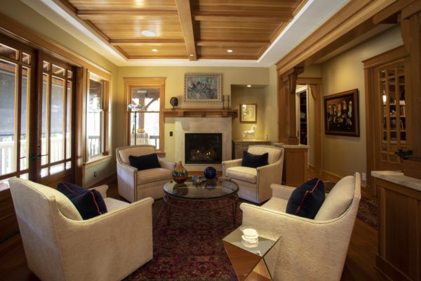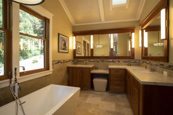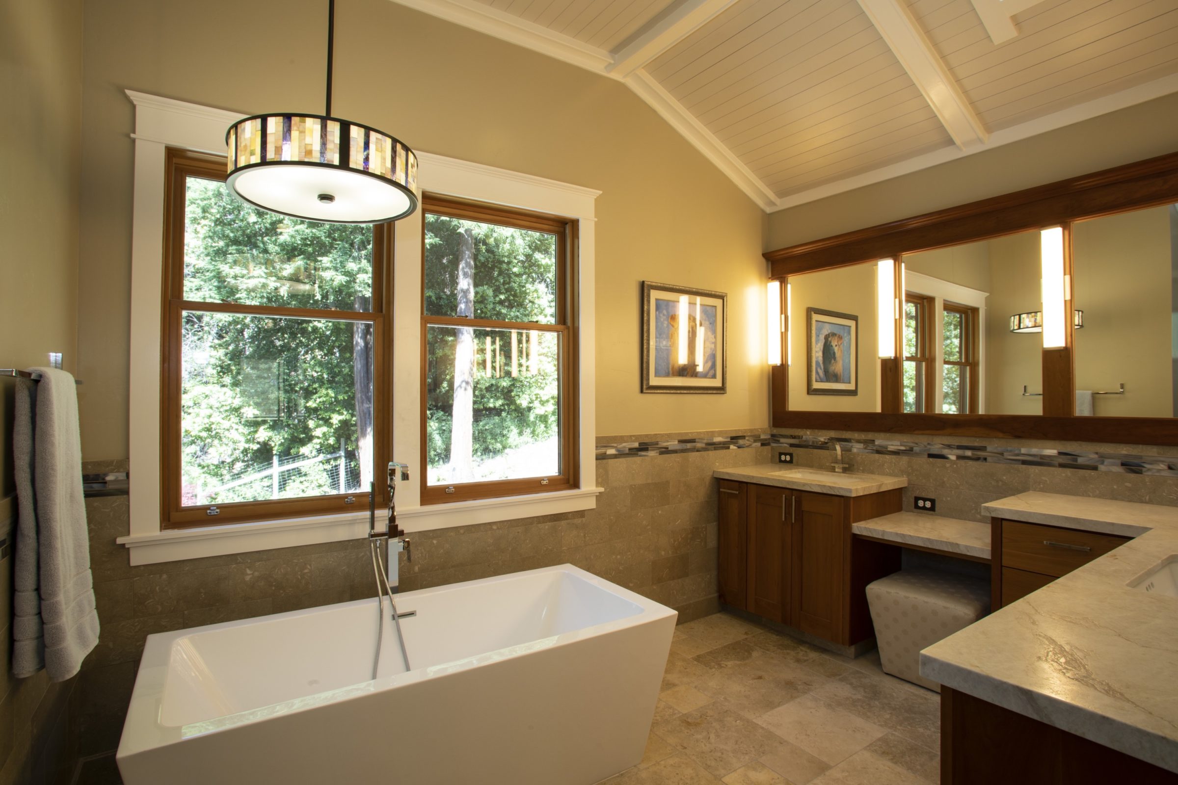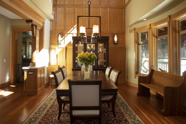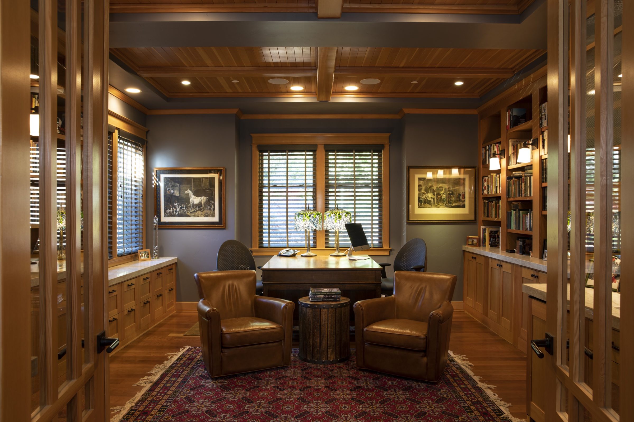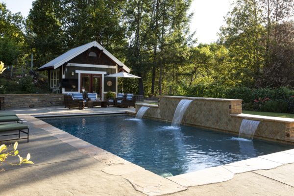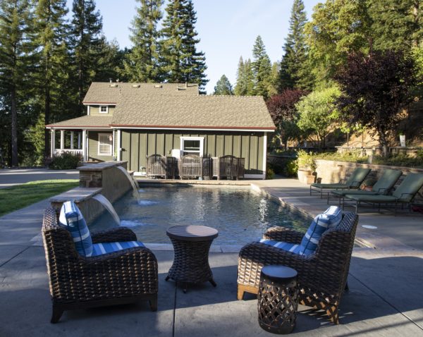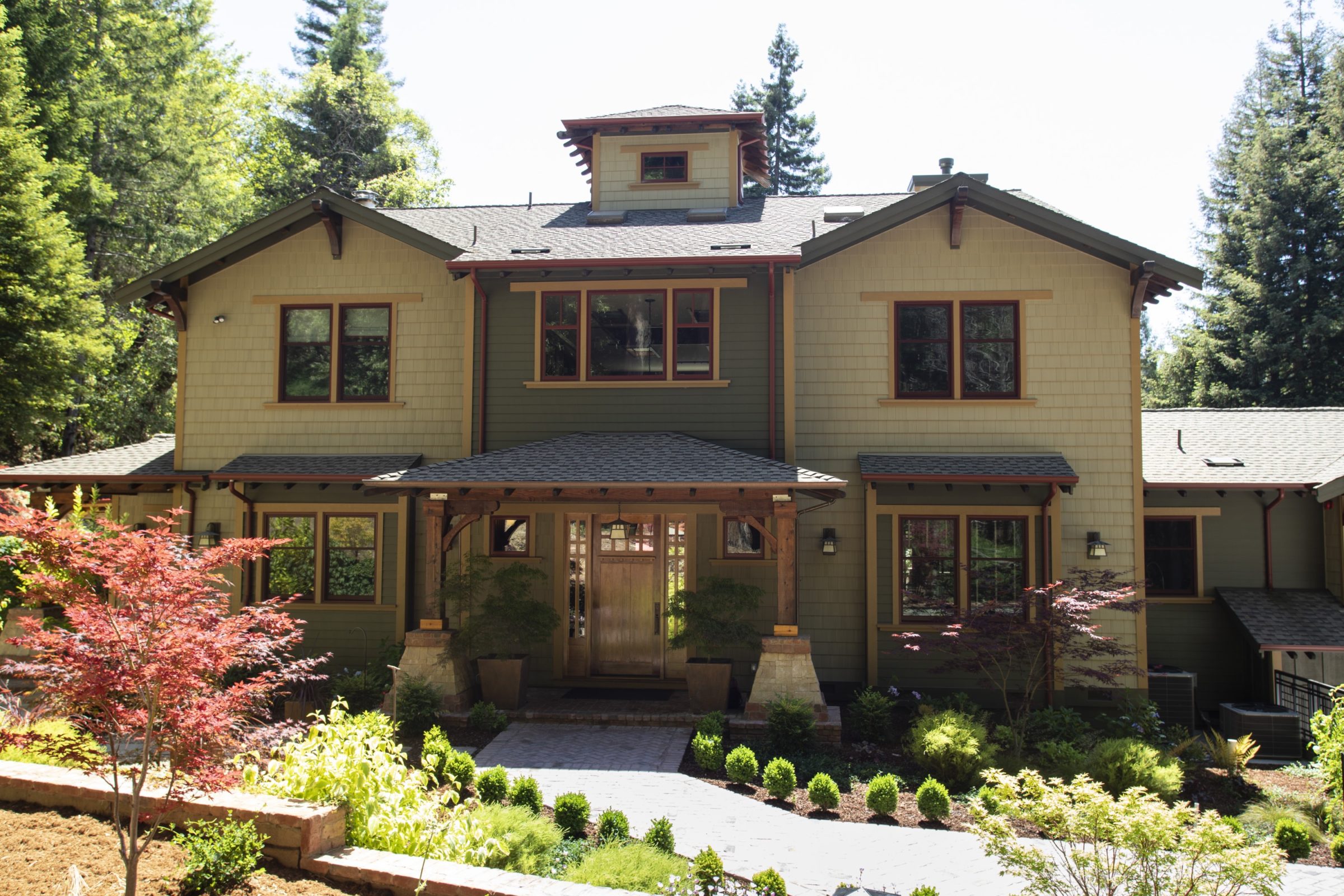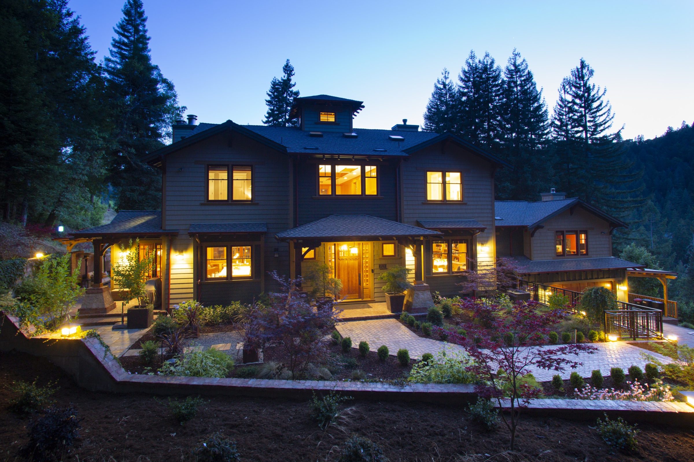 A classic craftsman tucked amongst the pines featuring a barn, pool and outdoor pavilion.