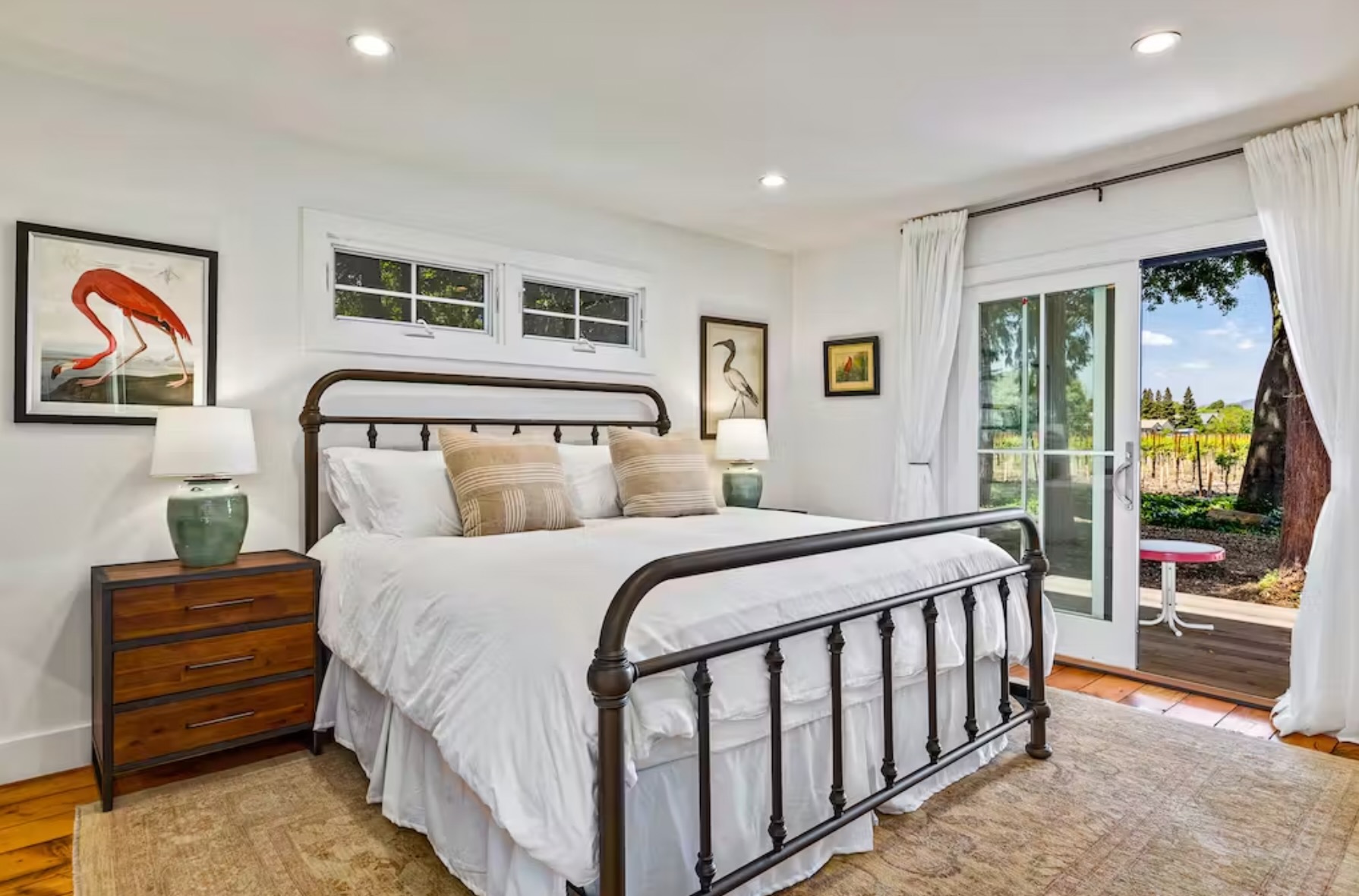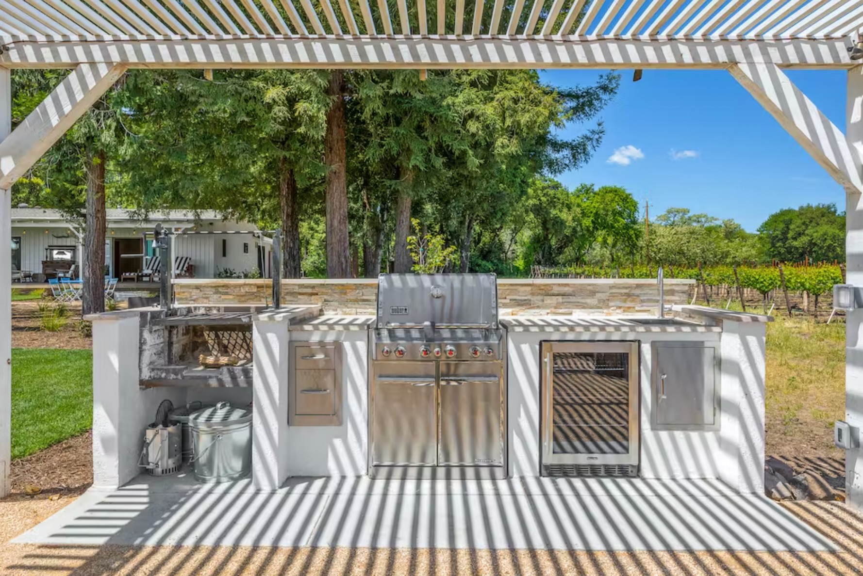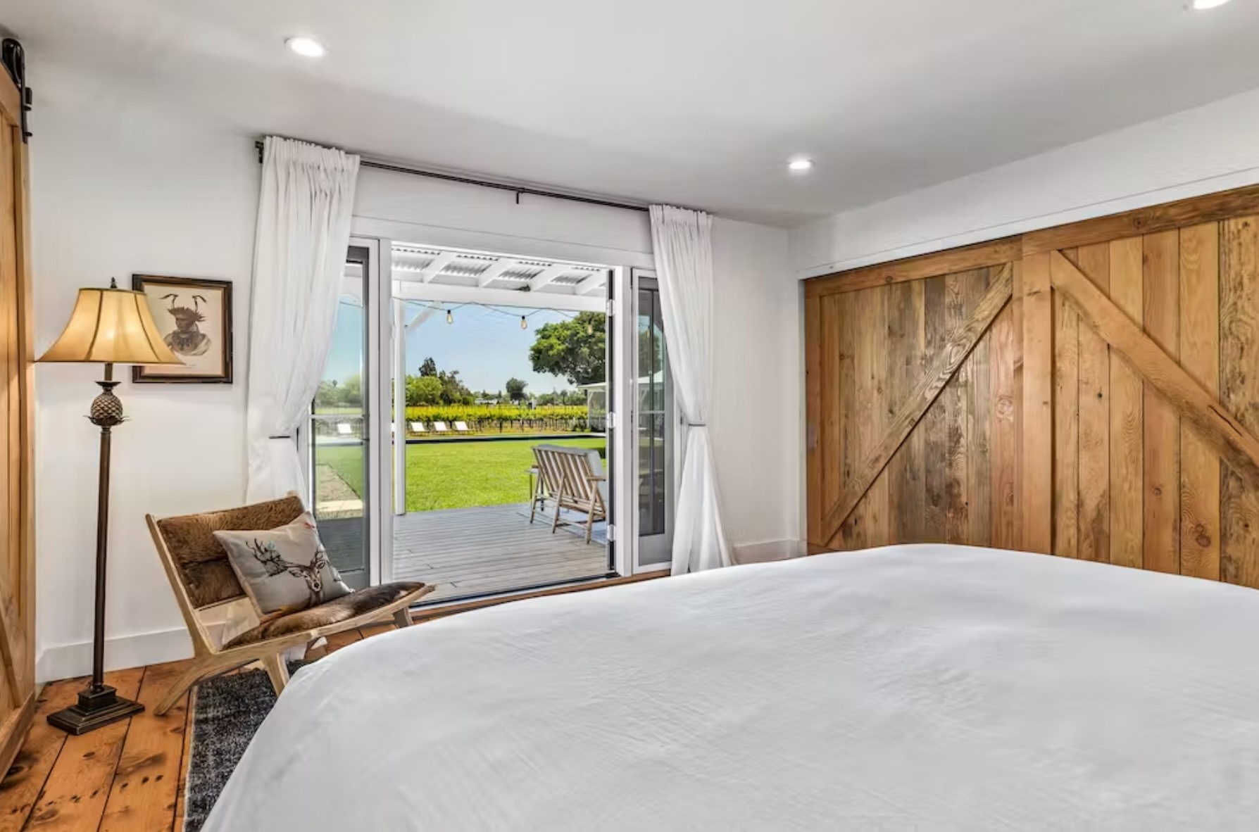 Encircled by vineyards and stunning mountain views, this beautifully remodeled 3BR/2BA home with 1BR/1/2BA guest cottage offers an ideal location close to Sonoma Square. Enjoy six private acres of California wine country as well as the lush 100-yard lawn, ping-pong table, swimming pool, hot tub, and outdoor dining room.