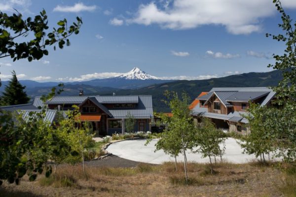 Spitting distance from Portland, this contemporary getaway with adjacent barn, vineyard and pear orchard soar high above the stunning heights of the Columbia River Gorge. Mt Hood in the distance, the majestic Columbia River below – Mother Nature rules this roost.