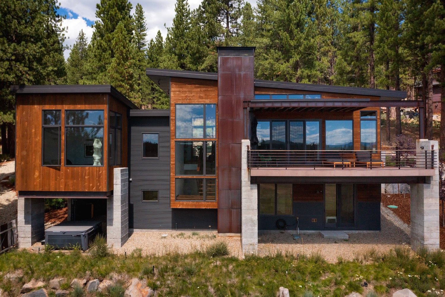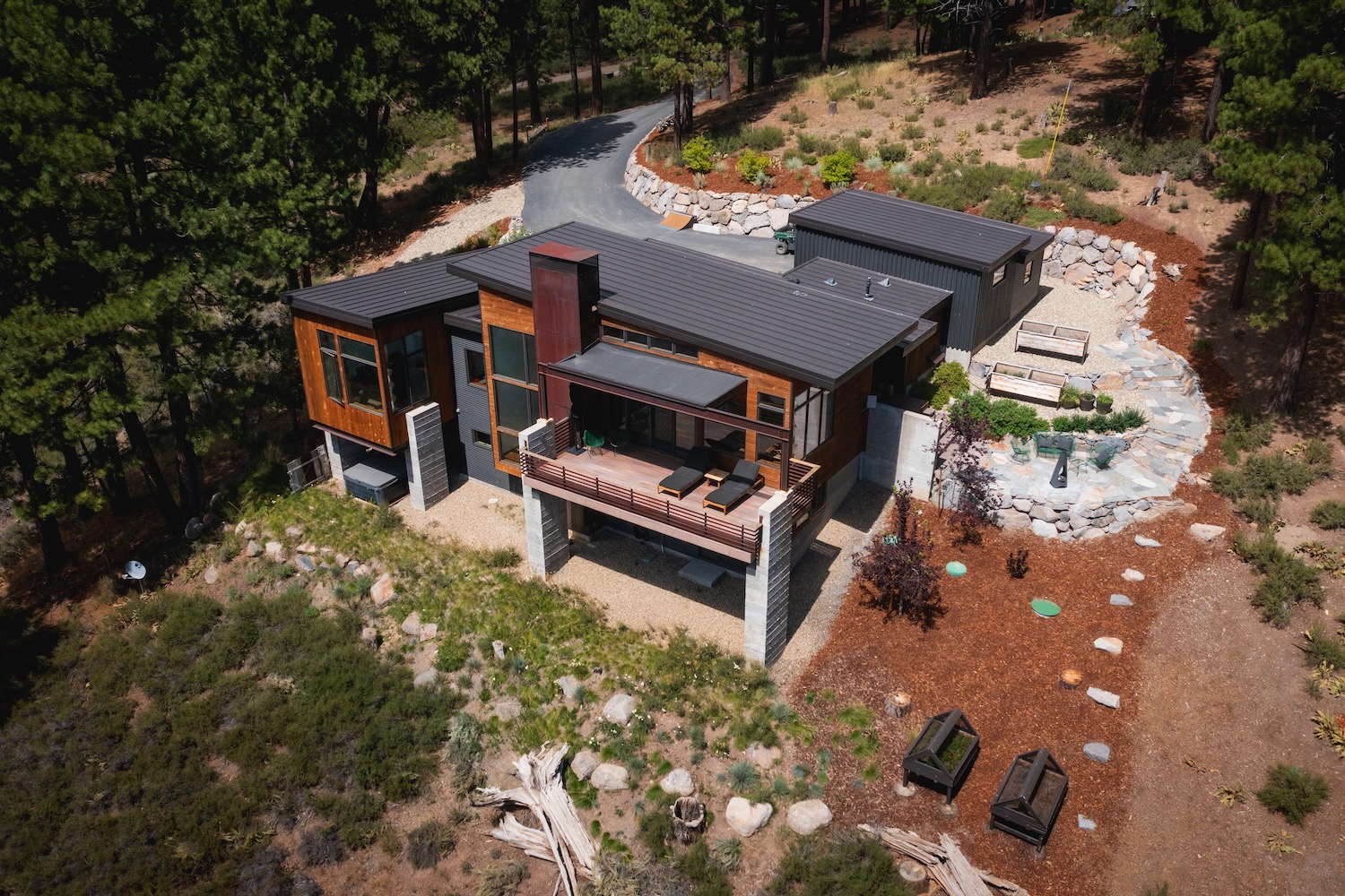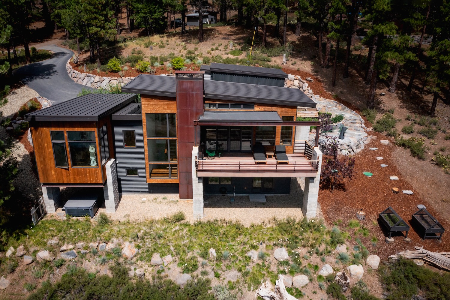 This stunning mountain modern home captures breathtaking South facing views of the Mt Rose/Carson Range and the Russel Valley.