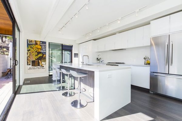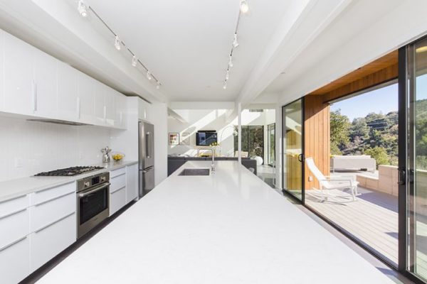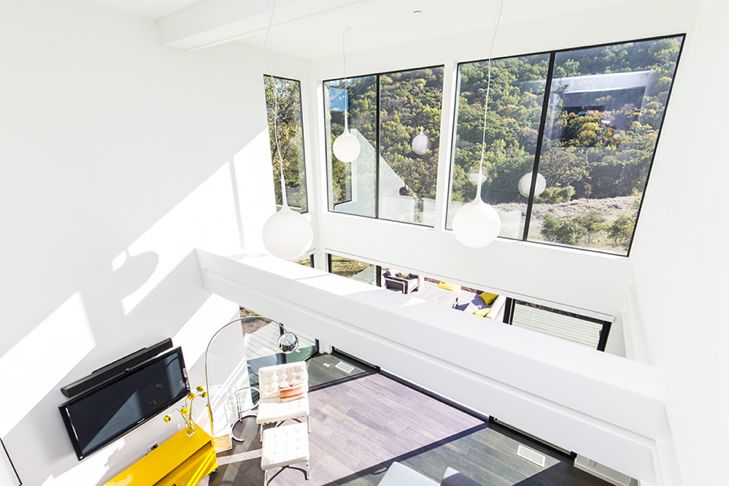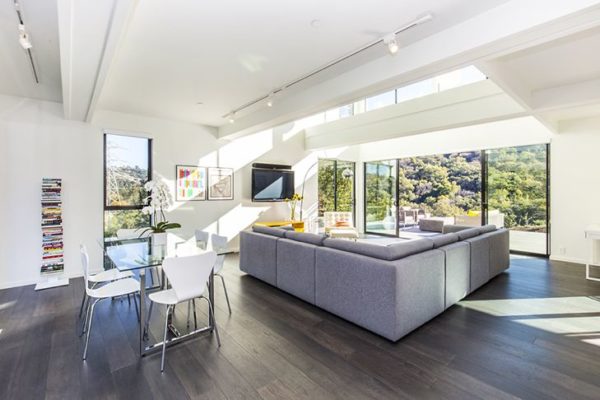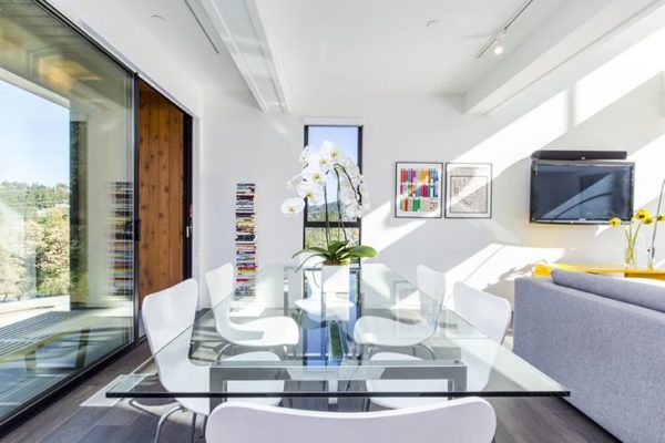 This modern home brings nature and light indoors with huge sliding glass walls, high ceilings and windows throughout every aspect and angle of the house. A steel and glass exterior, with wood accents, create the perfect complement to the bright, ultra-modern furniture and fixtures. A clean, mindful, eco-chic approach to living.