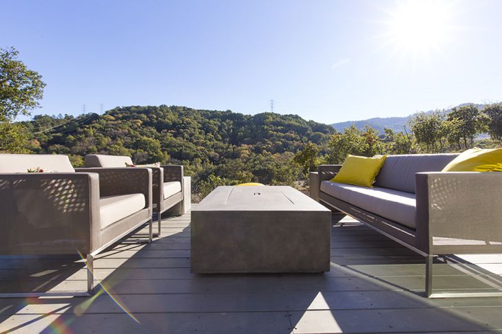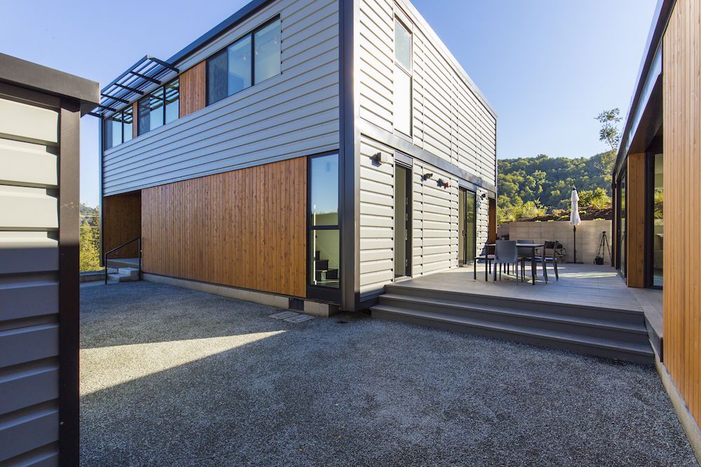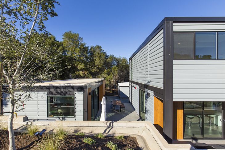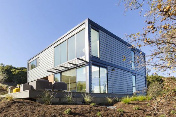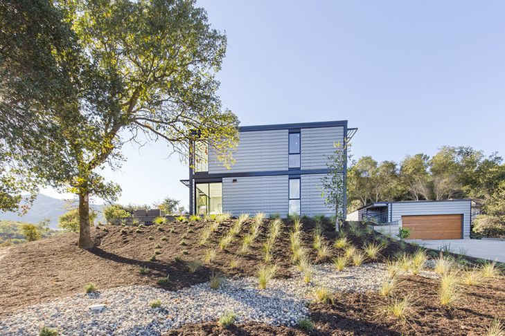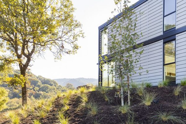 The green hills of northern California provide the perfect backdrop for the striking lines in this cool, contemporary home.