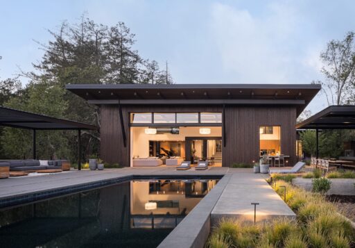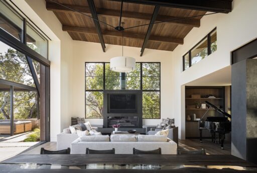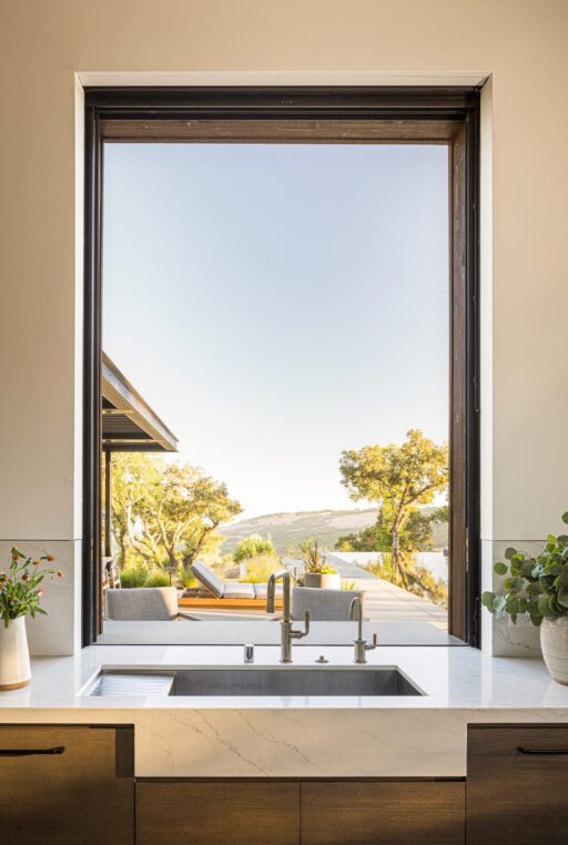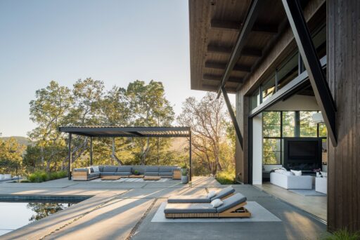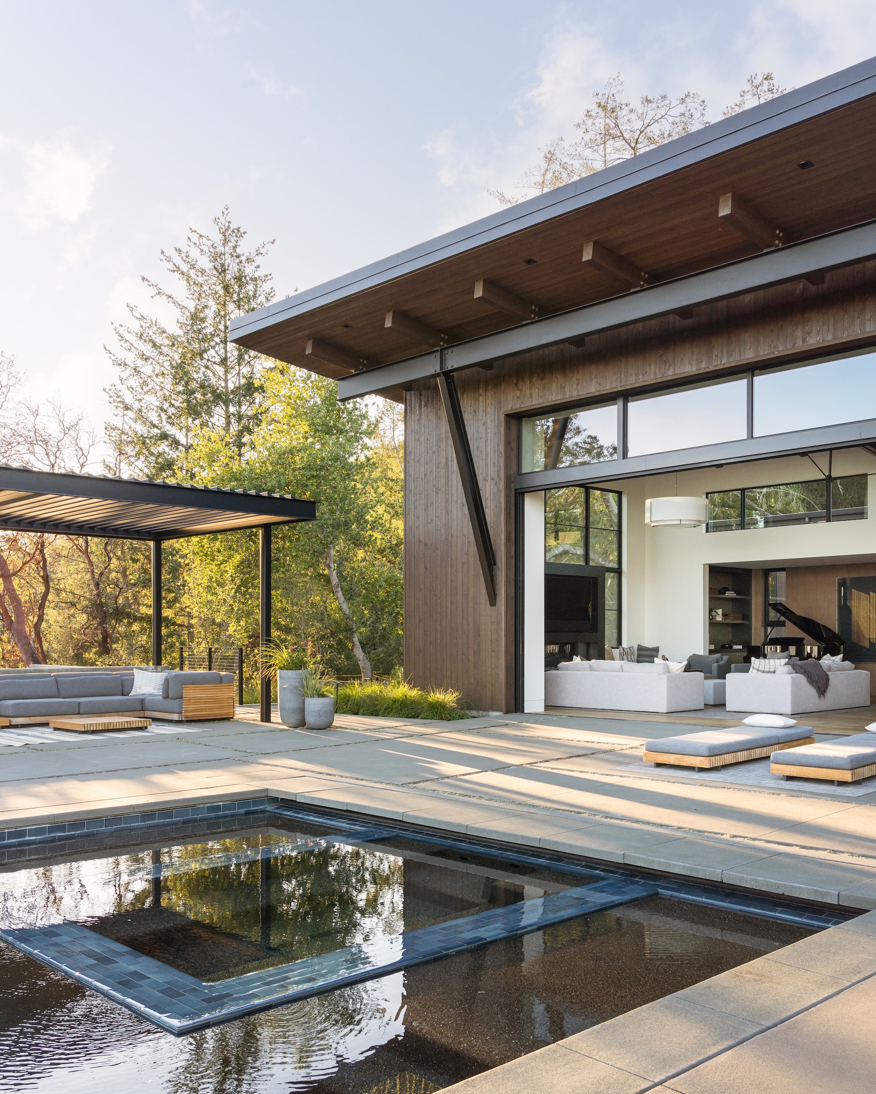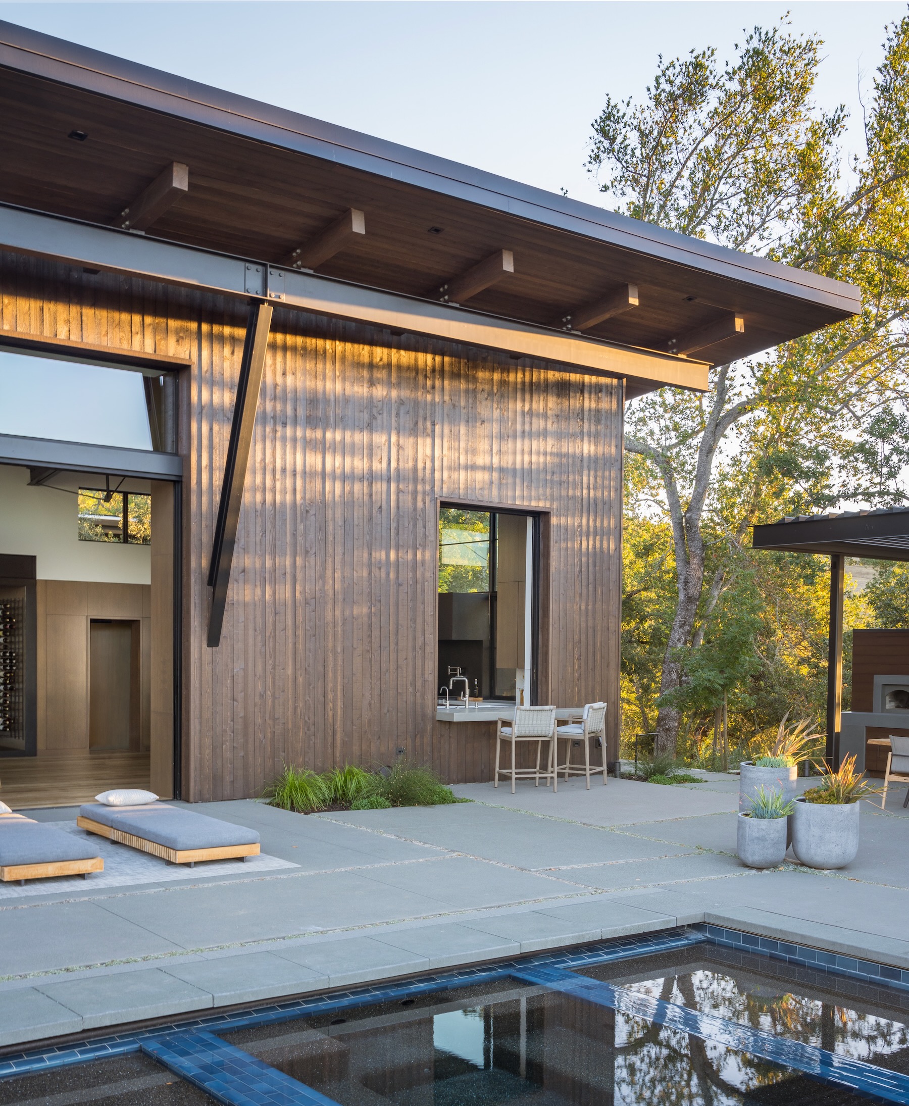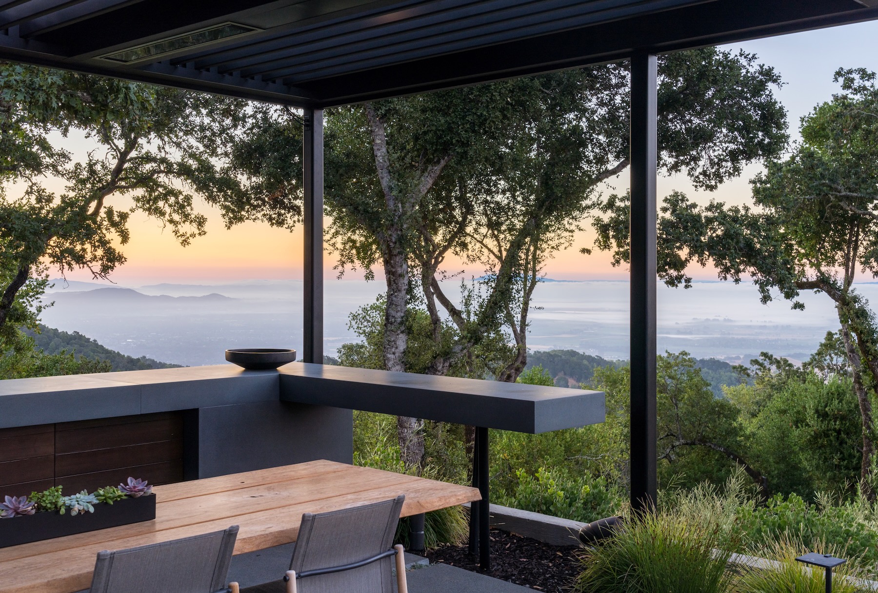This architectural stunner flows with the land, leading to a vanishing-edge pool with a backdrop stretching to San Francisco.