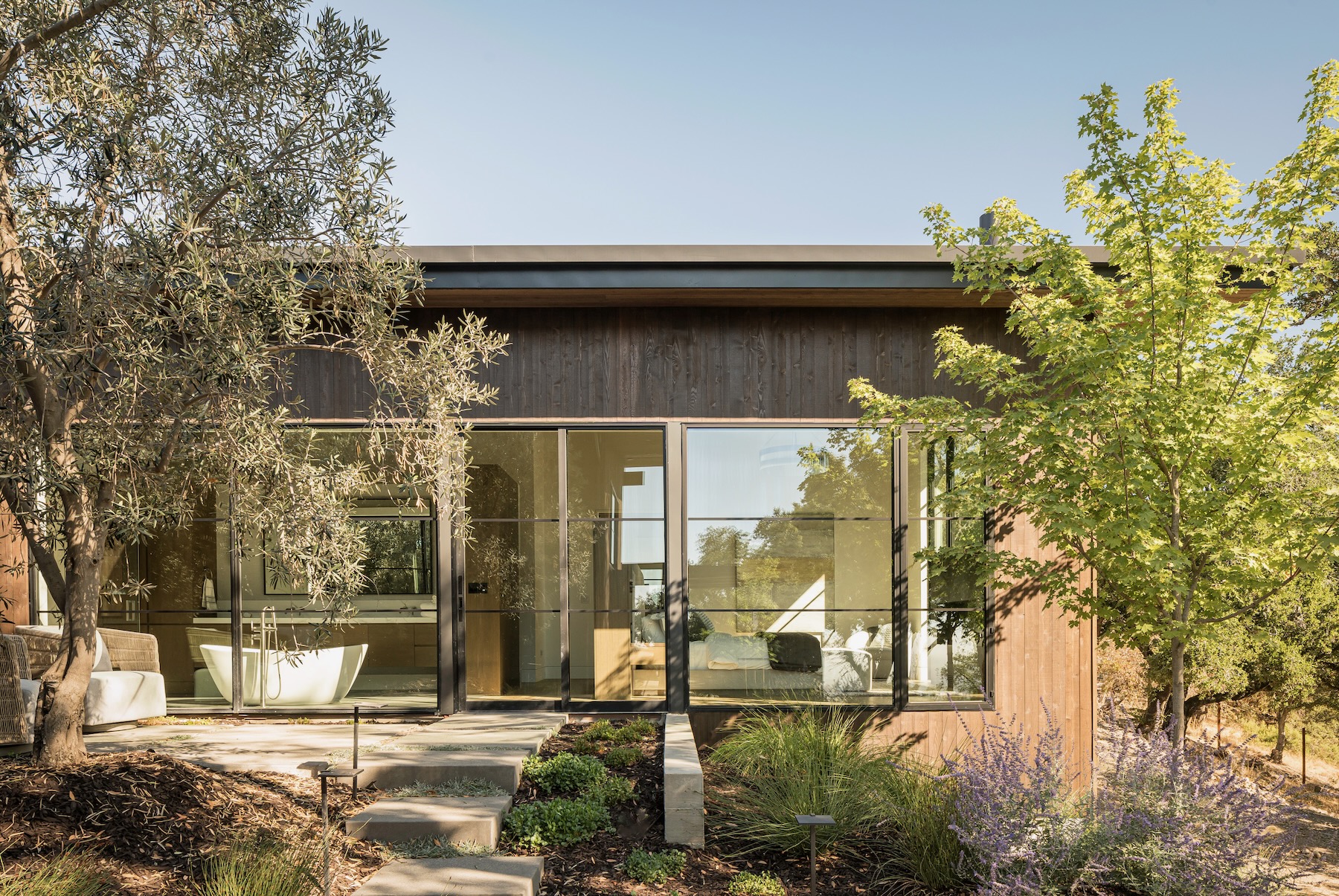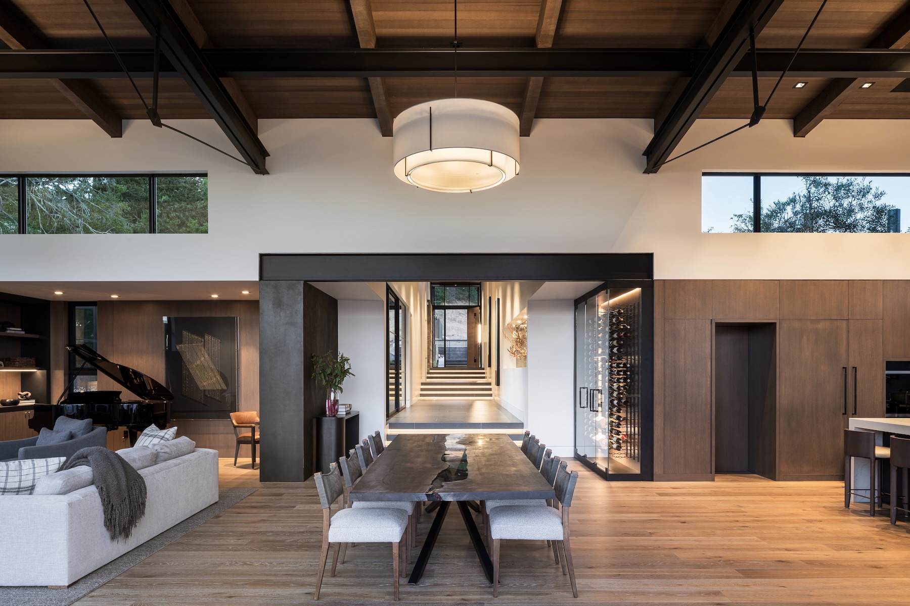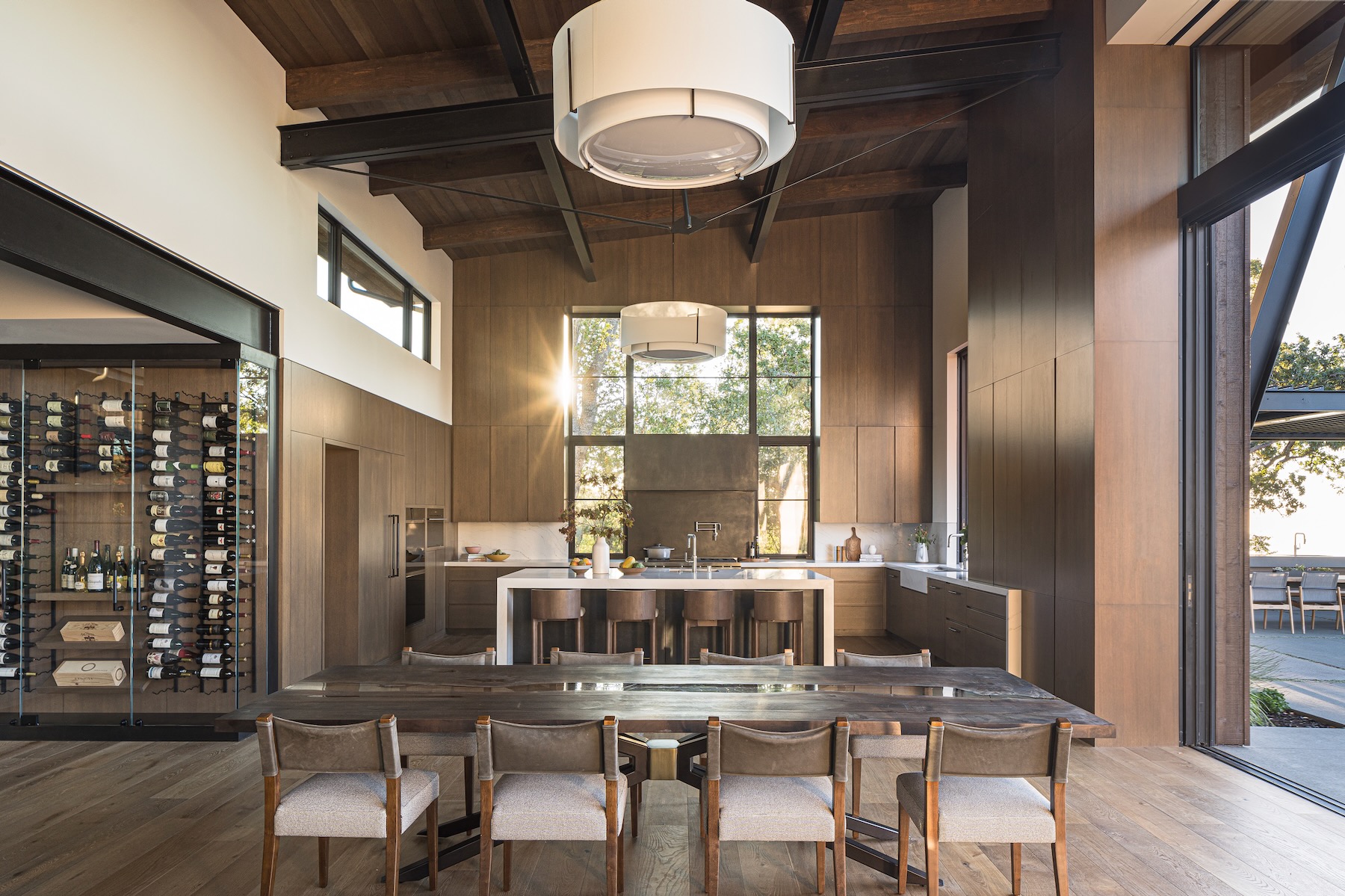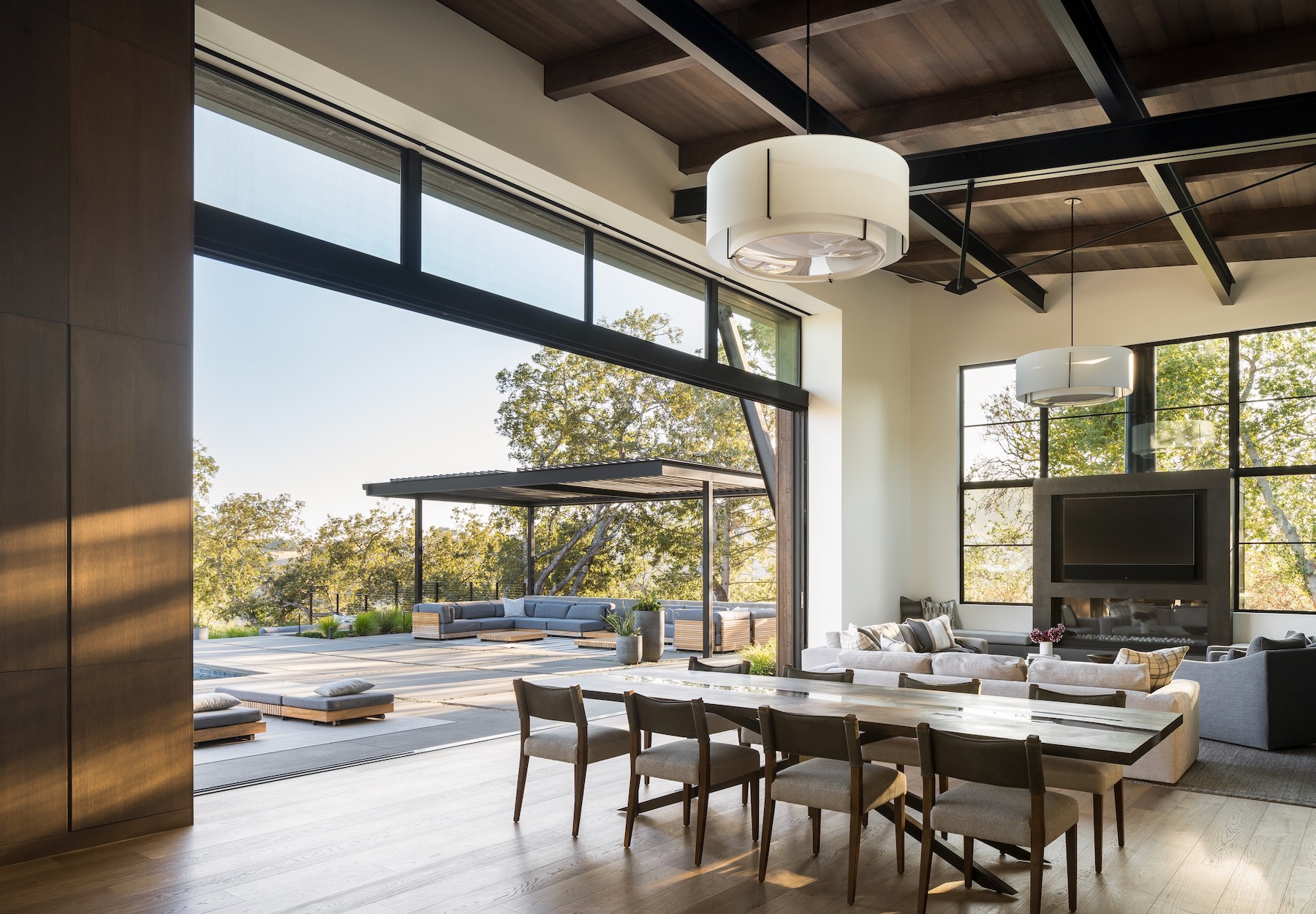 This architectural stunner flows with the land, leading to a vanishing-edge pool with a backdrop stretching to San Francisco.