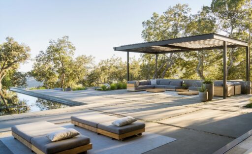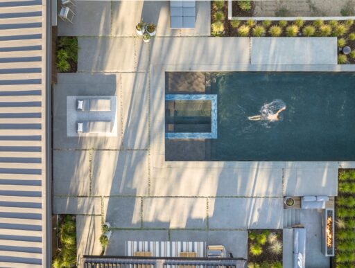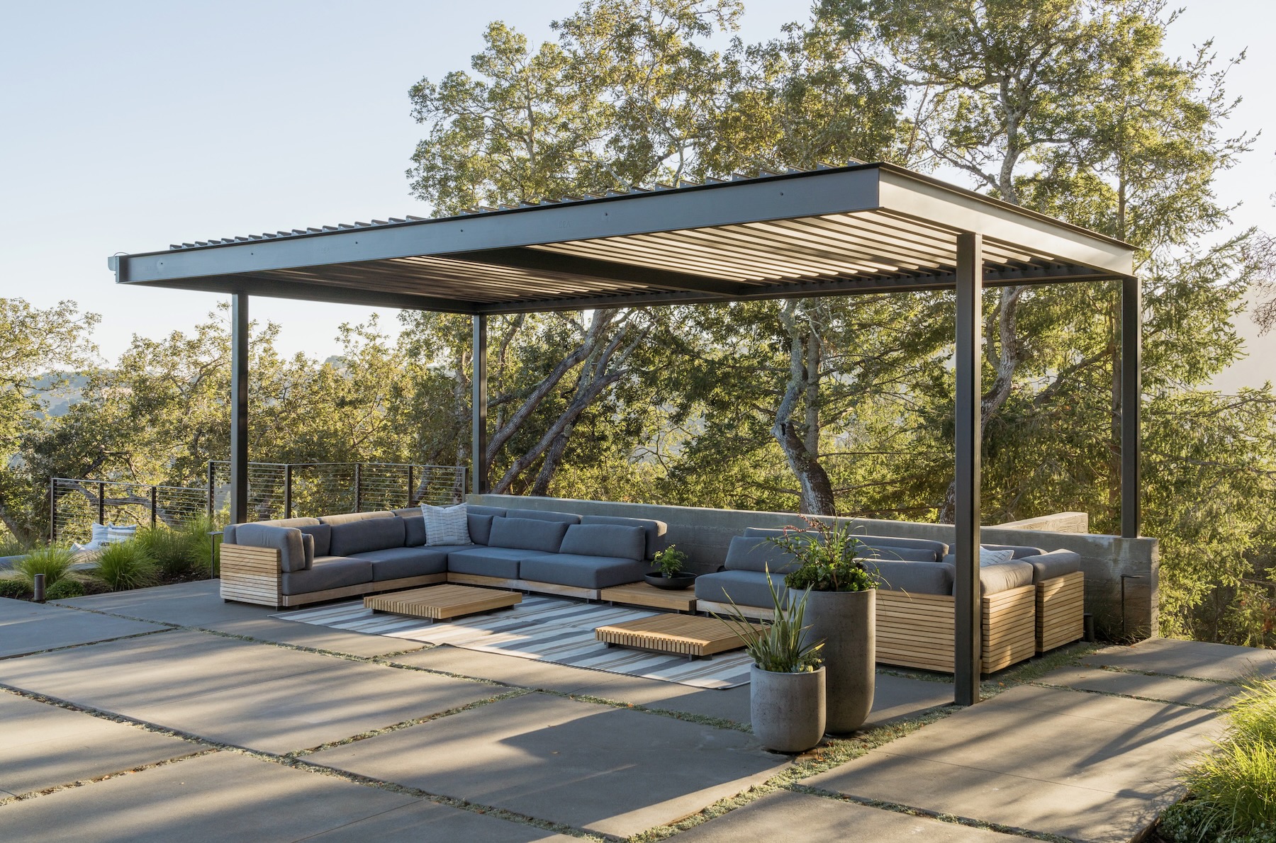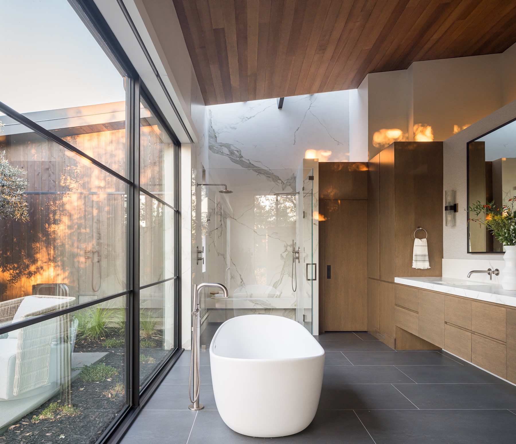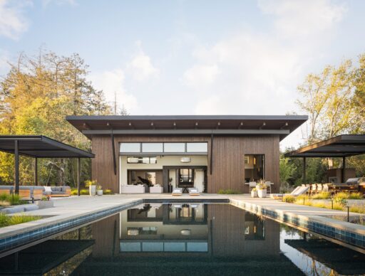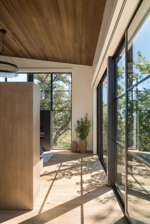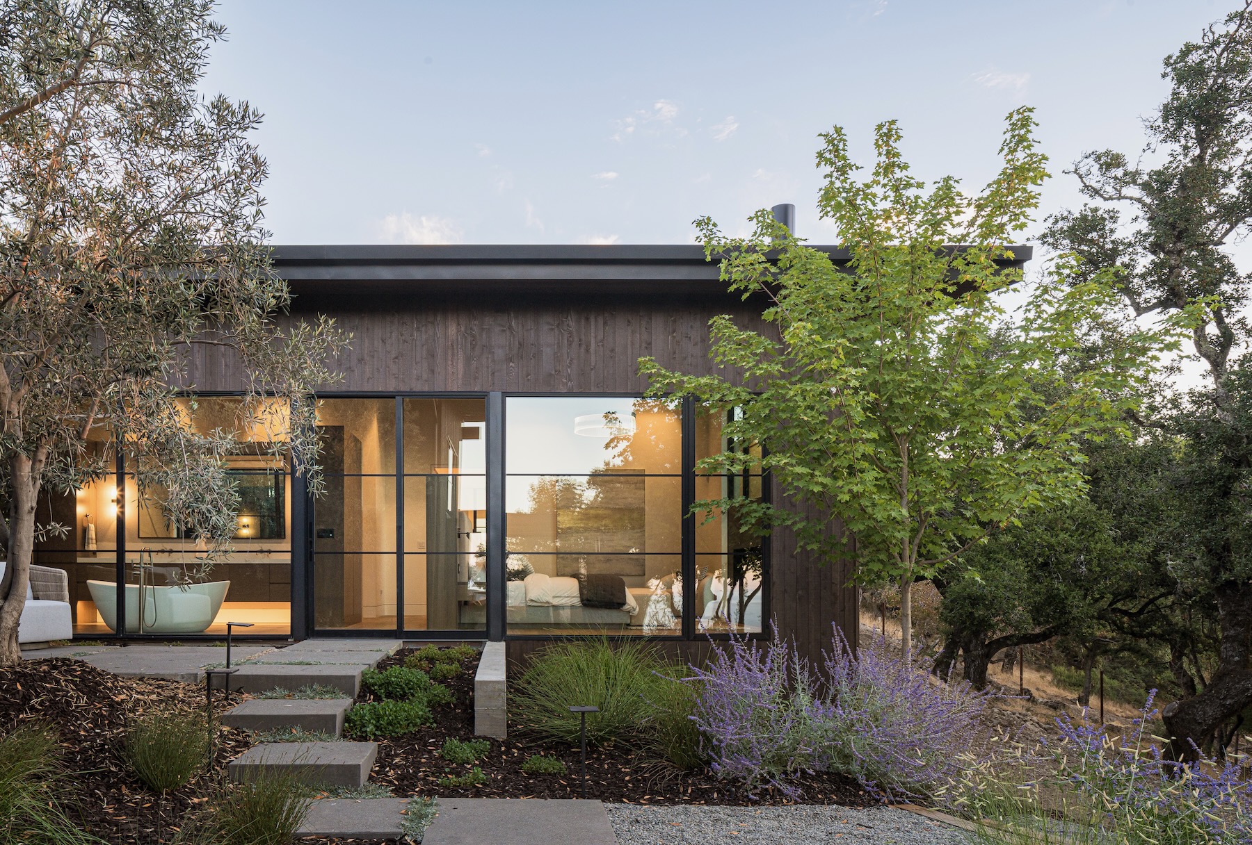 This architectural stunner flows with the land, leading to a vanishing-edge pool with a backdrop stretching to San Francisco.