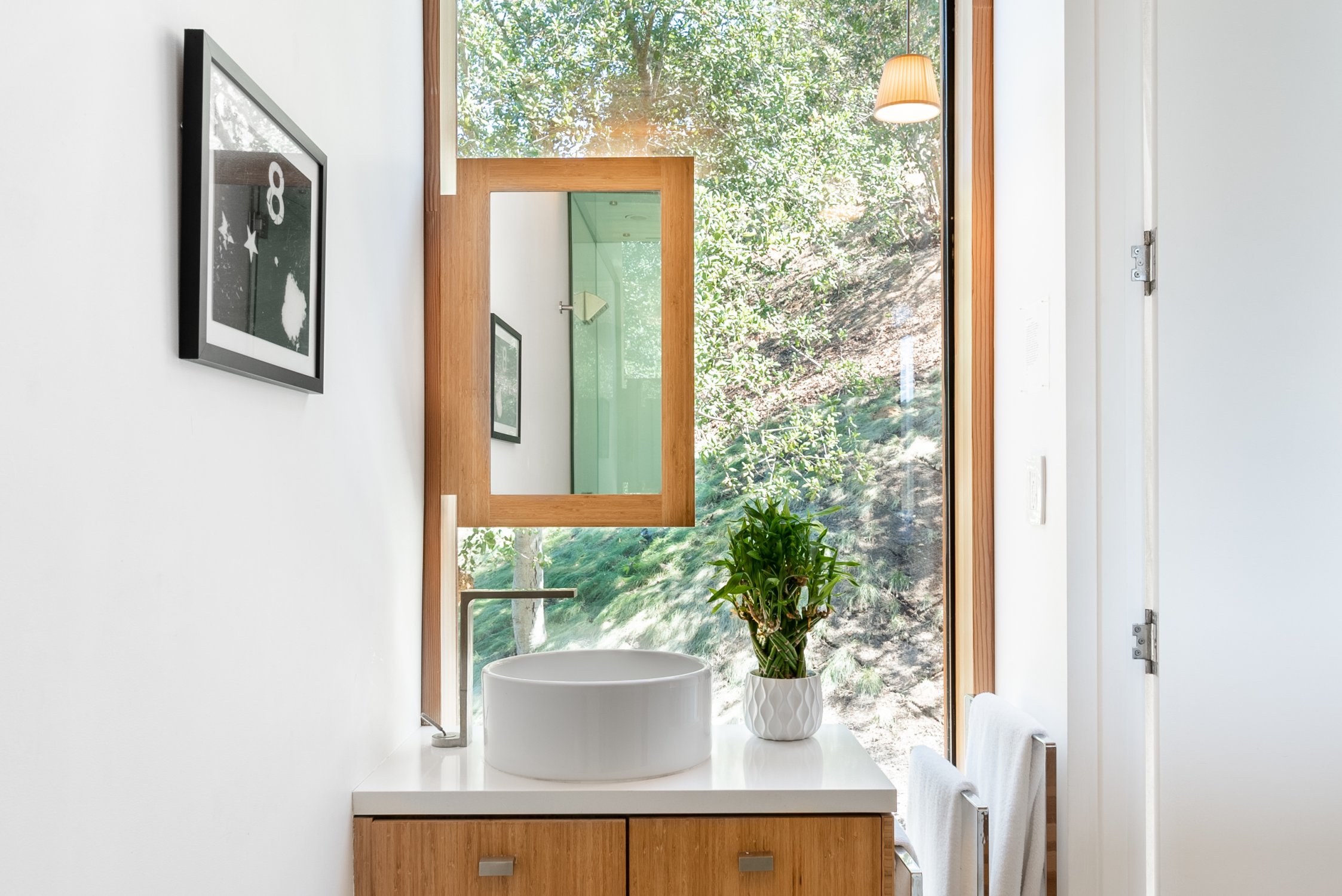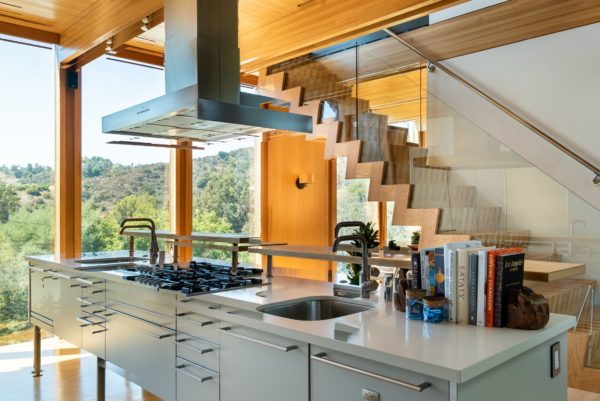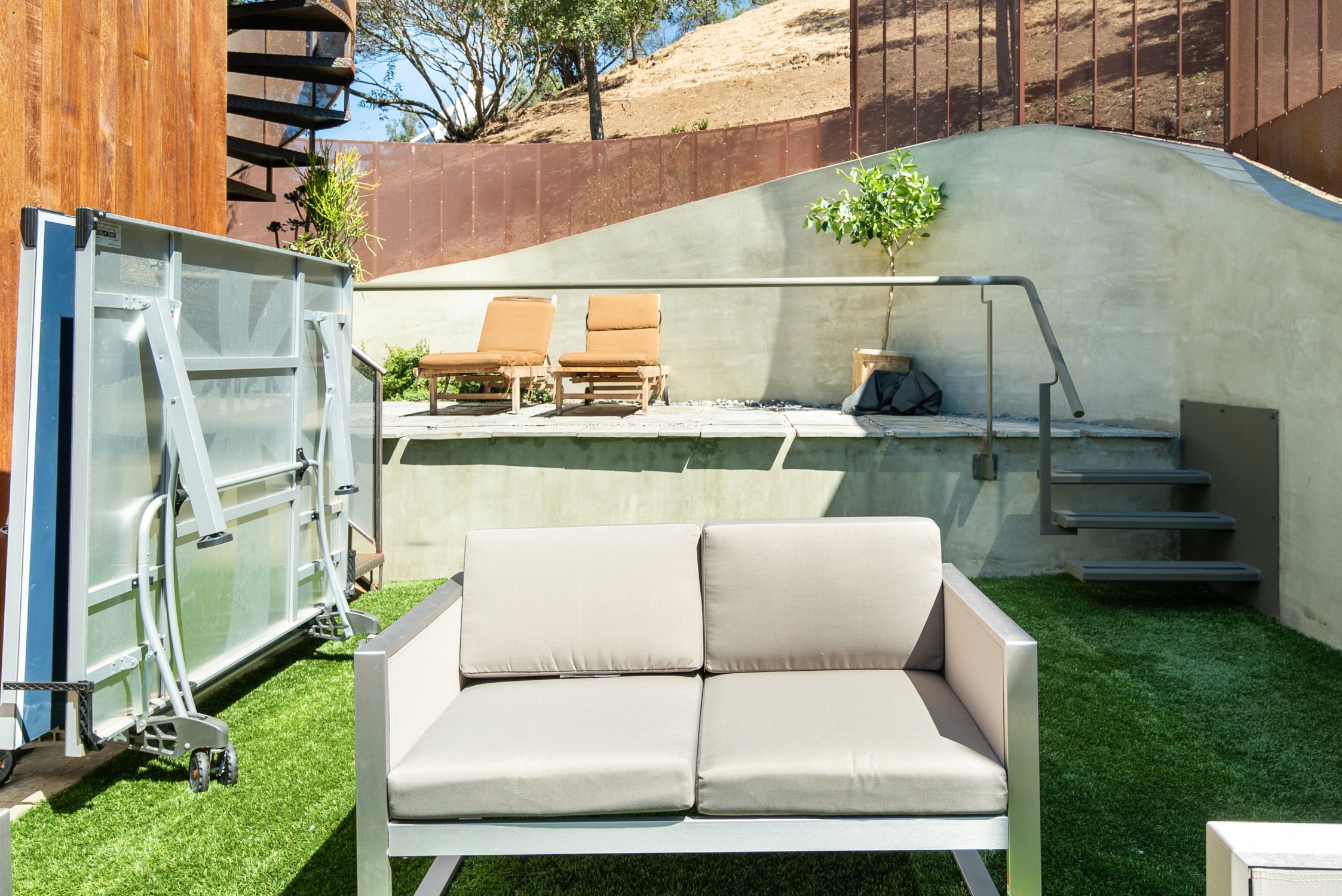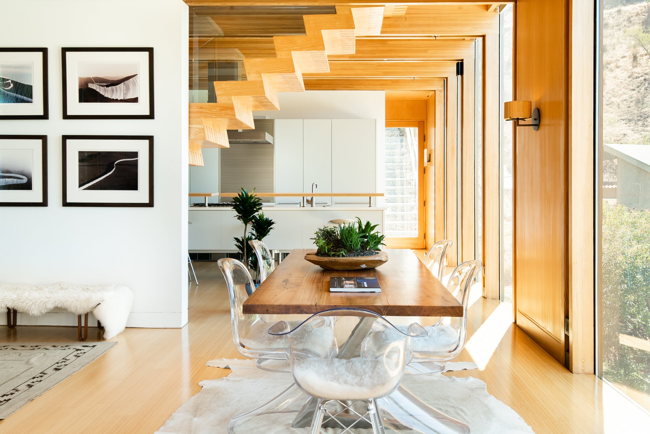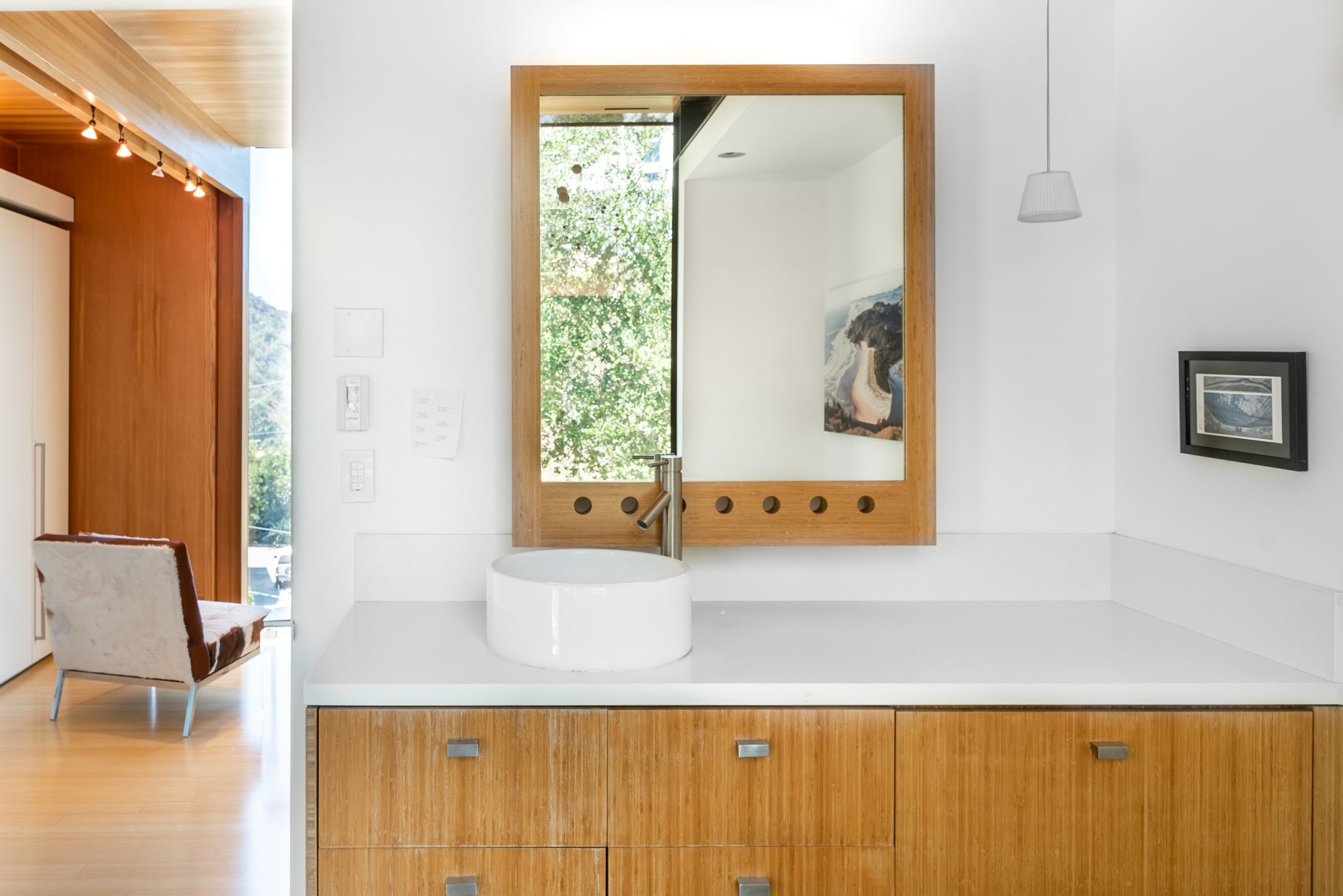 The Vibe: We’re sure you won’t want to stop thinking inside the box once you set foot into this ritzy rectangular residence. Boasting artistic architecture unafraid to set itself apart, the cinema-worthy drama of this panoramic paradise may only be matched by the movie studios tucked into the valley just below. Zen yet zesty, serene yet stunning, the home’s open, earthy style draws upon worldly influences to play up striking scenery visible from every room. Ranging from tributes to rock royalty to sweeping floor-to-ceiling glass balanced by blissful bamboo, the sophisticated style of this hillside haven refuses to take itself too seriously.