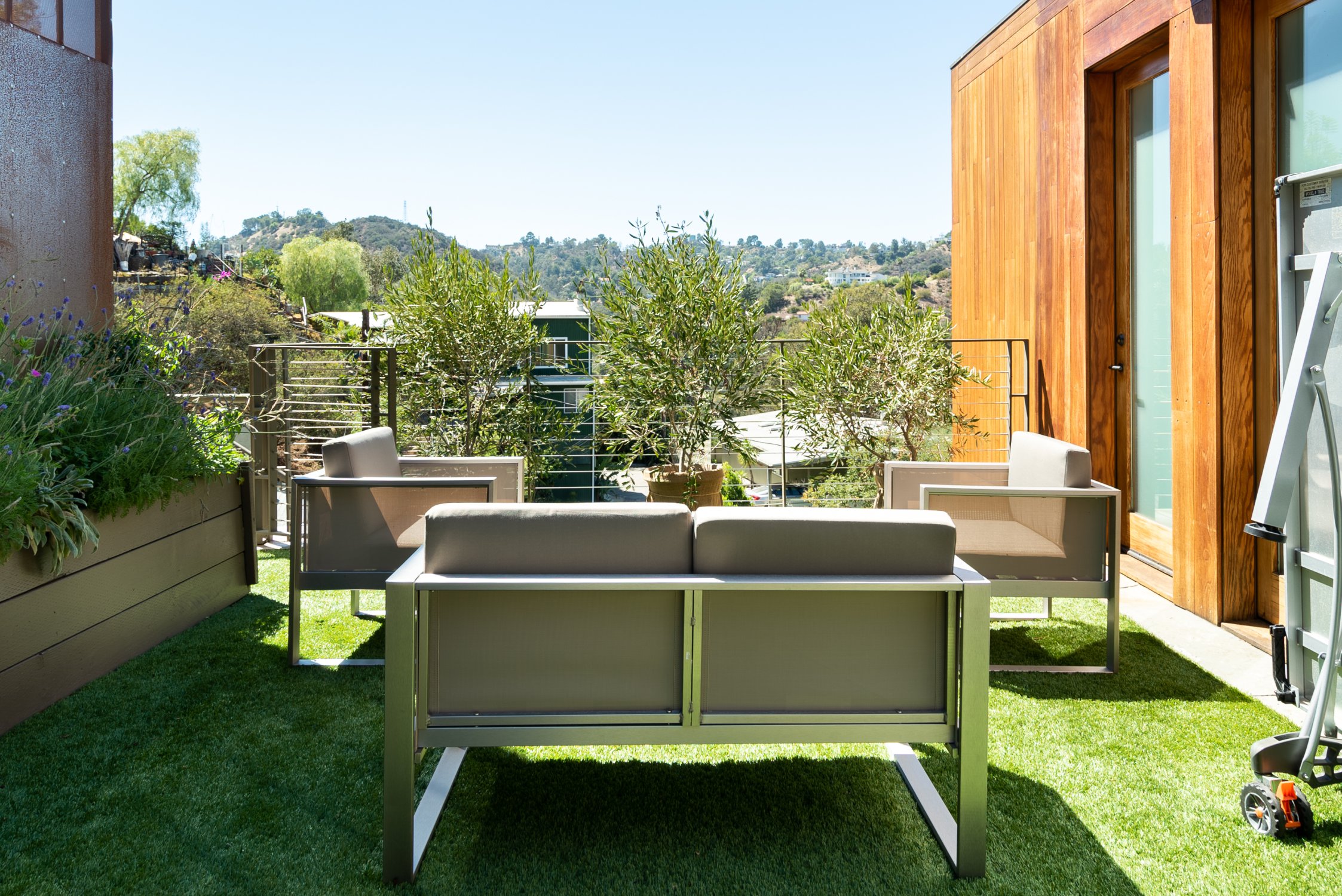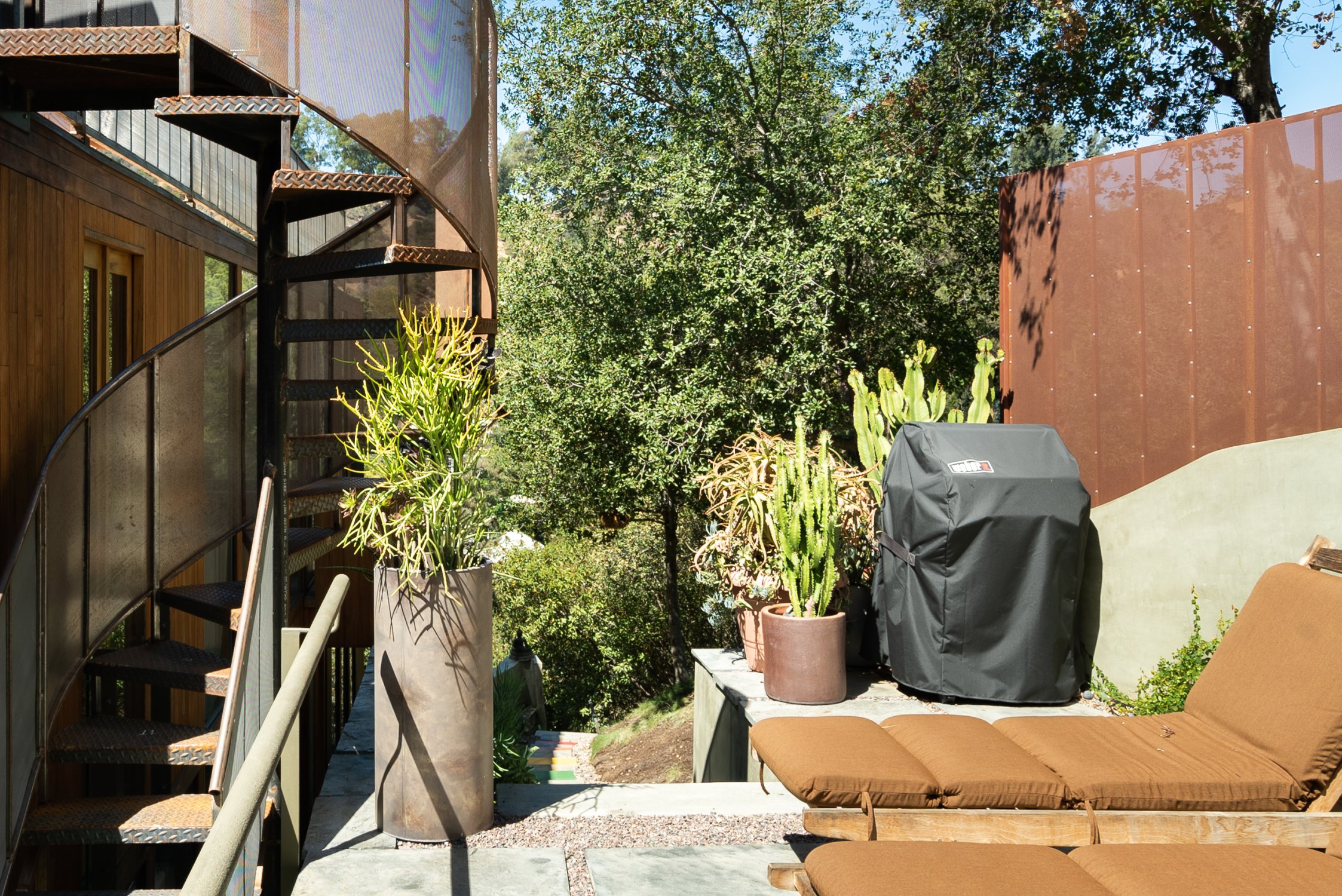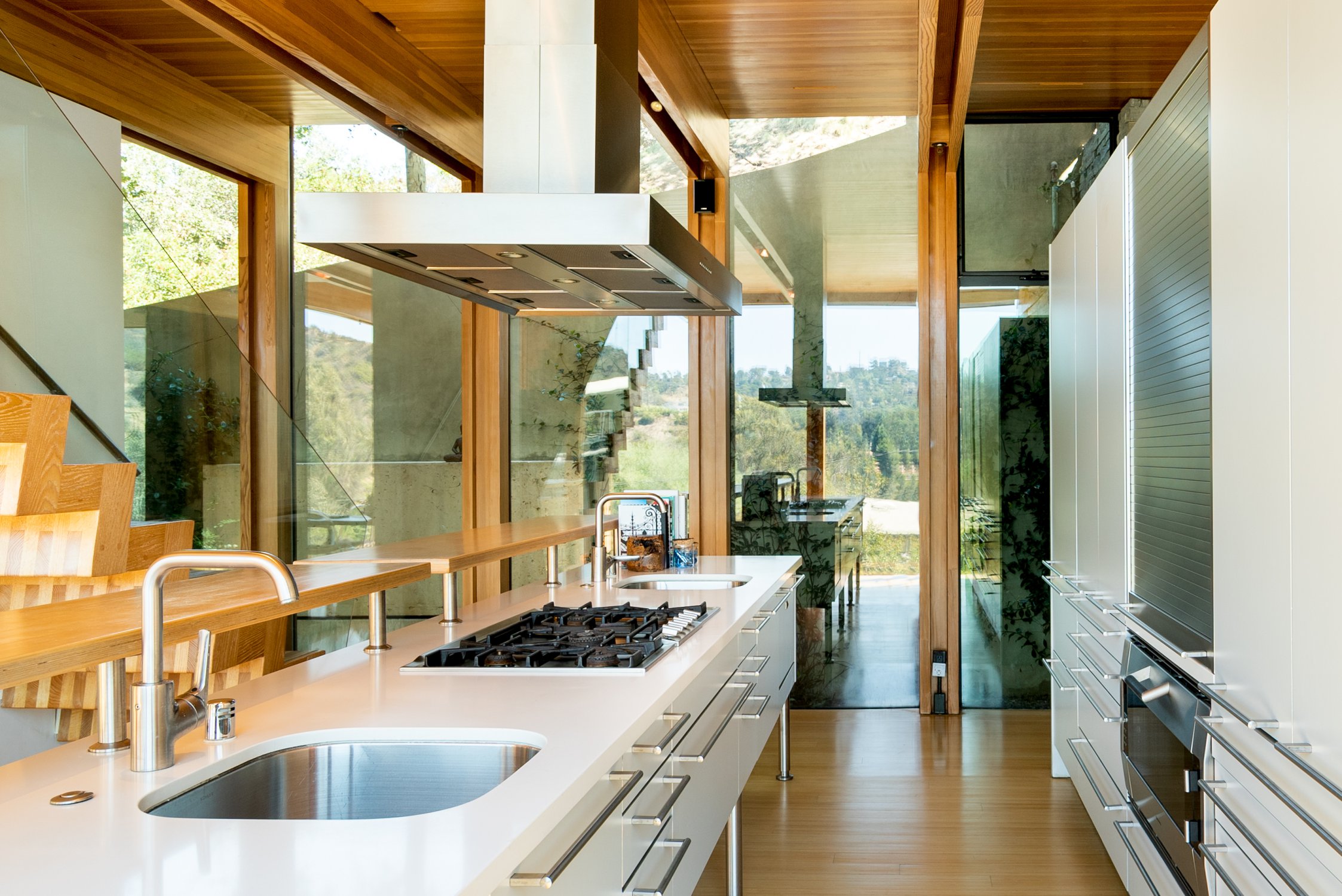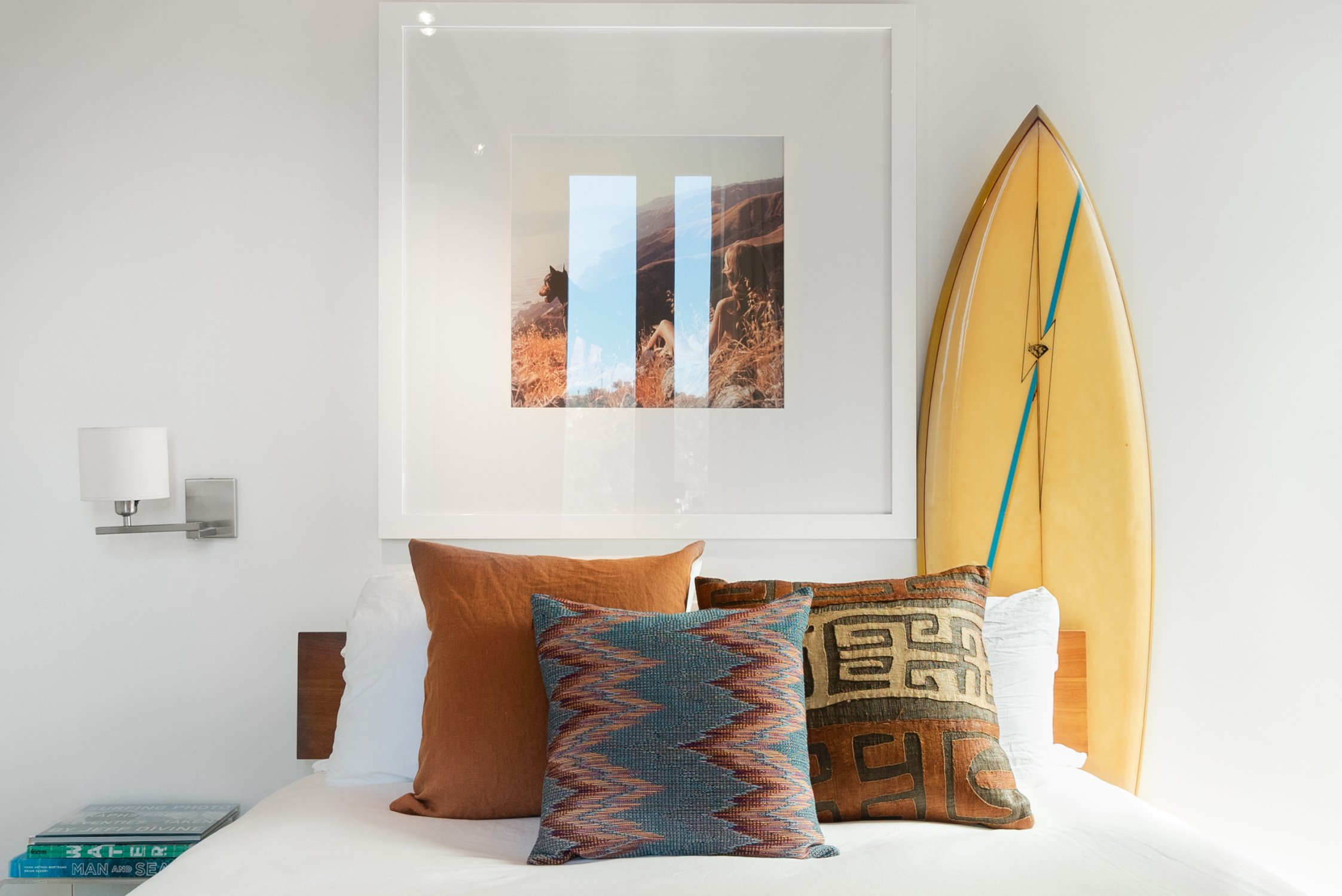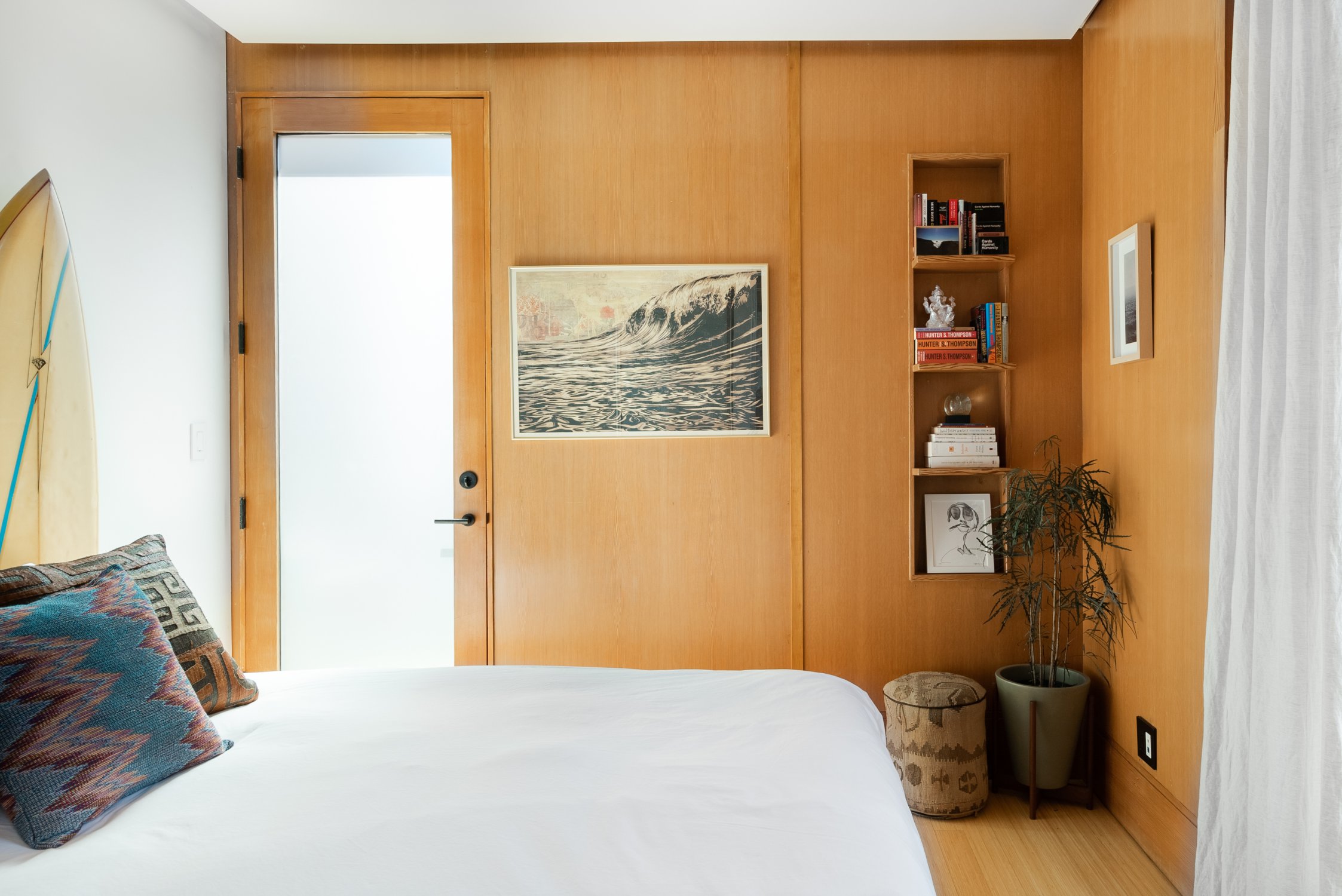 The Vibe: We’re sure you won’t want to stop thinking inside the box once you set foot into this ritzy rectangular residence. Boasting artistic architecture unafraid to set itself apart, the cinema-worthy drama of this panoramic paradise may only be matched by the movie studios tucked into the valley just below. Zen yet zesty, serene yet stunning, the home’s open, earthy style draws upon worldly influences to play up striking scenery visible from every room. Ranging from tributes to rock royalty to sweeping floor-to-ceiling glass balanced by blissful bamboo, the sophisticated style of this hillside haven refuses to take itself too seriously.