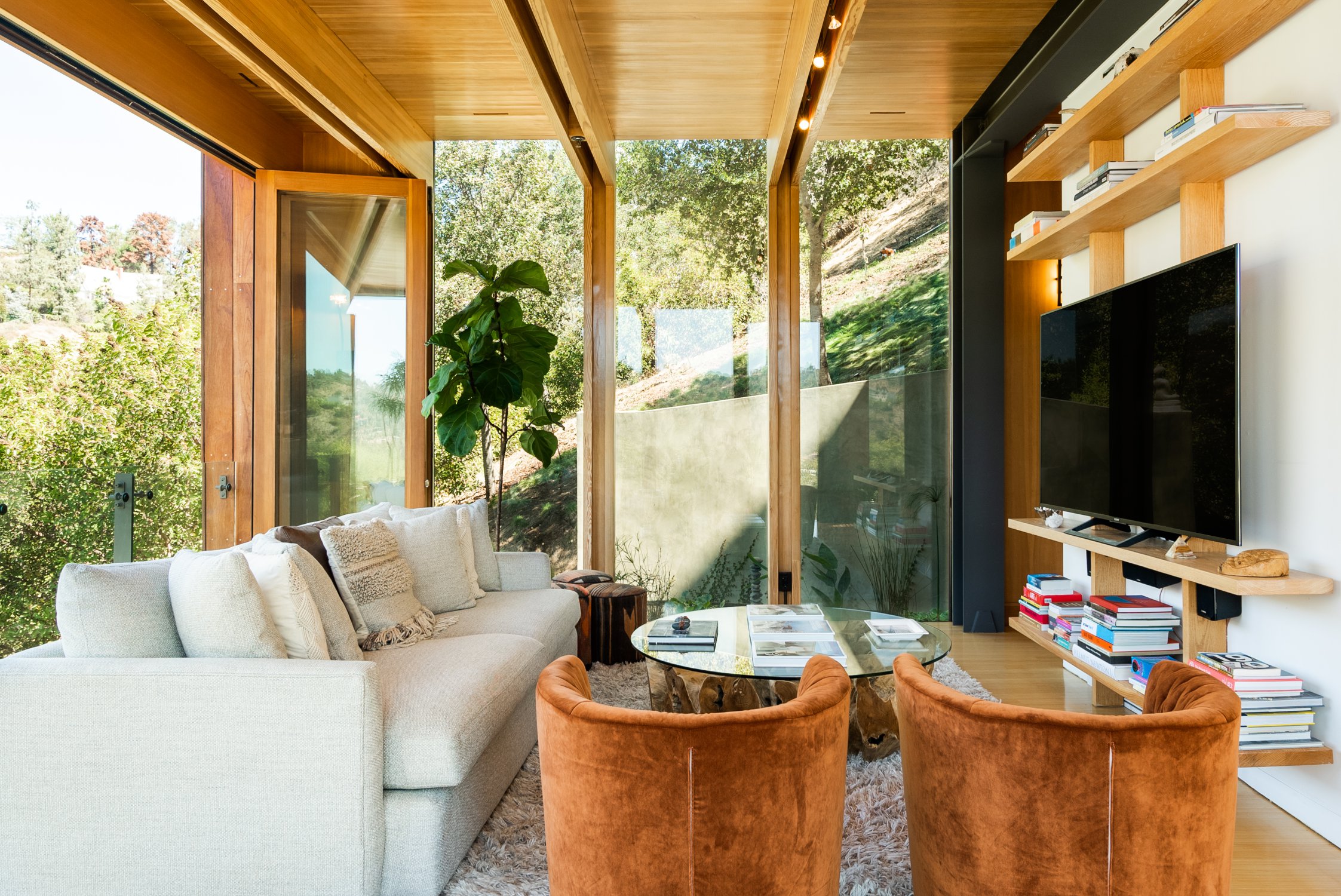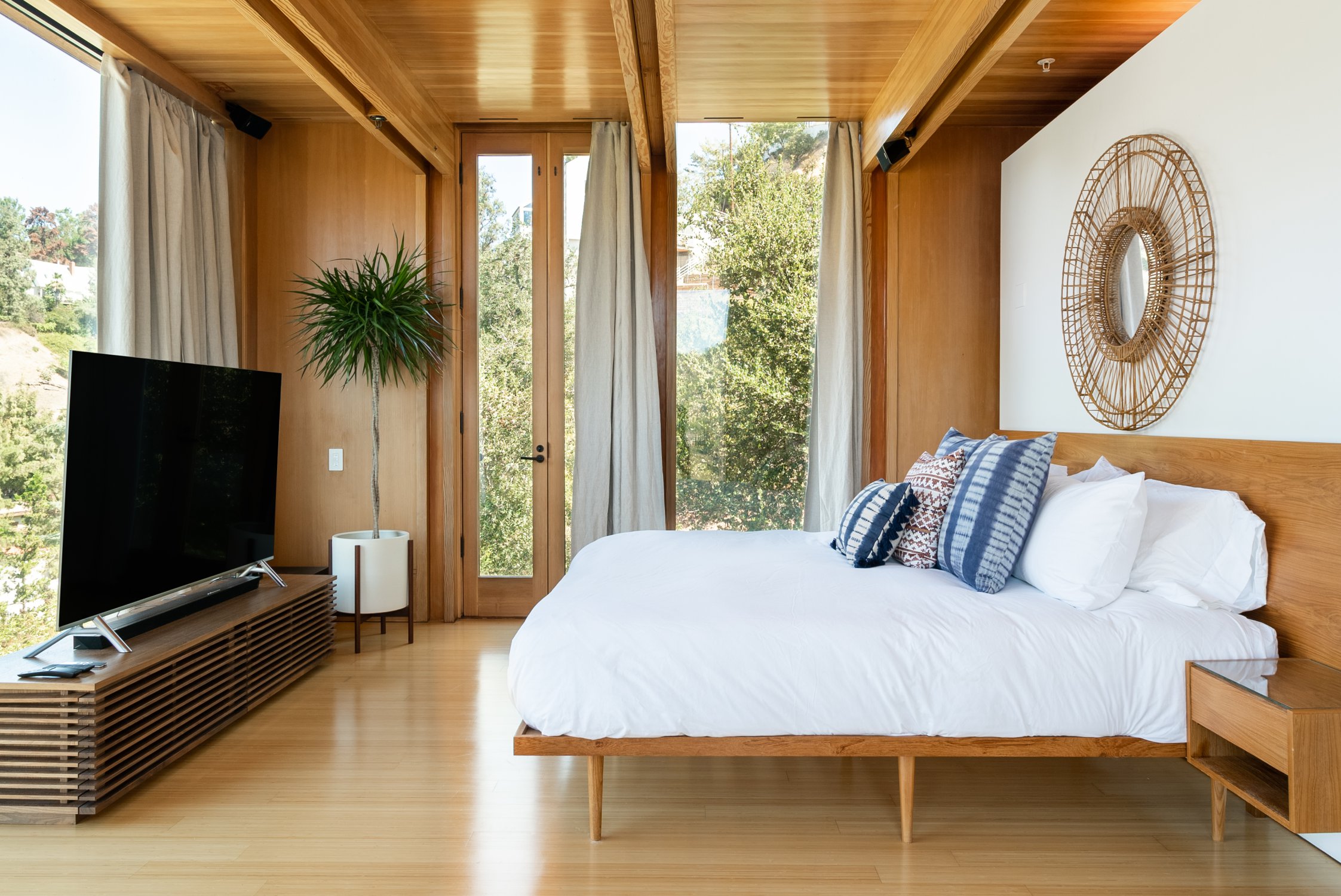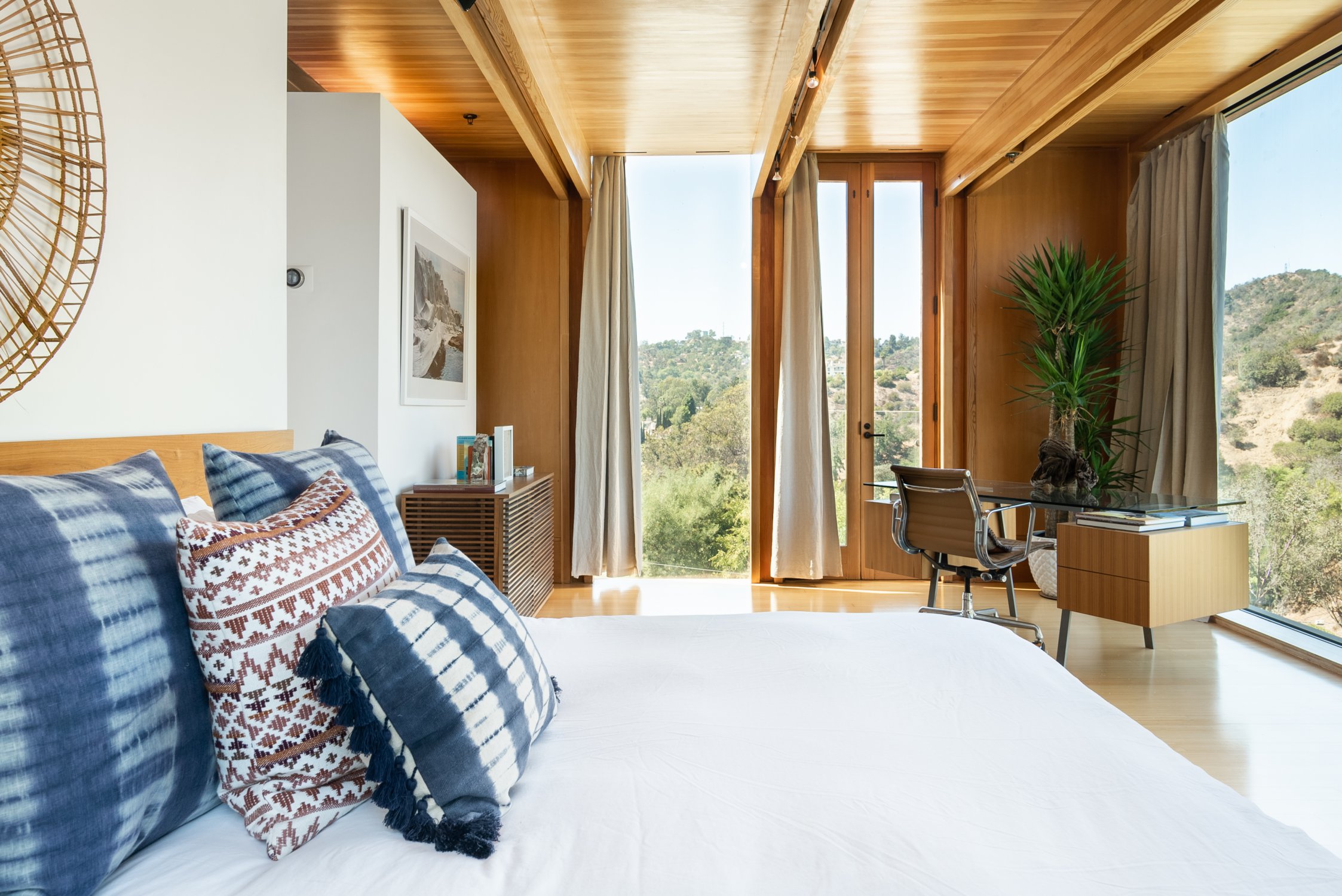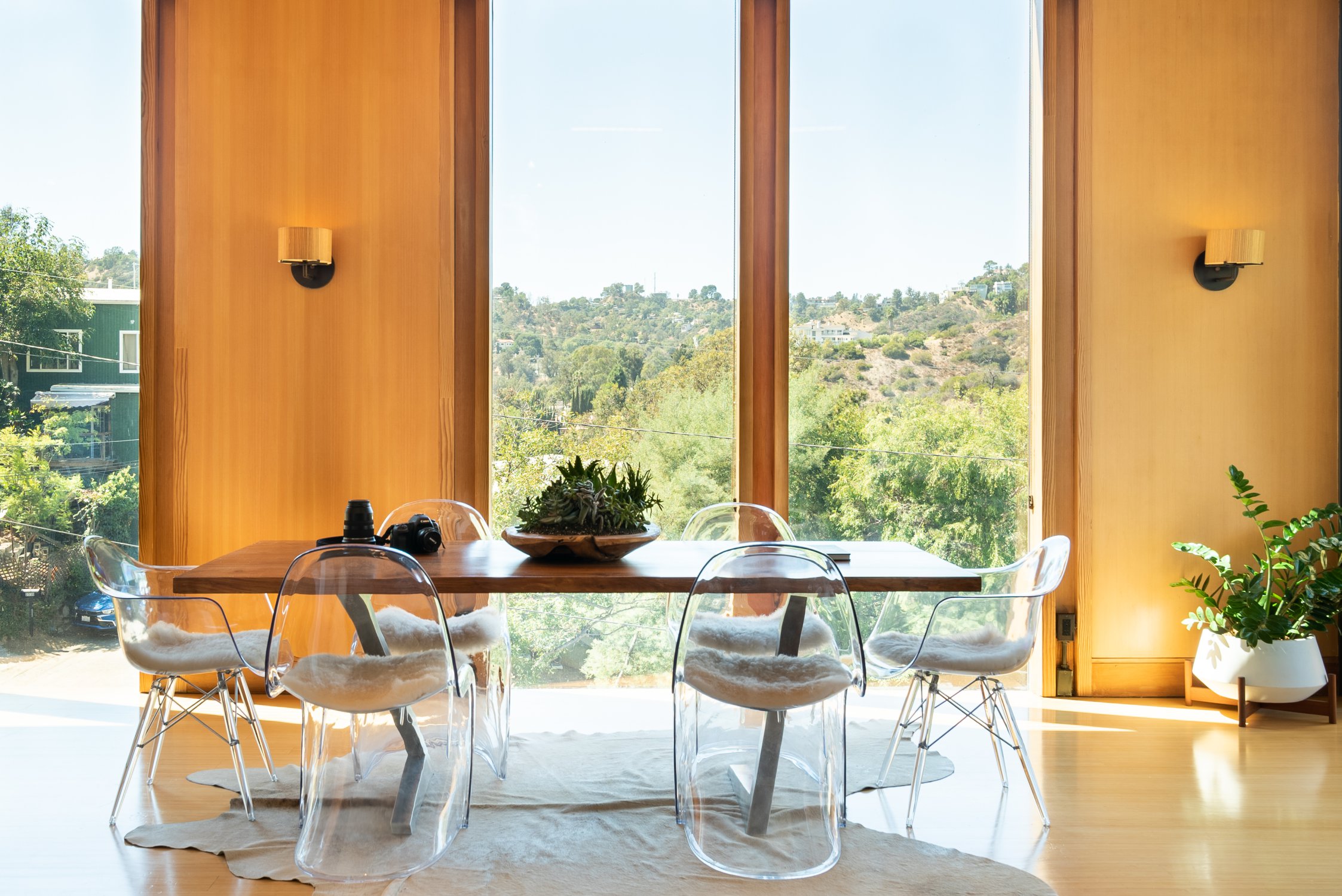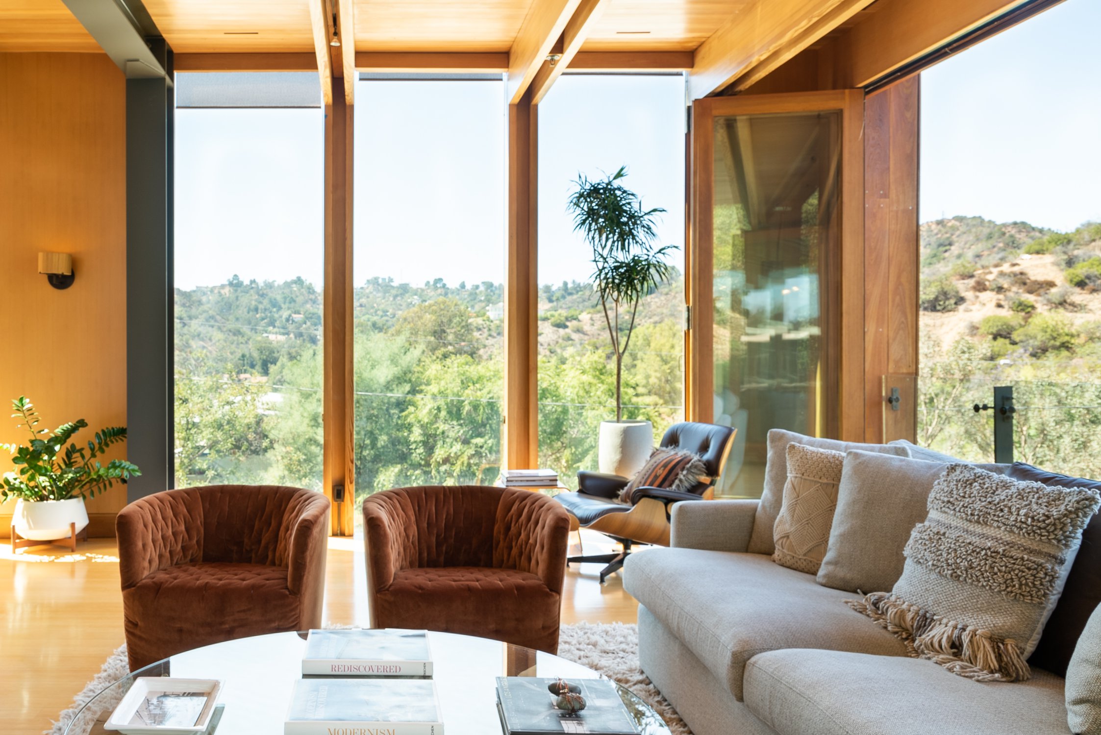 The Details: Warm wooden walls frame a flowing floorplan, at once calming and eye-catching. The seamlessly interwoven interior and exterior spaces will keep you on your toes — every room seems to magically melt into mottled mountaintops and verdant vistas. Year-round SoCal sun can’t be beat so let go and luxuriate in light at this heavenly Hollywood Hills hideaway! From the comfort of fashion-forward furs and laid-back leathers, feel the freshness of spring color bursts, bask in the golden glow of late summer sunsets, and retreat to rain-or-shine radiance.