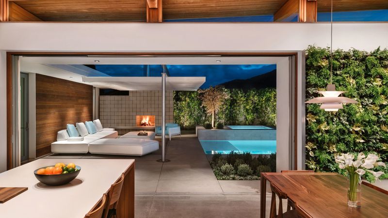 This home draws from the lifestyle and culture of Palm Springs with an open great room breezing out to a private courtyard,—seamlessly blending indoor and outdoor living while incorporating innovative and energy-efficient products and systems throughout.