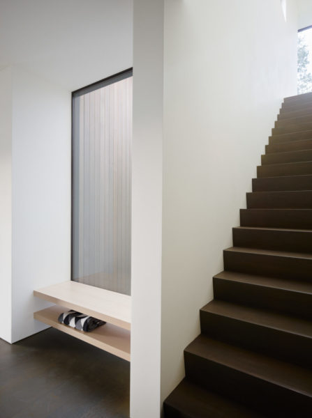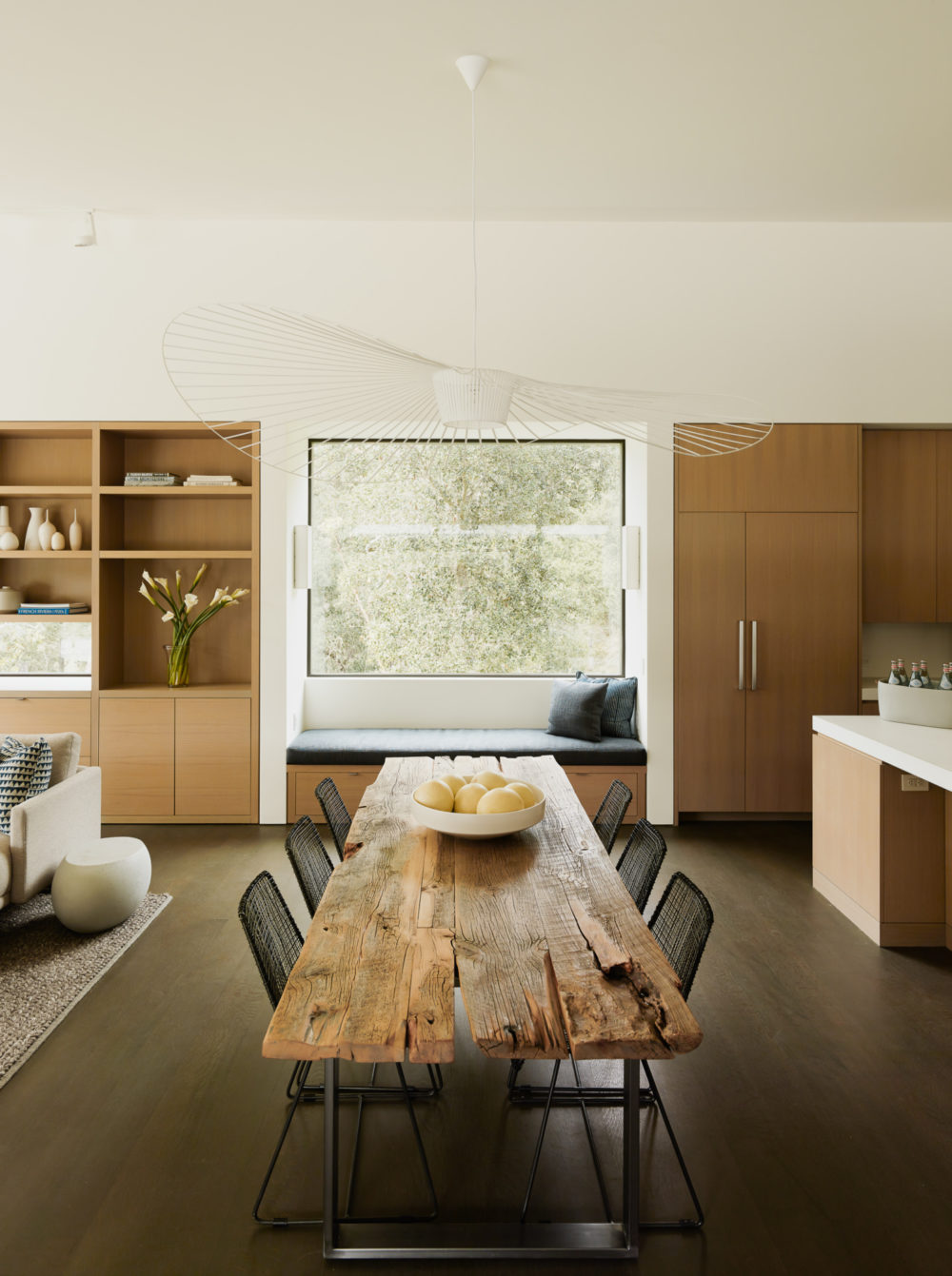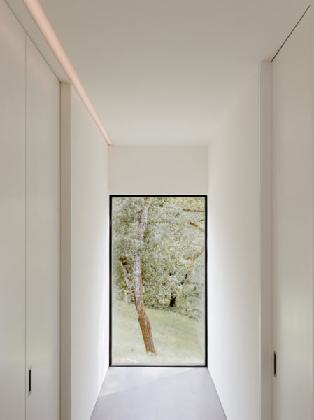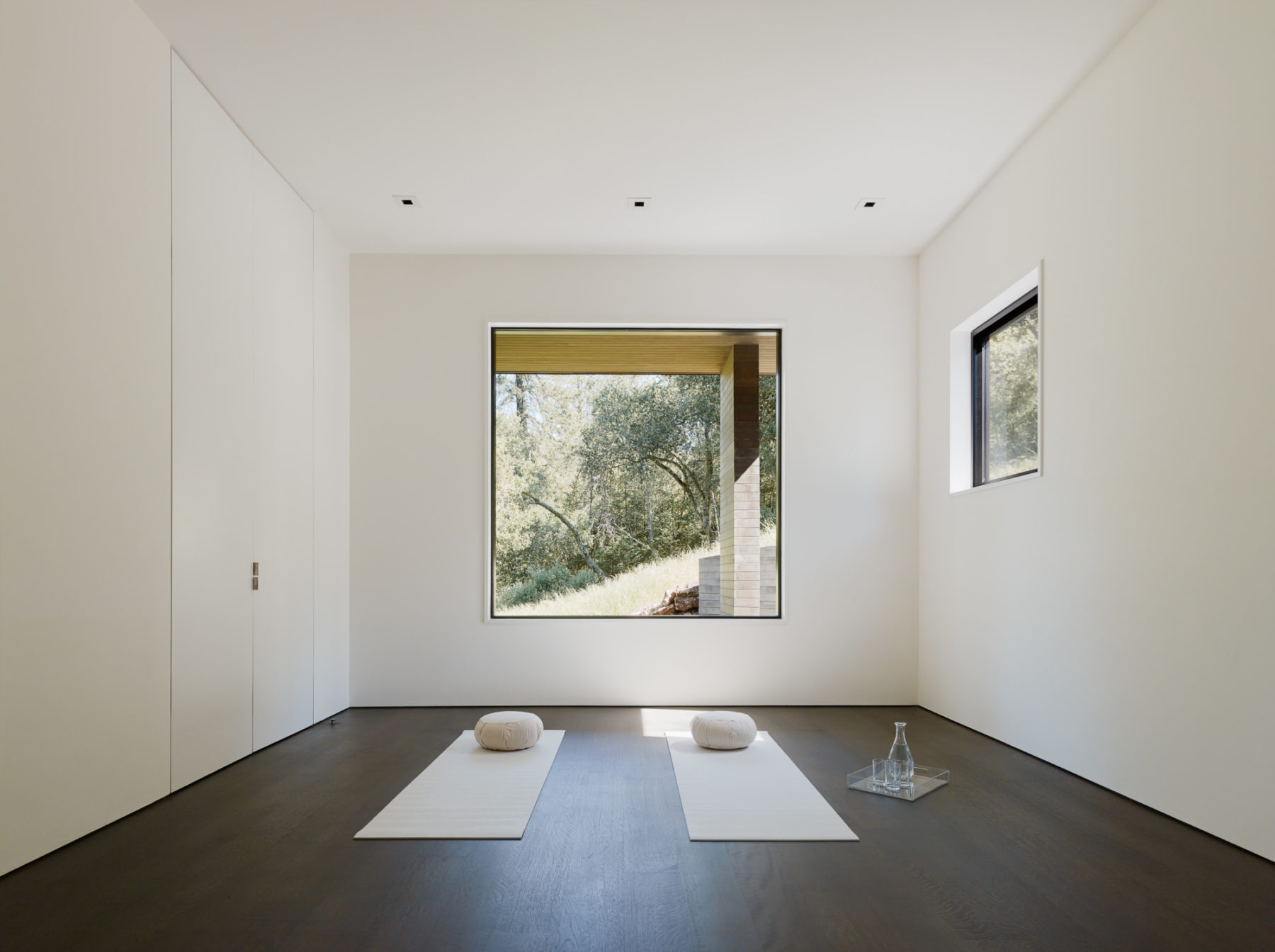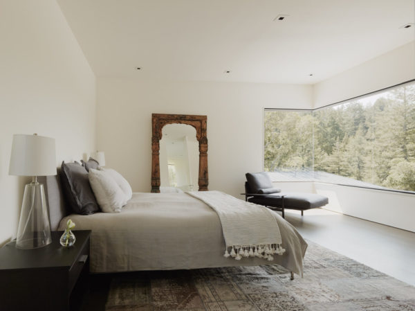 The sustainably designed home mixes old style features like an open courtyard with modern details that blur the divisions between the indoors and the outdoors — the white-walled interior and the greenery outside. The sparse, simple, organic decor allows for Mother Nature to be the interior decorator.