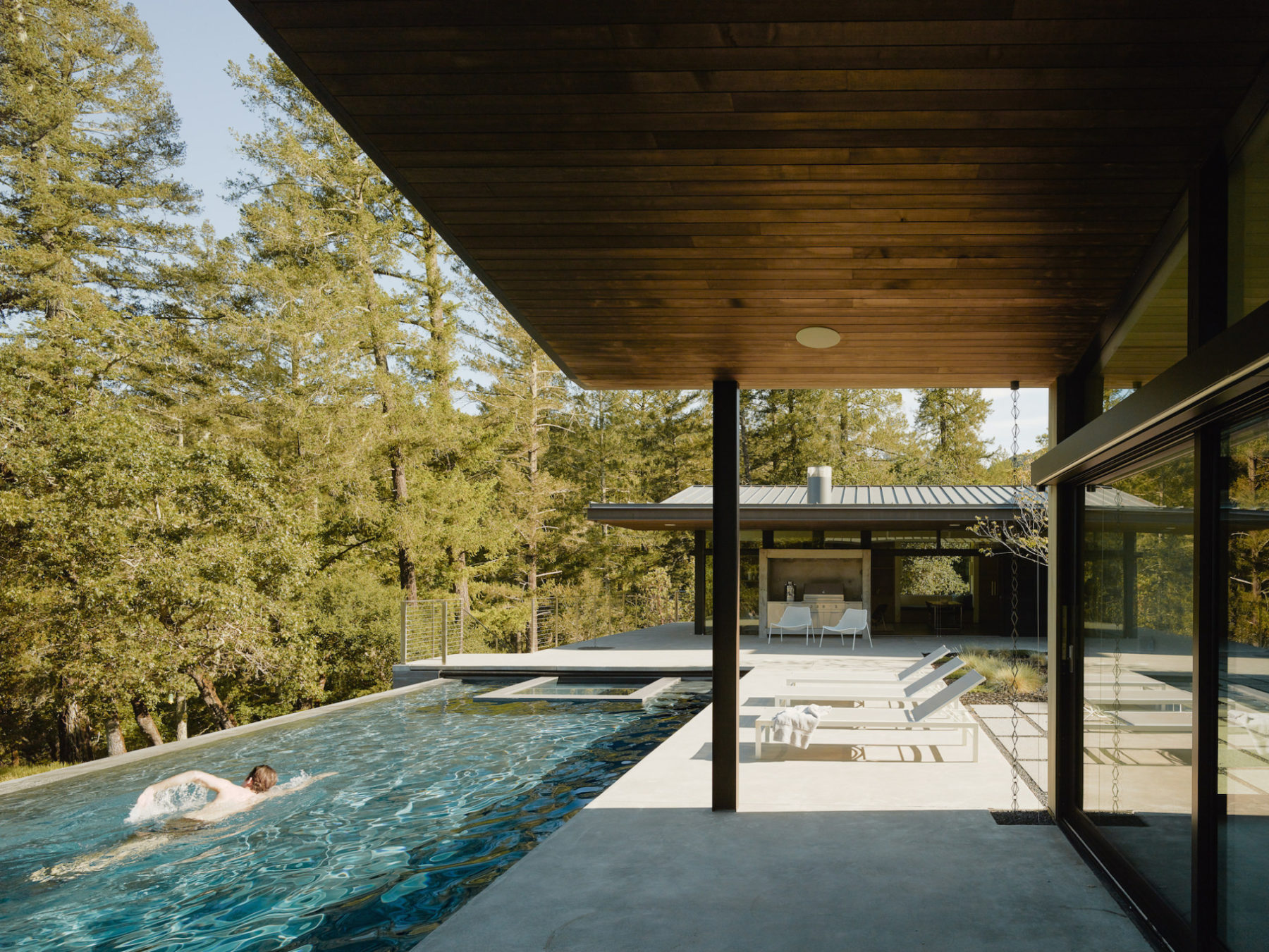Earthy and elegant, this modern hacienda is the epitome of the Sonoma lifestyle – entertaining, lounging, dining, and no whining (just wine)! Nestled on 37 acres and surrounded by trees, it is private yet inviting, zen and zealous.