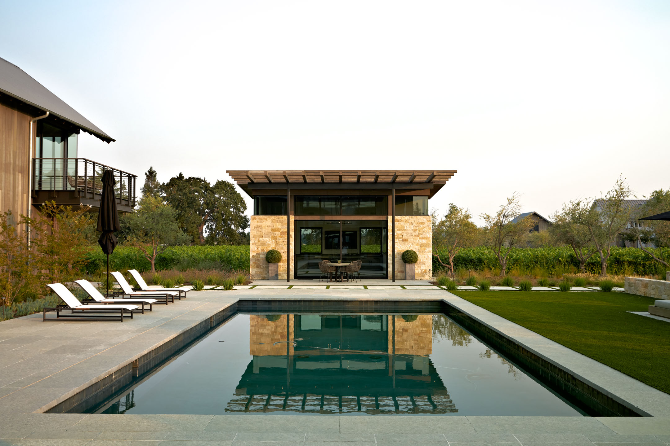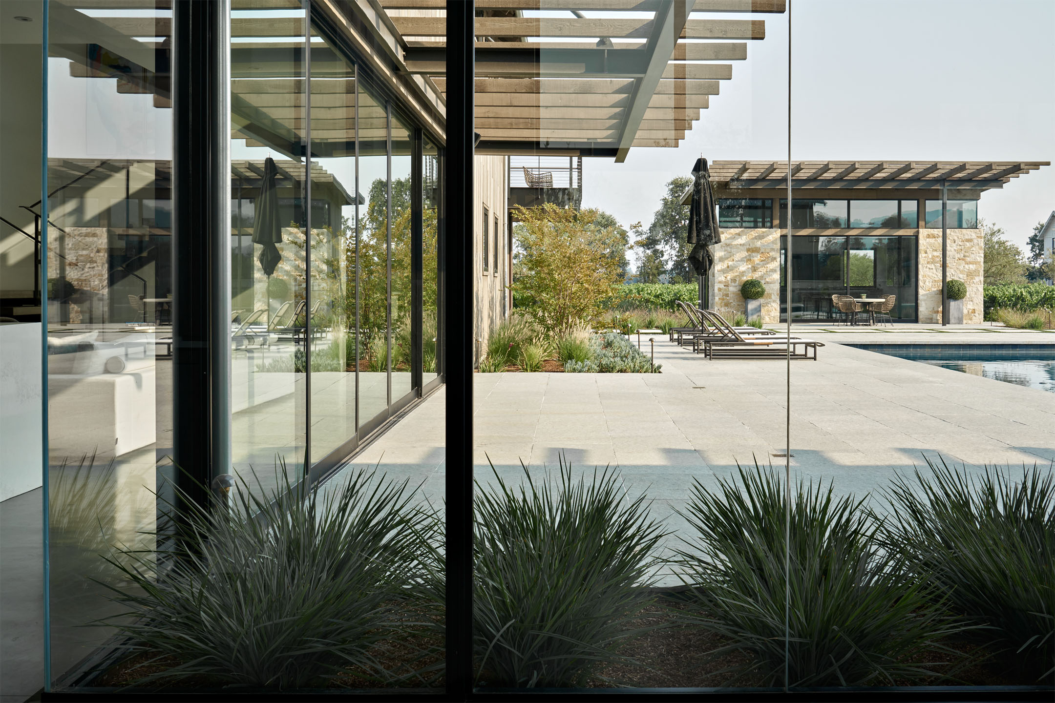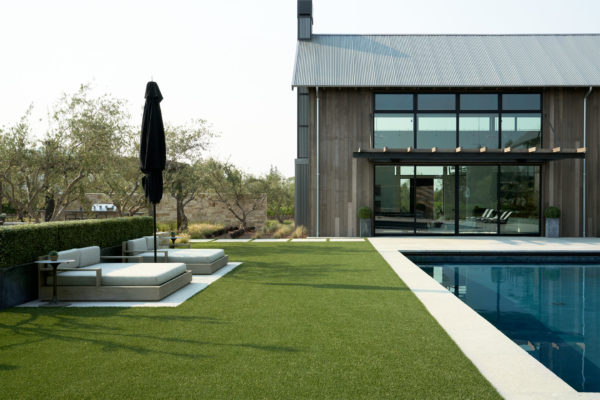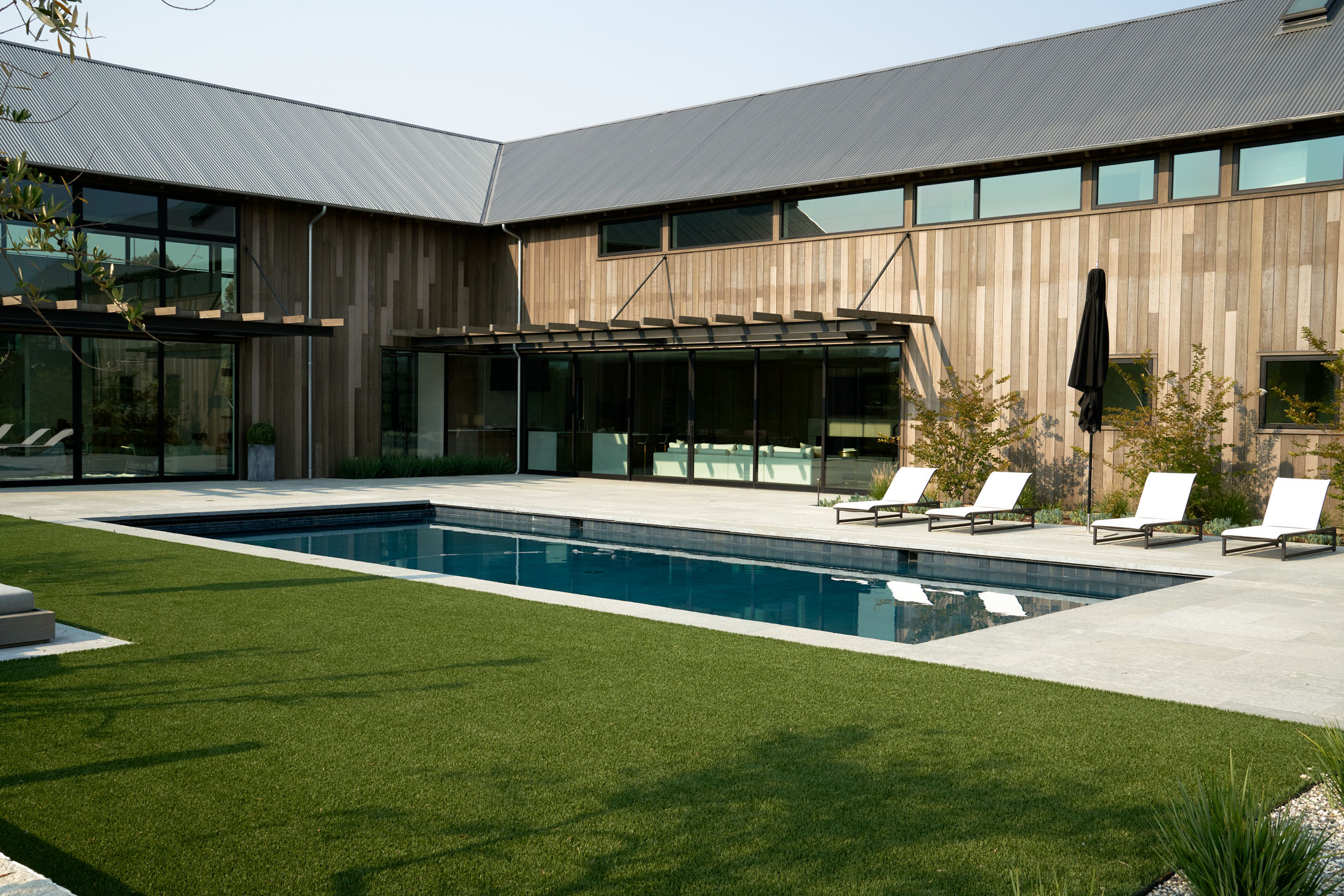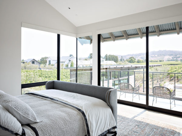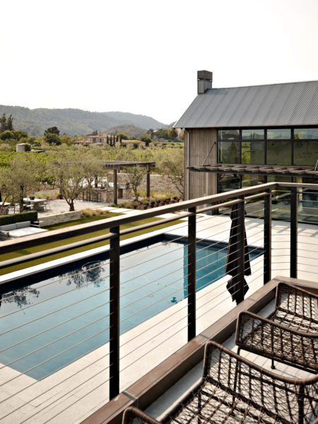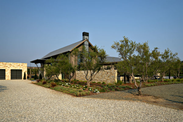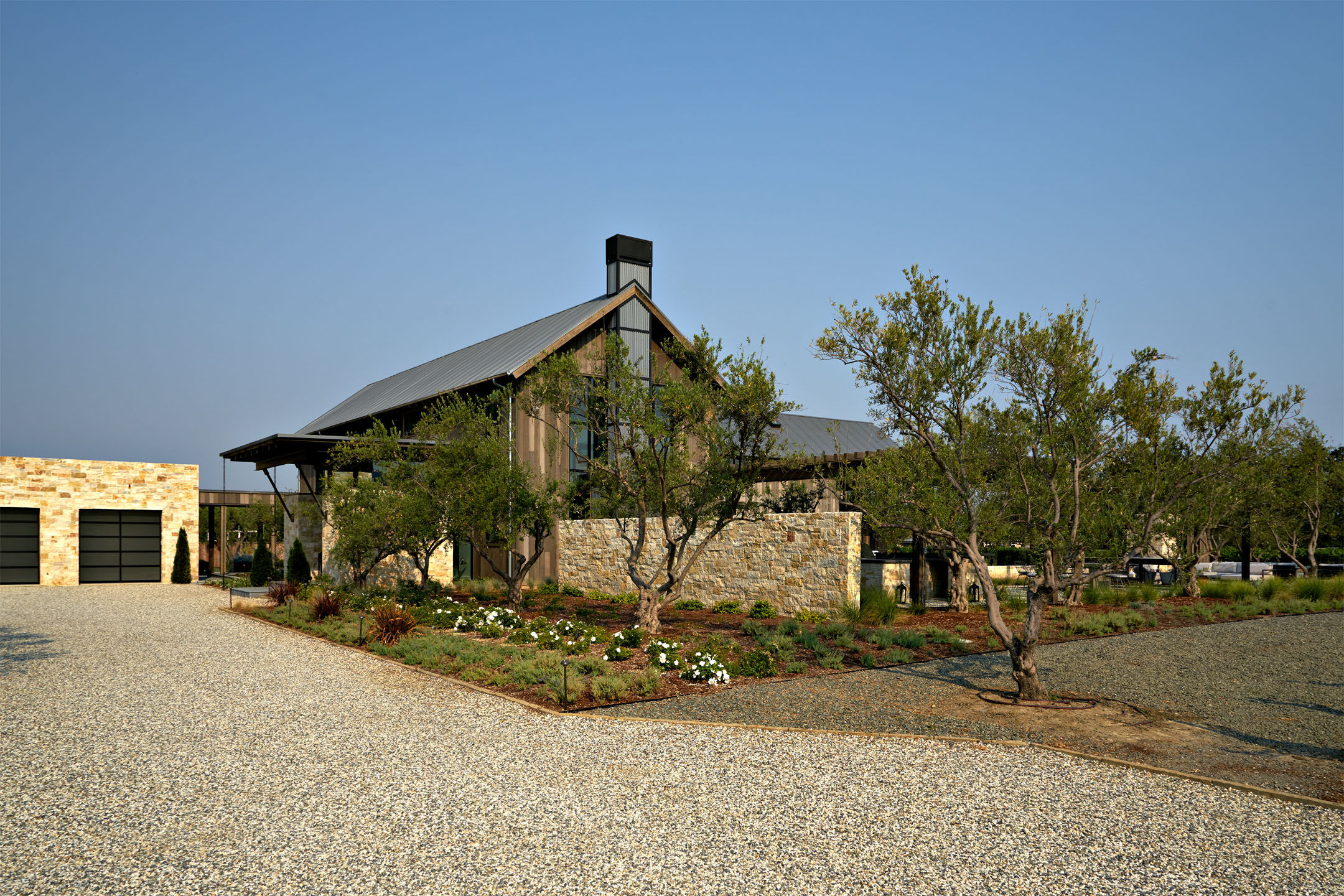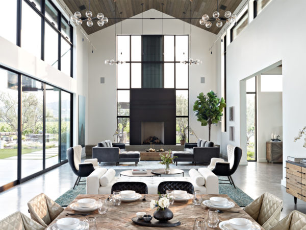 Vineyard views, vaulted ceilings, vibrant vegetation — modern magnificence and upscale amenities abound in this palatial pad. Nestled into nearly 4 acres of groomed grounds, it’s hard to believe that this commanding rustic retreat was just built in 2017. Conjuring classic structural lines, a farmhouse-fab façade features floor-to-ceiling convertible windows that blend boundaries between inside and out.