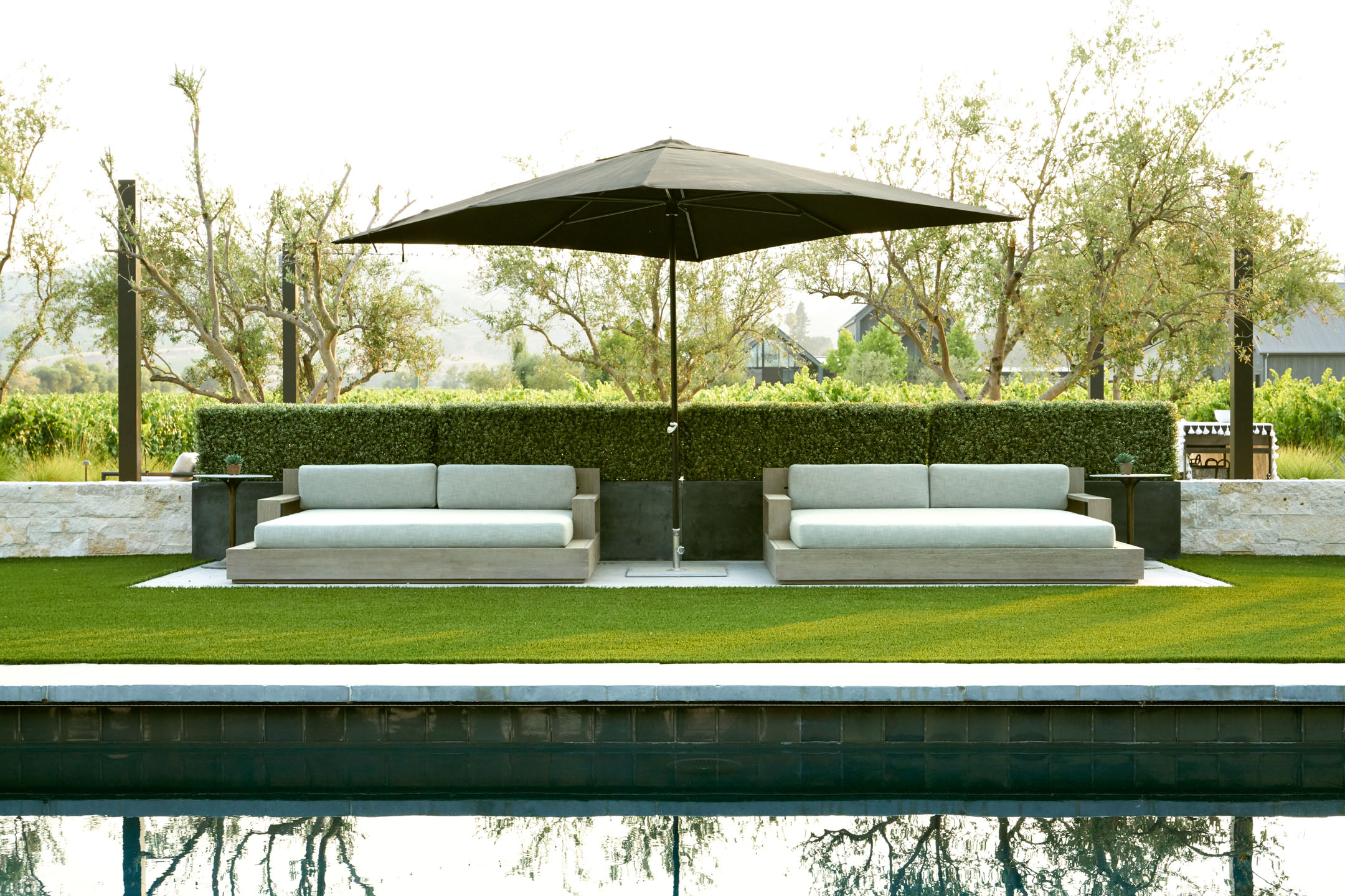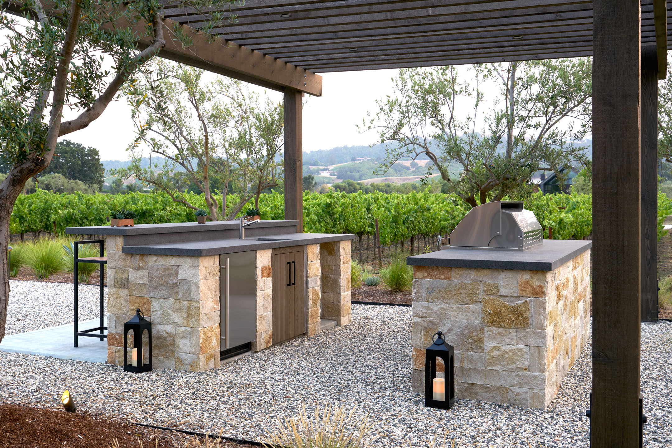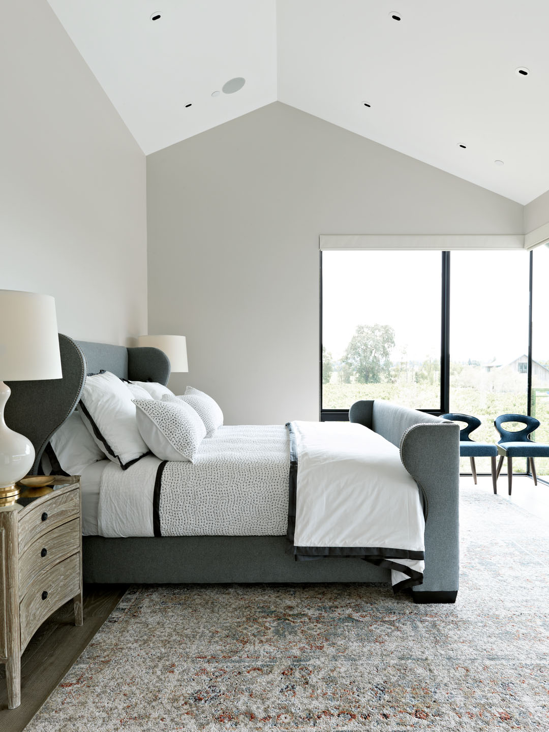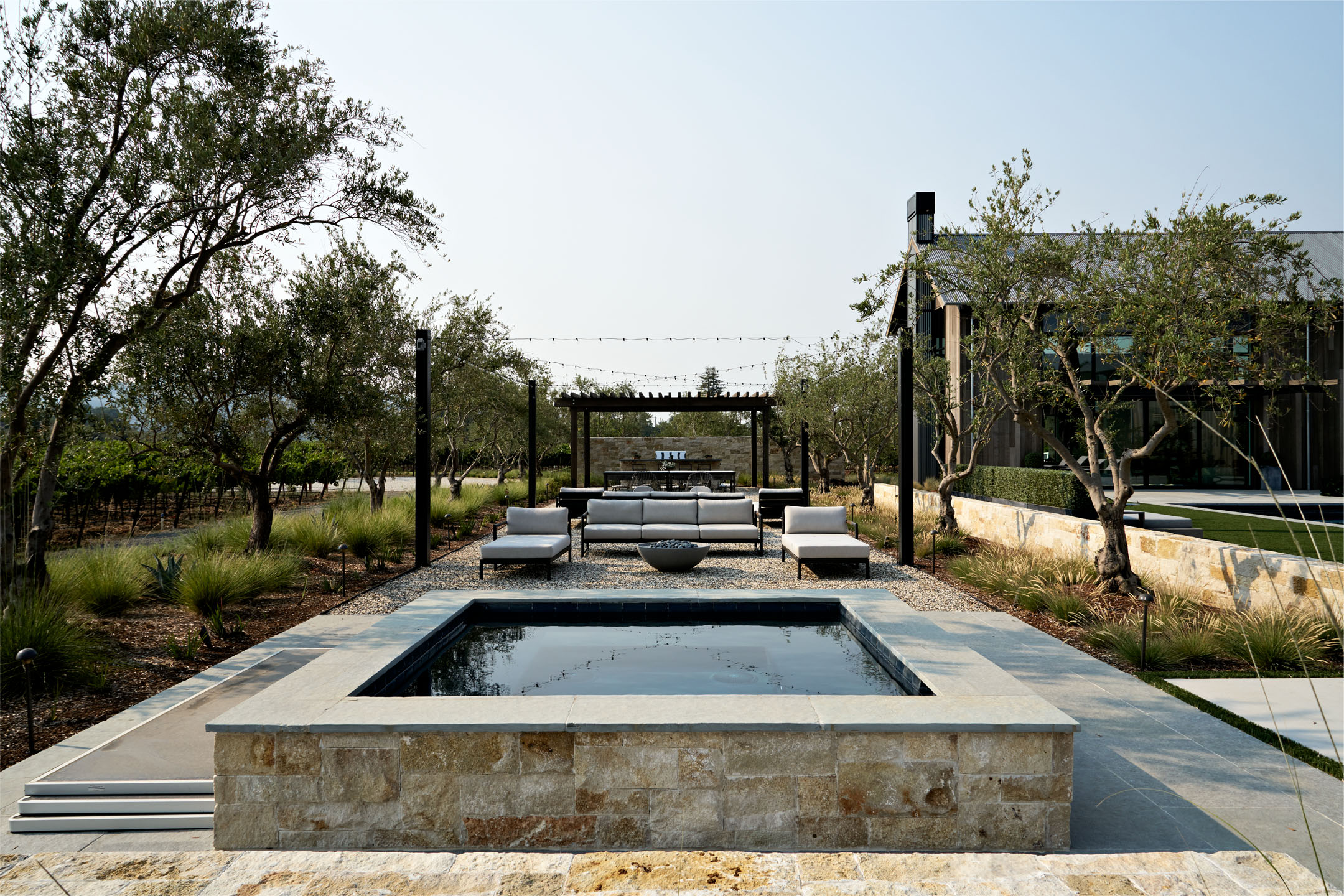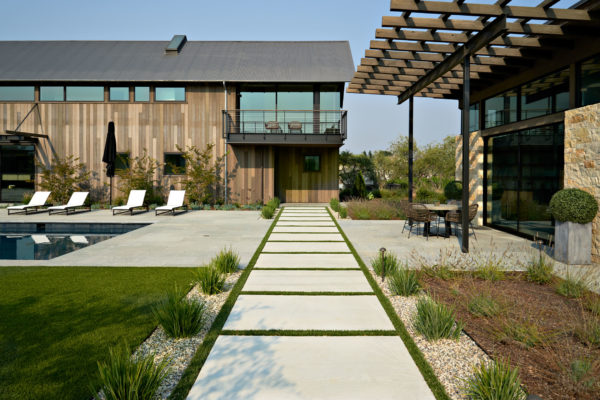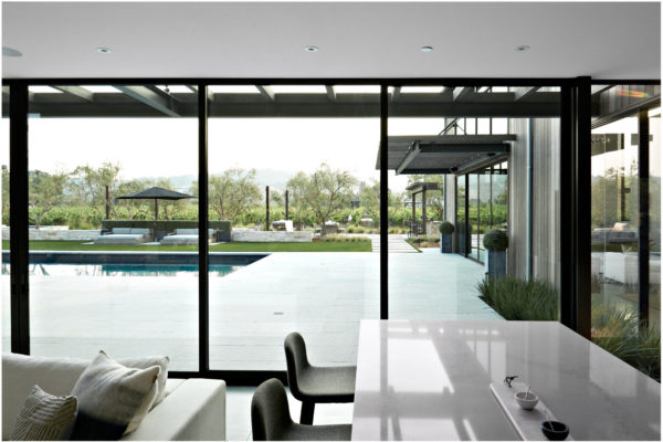 Vineyard views, vaulted ceilings, vibrant vegetation — modern magnificence and upscale amenities abound in this palatial pad. Nestled into nearly 4 acres of groomed grounds, it’s hard to believe that this commanding rustic retreat was just built in 2017. Conjuring classic structural lines, a farmhouse-fab façade features floor-to-ceiling convertible windows that blend boundaries between inside and out.