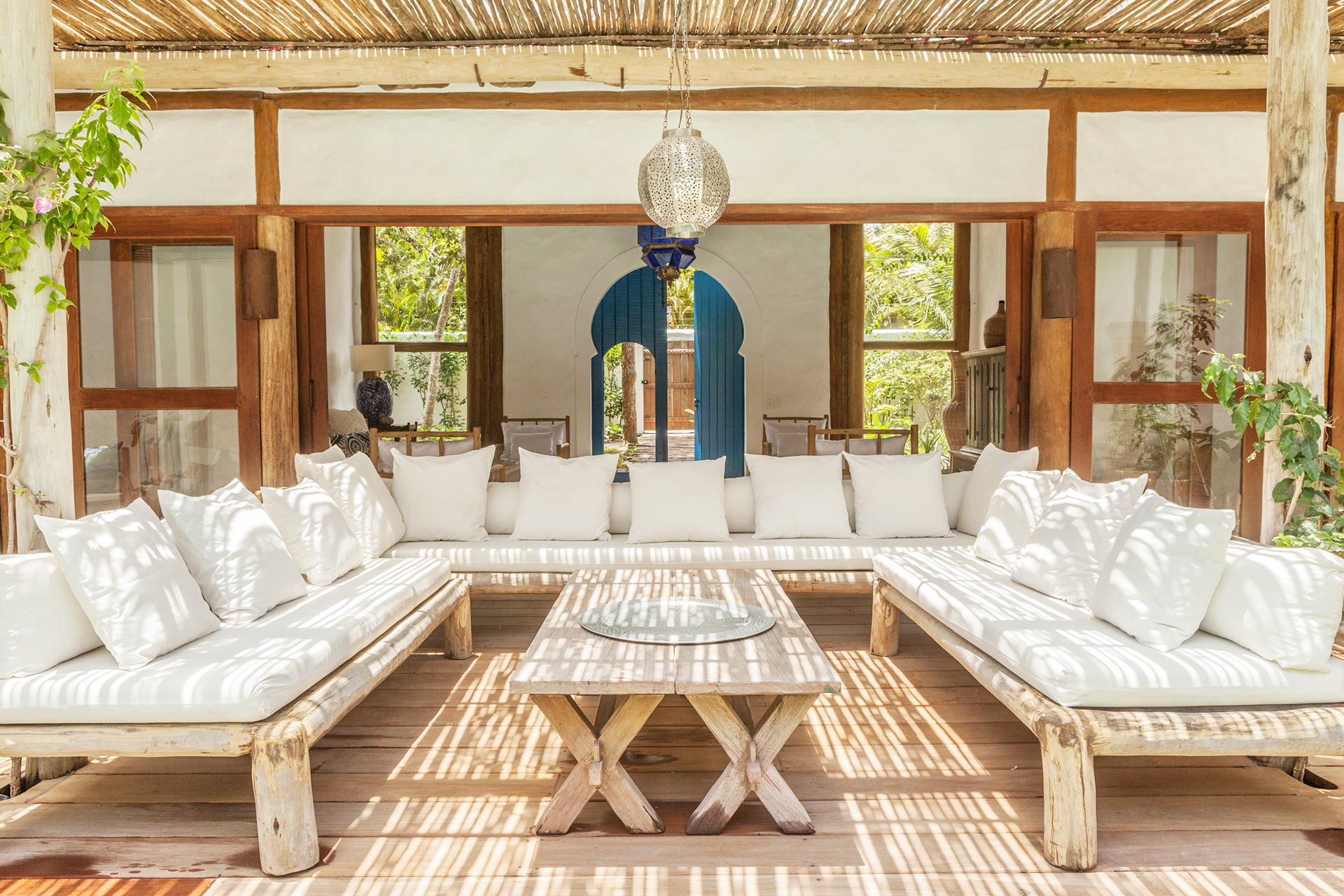 This is a true oasis and offers several separate areas including a wooden deck with sun loungers, hammocks and beautiful secluded terraces with panoramic views of the house and its lush greenery.