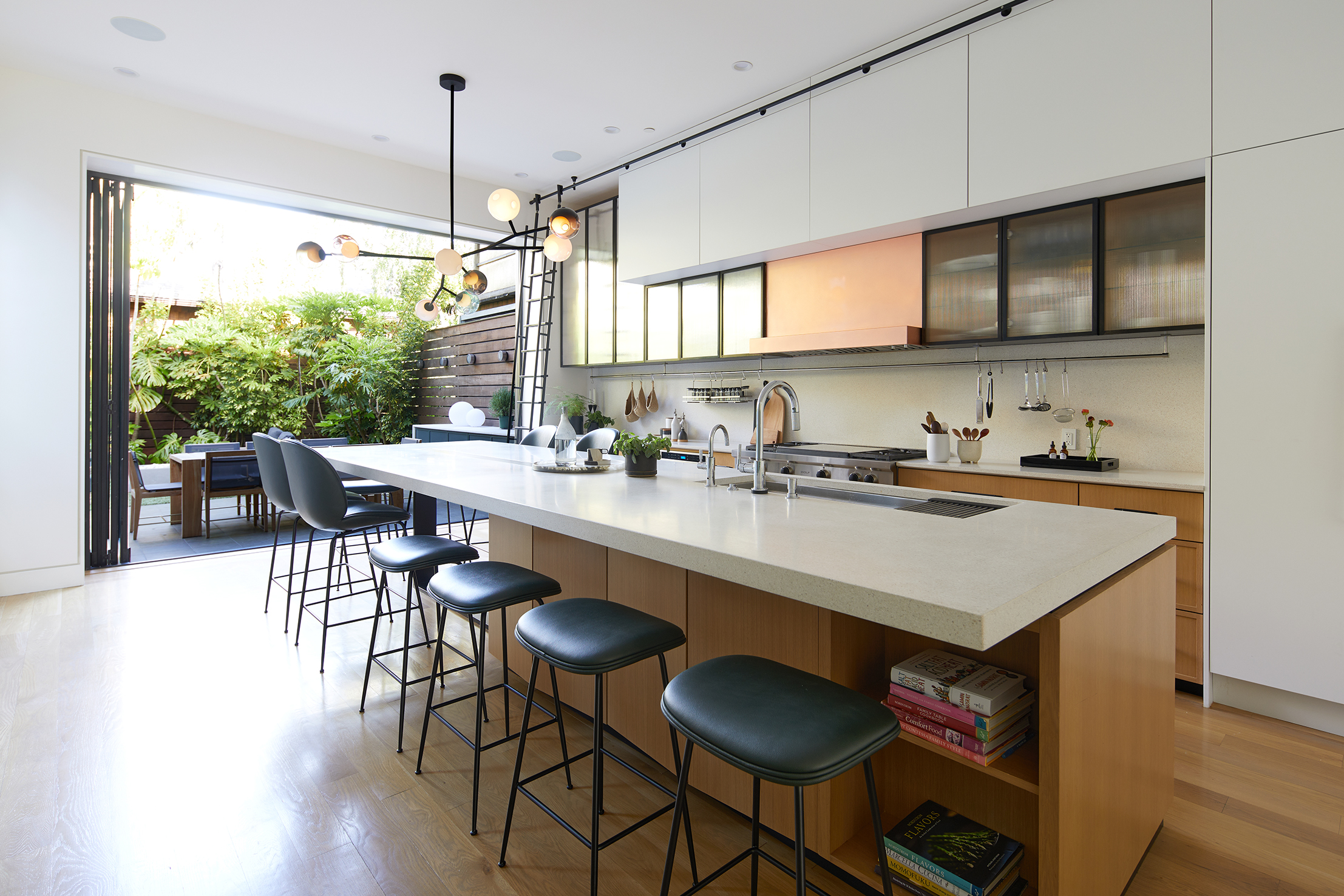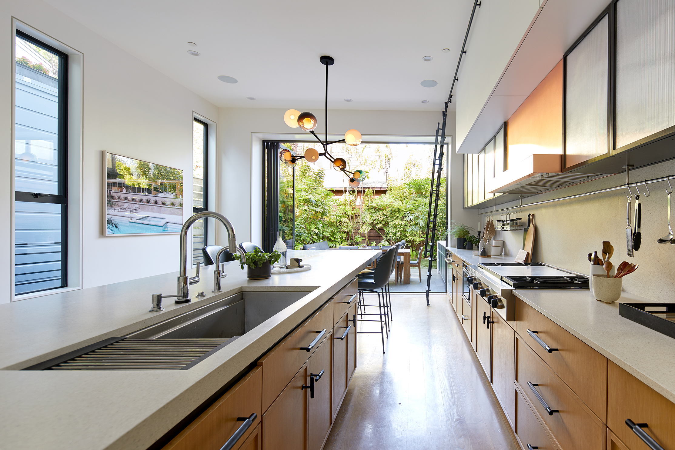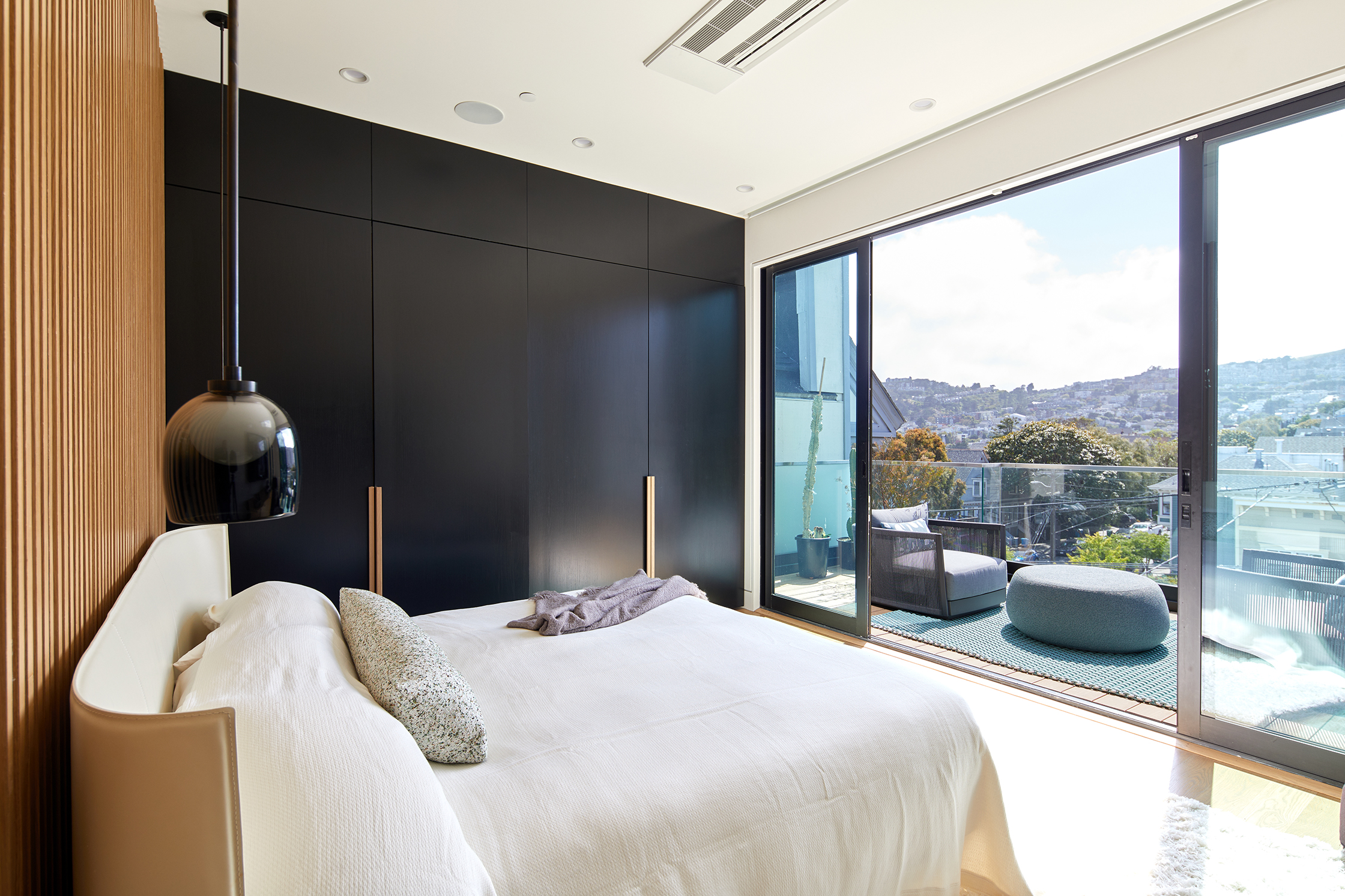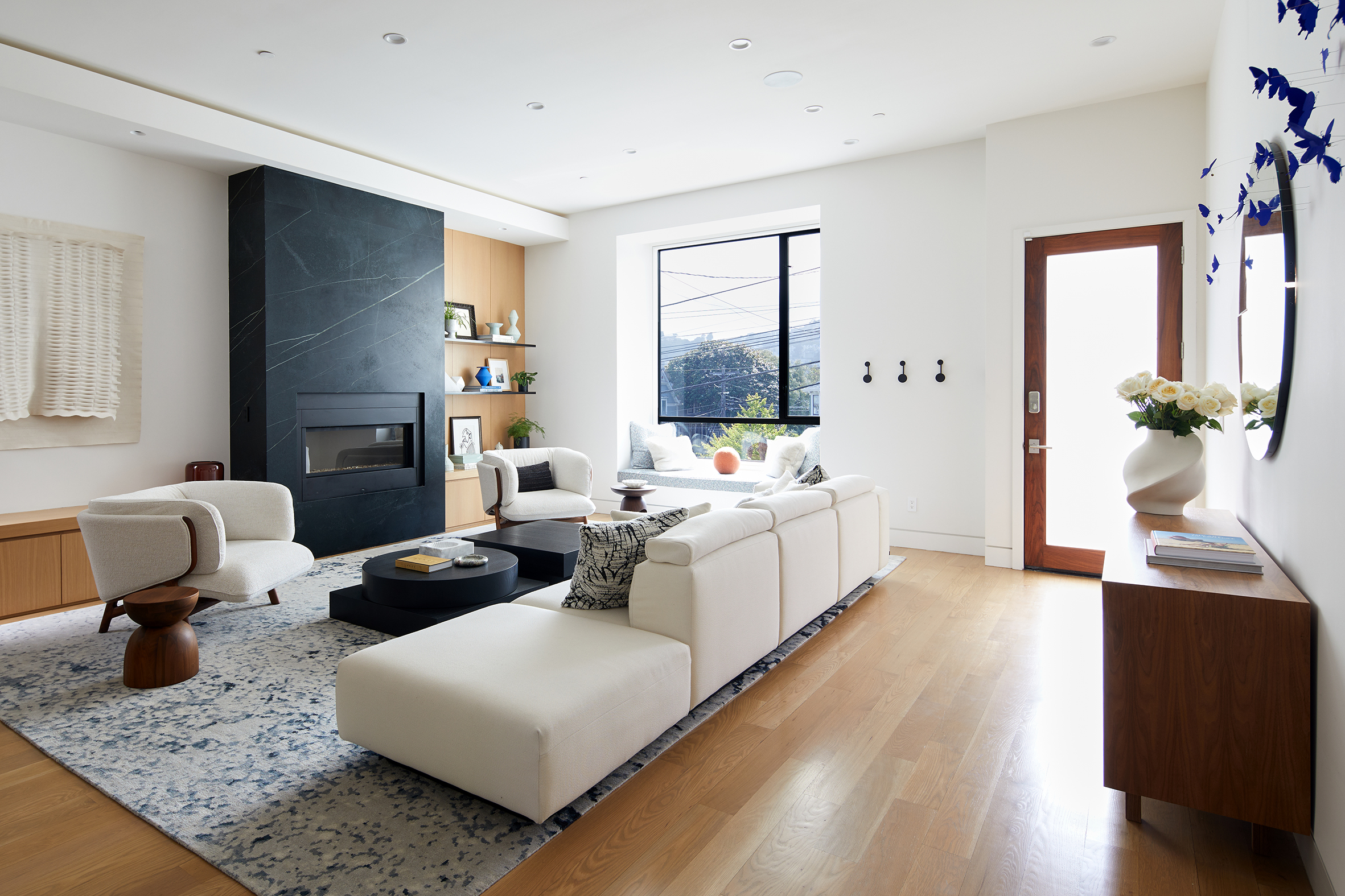 In the heart of San Francisco’s Noe Valley and a short walk to Dolores Park. This four bedroom three and a half bathroom modern home has a large great room on the main level with 11ft ceilings, a rich floor to ceiling soapstone fireplace, radiant heated oak flooring, an inviting kitchen/family room with immediate access to the lush garden. The upper level includes a grand primary suite with a private terrace and western views of Twin Peaks and an additional two bedrooms and guest bathroom.The lower level features a large family/media room, bathroom and an additional guest bedroom. Fabulous for interior and exterior photo ops!