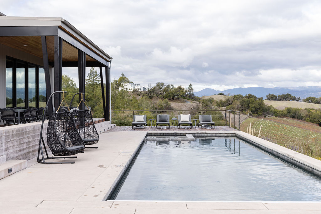 This modern, Healdsburg masterpiece encompasses over 5 acres within an undulating landscape!