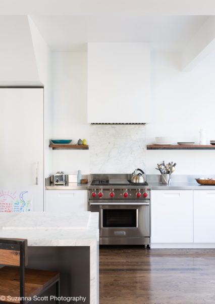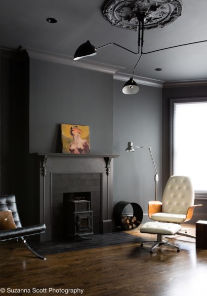 This IS your mom’s chef’s kitchen! A career culinary connoisseur, the owner’s mother inspired the hearty design. Sturdy stainless steel and marvelous marble make for a whimsical white wonderland that can withstand true cooking-induced abuse! Carefully curated colors pop throughout the posh pad, while custom lighting accents lofty Victorian ceilings. From mid-century-modern to fab farmhouse, furniture from eclectic time periods creatively coalesces throughout the space.