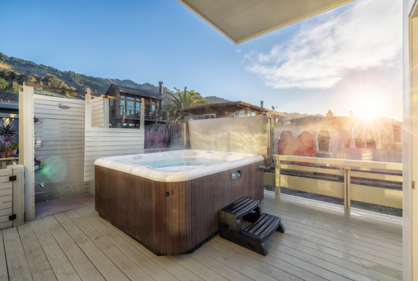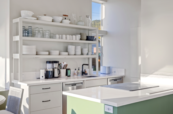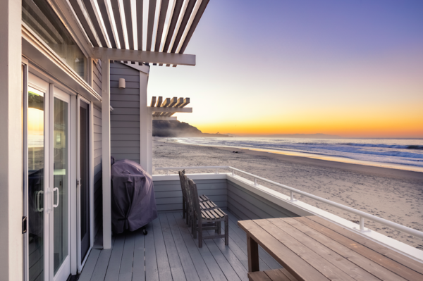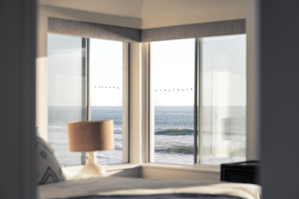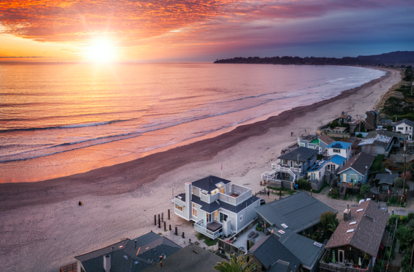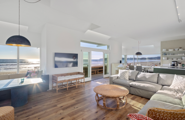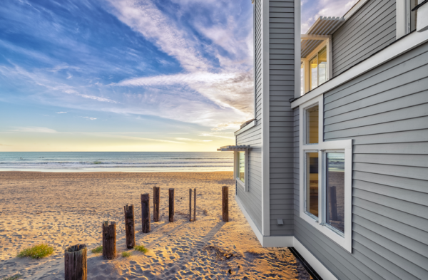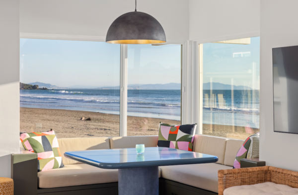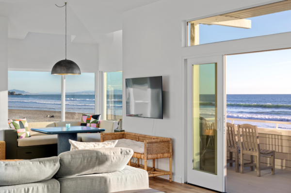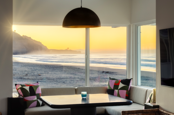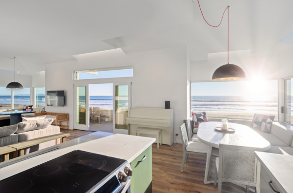 This modern beachfront home overlooks the gorgeous horizon of Northern California