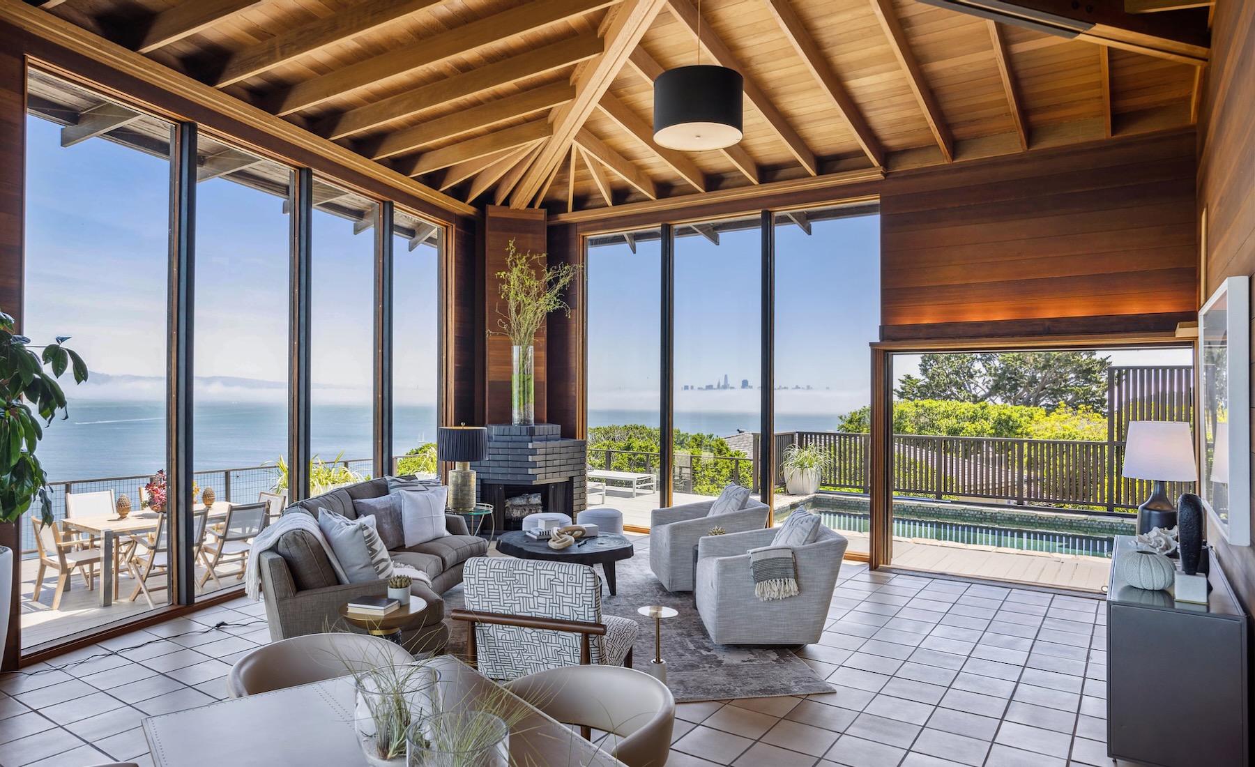 The custom-built home is a masterpiece of design, with meticulous attention paid to every detail. The unique woodwork throughout the house is a testament to the level of craftsmanship that went into the creation of this exceptional property.