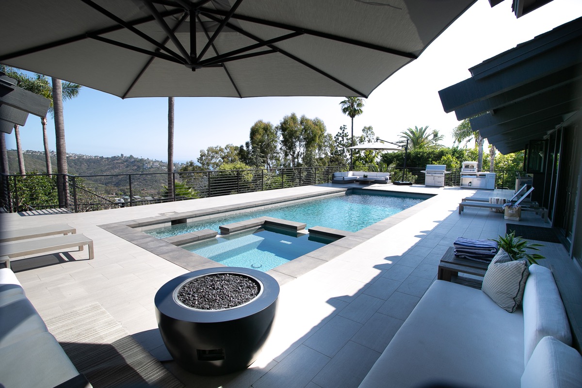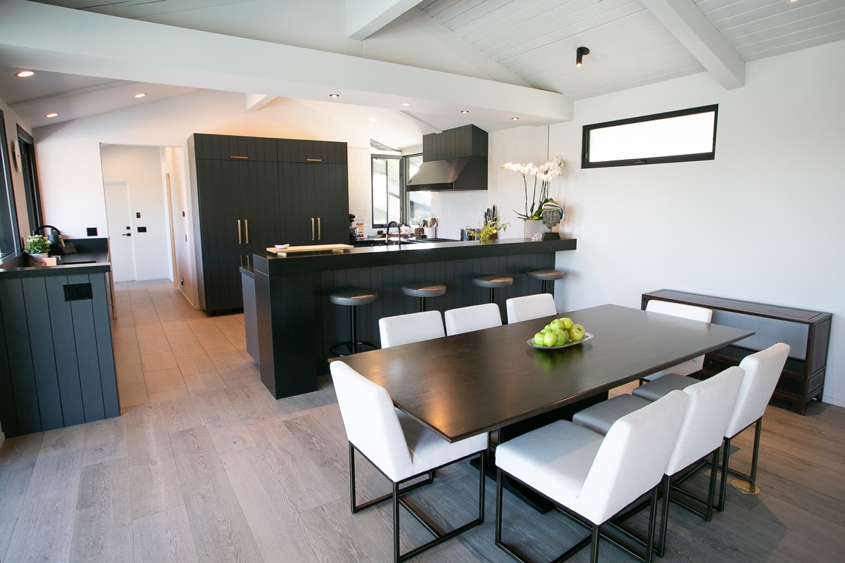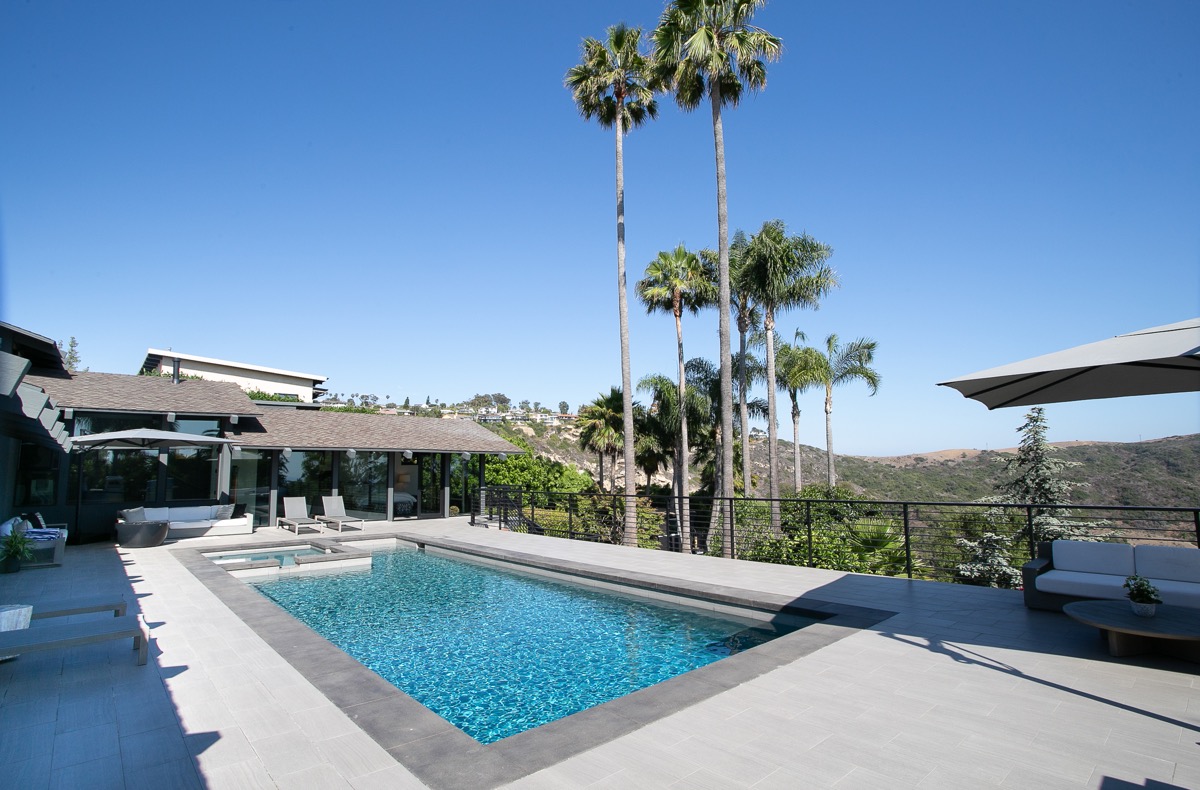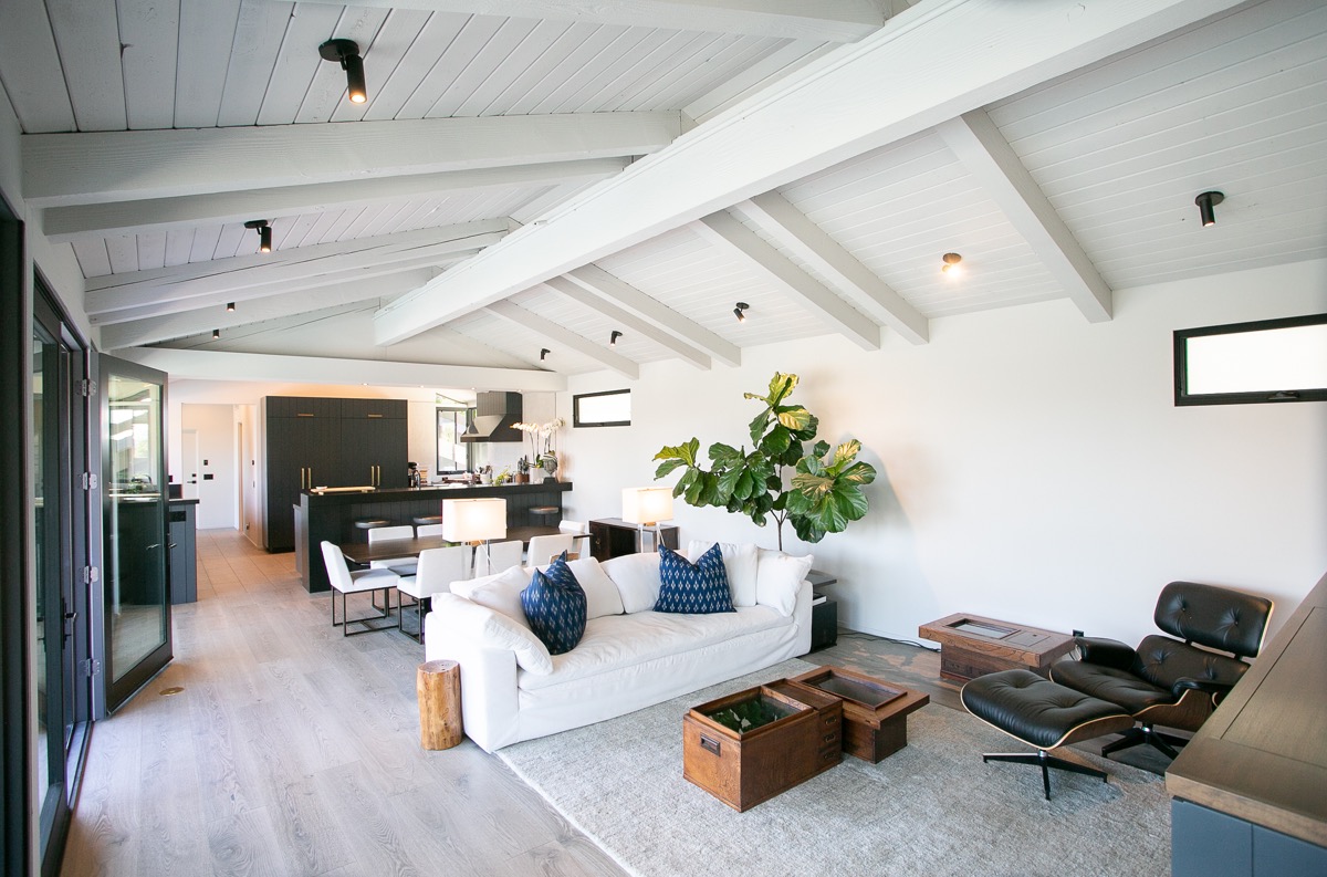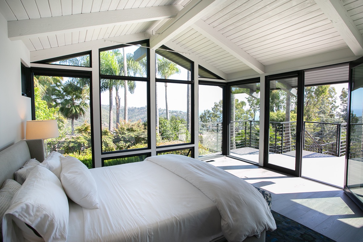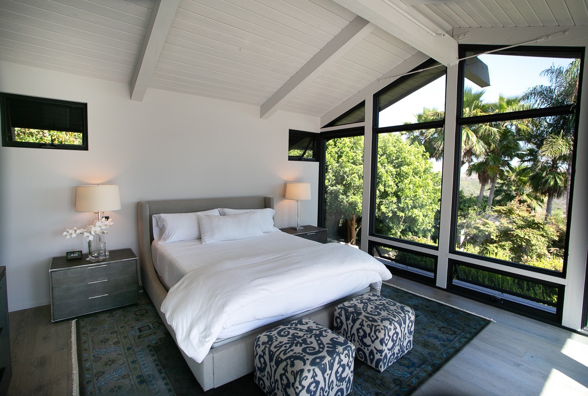 A minimal color palette creates bold interiors in this Laguna pad. The best part? The epic views from that master!
