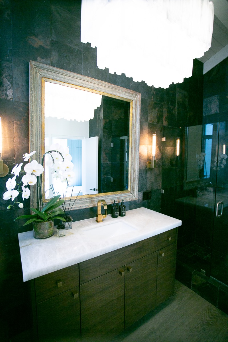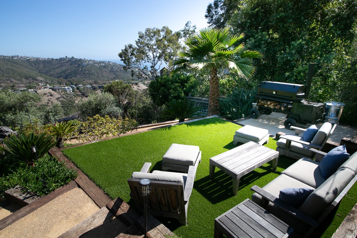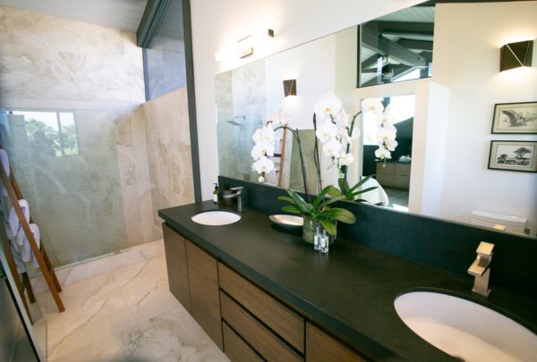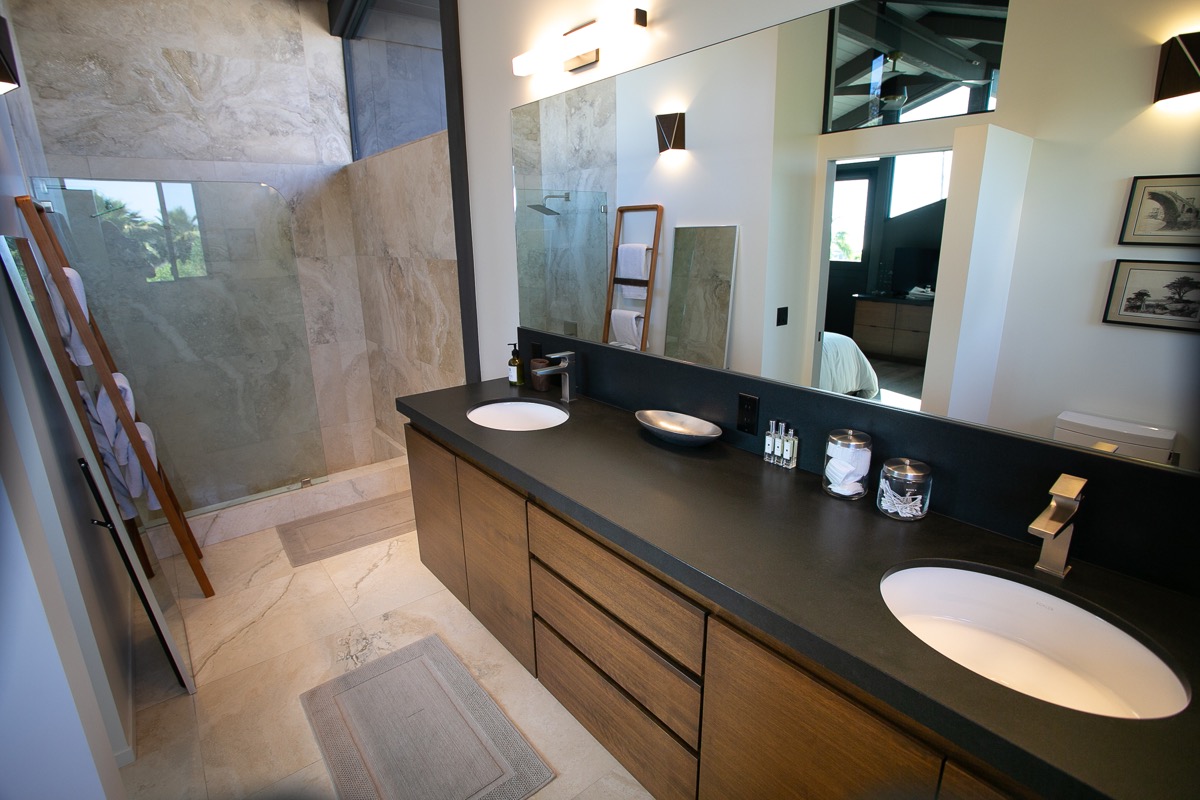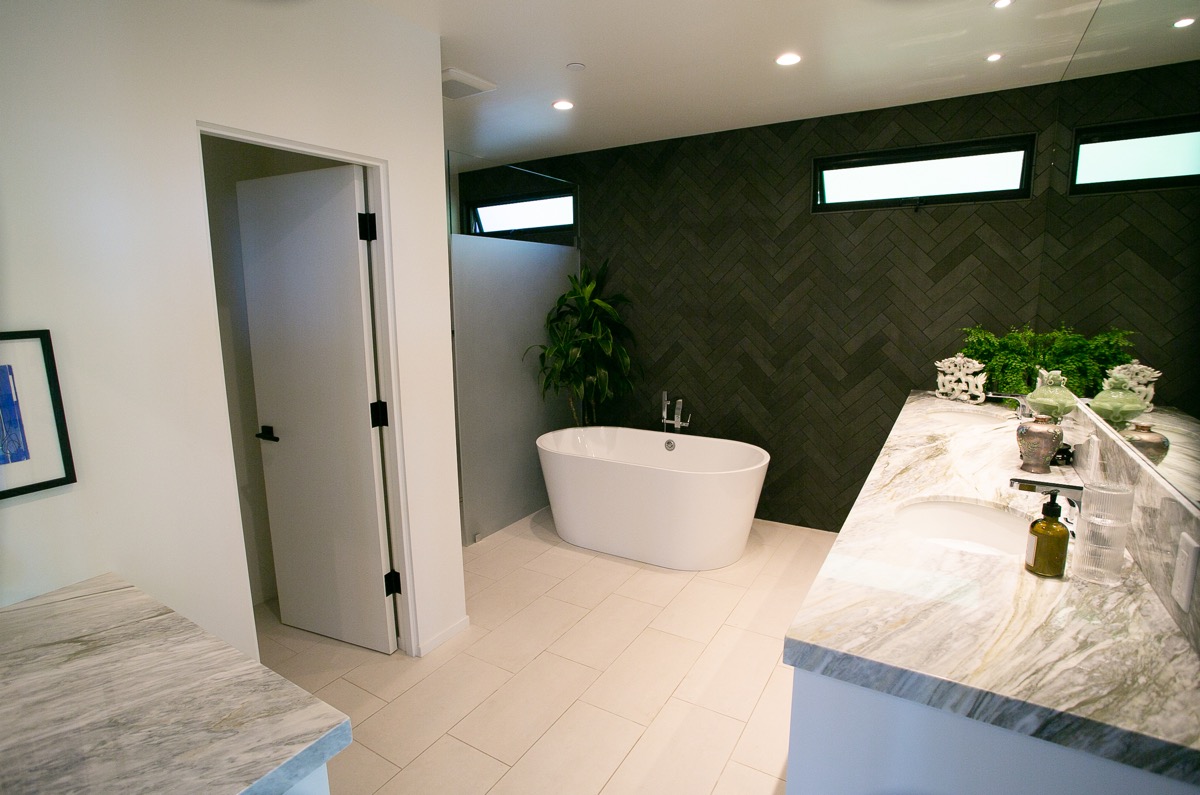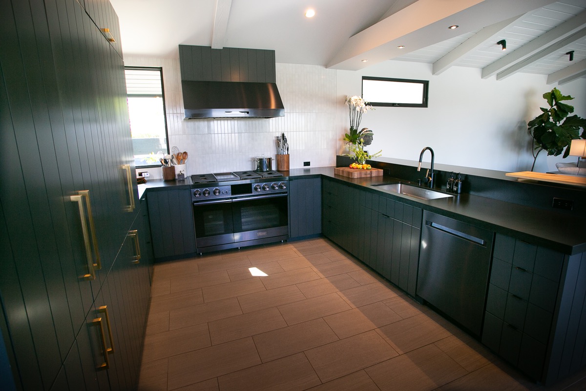 A minimal color palette creates bold interiors in this Laguna pad. The best part? The epic views from that master!