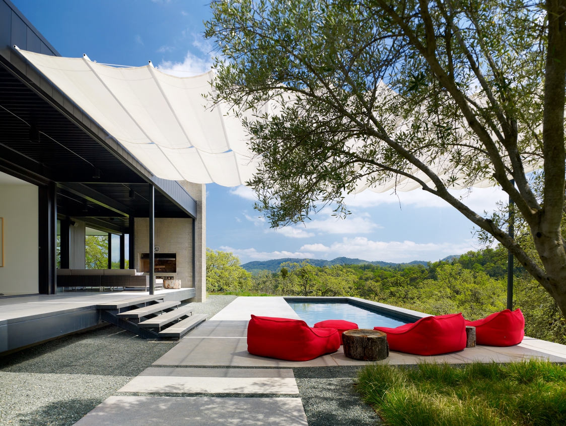 A private retreat, located on a lush 1,800-acre property called Long Valley Ranch. The home sits at 1,600-feet in elevation overlooking Ukiah Valley. It’s nothing but gorgeous rolling hills with oak trees. The interior is ‘lazy modern’, lots of low lounges and relaxed decor, so just lay back and take in the views.