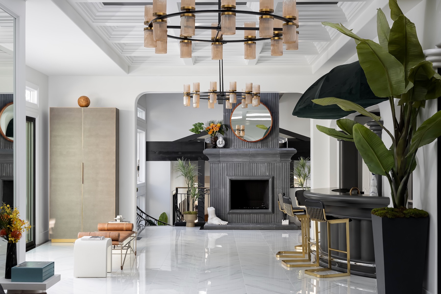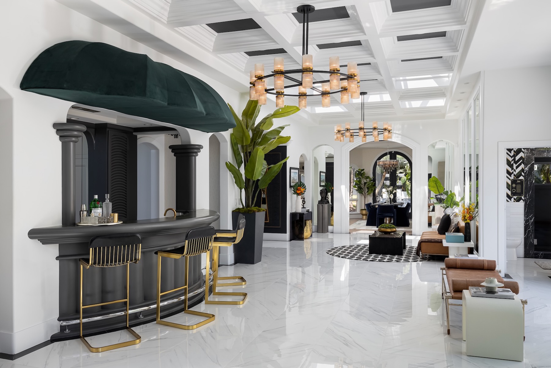 All glammed up and ready for production! This stunning home sits on nearly 2 acres next to a golf course and truly has to be seen to be believed. It has every amenity of modern living imaginable including an art gallery, two kitchens, home gym, game room, movie theatre, smart home capabilities, outdoor bar, elevator, guard house, as well as 6 bedrooms and 12 bathrooms.