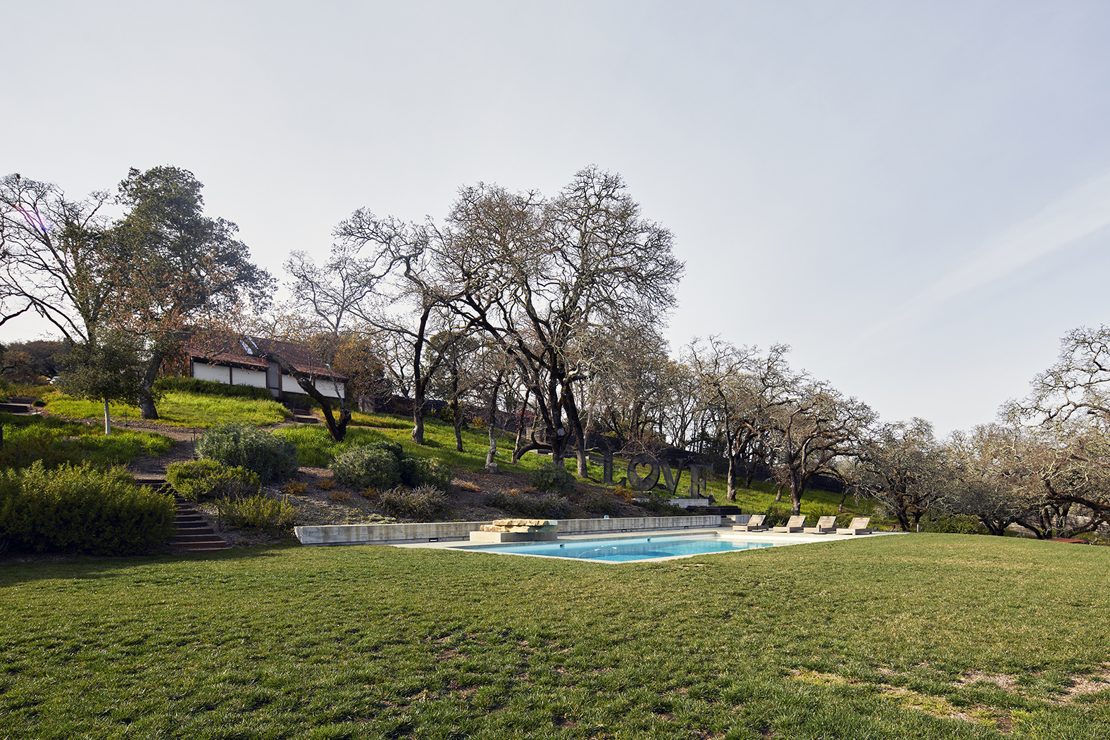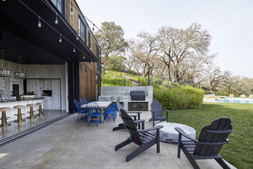 Located on 5 acres, the main house has 4 beds and 4 bathrooms. The ‘mini barn’ we call the Shed has a sink, TV and glamping (no insulation) attached rooms with 4 beds. Gated entry leads to a whimsical estate of complete privacy in a perfect microclimate with sweeping southeasterly views across the pool, lawn, olive orchard and Sangiovese vineyard to the mountains beyond.