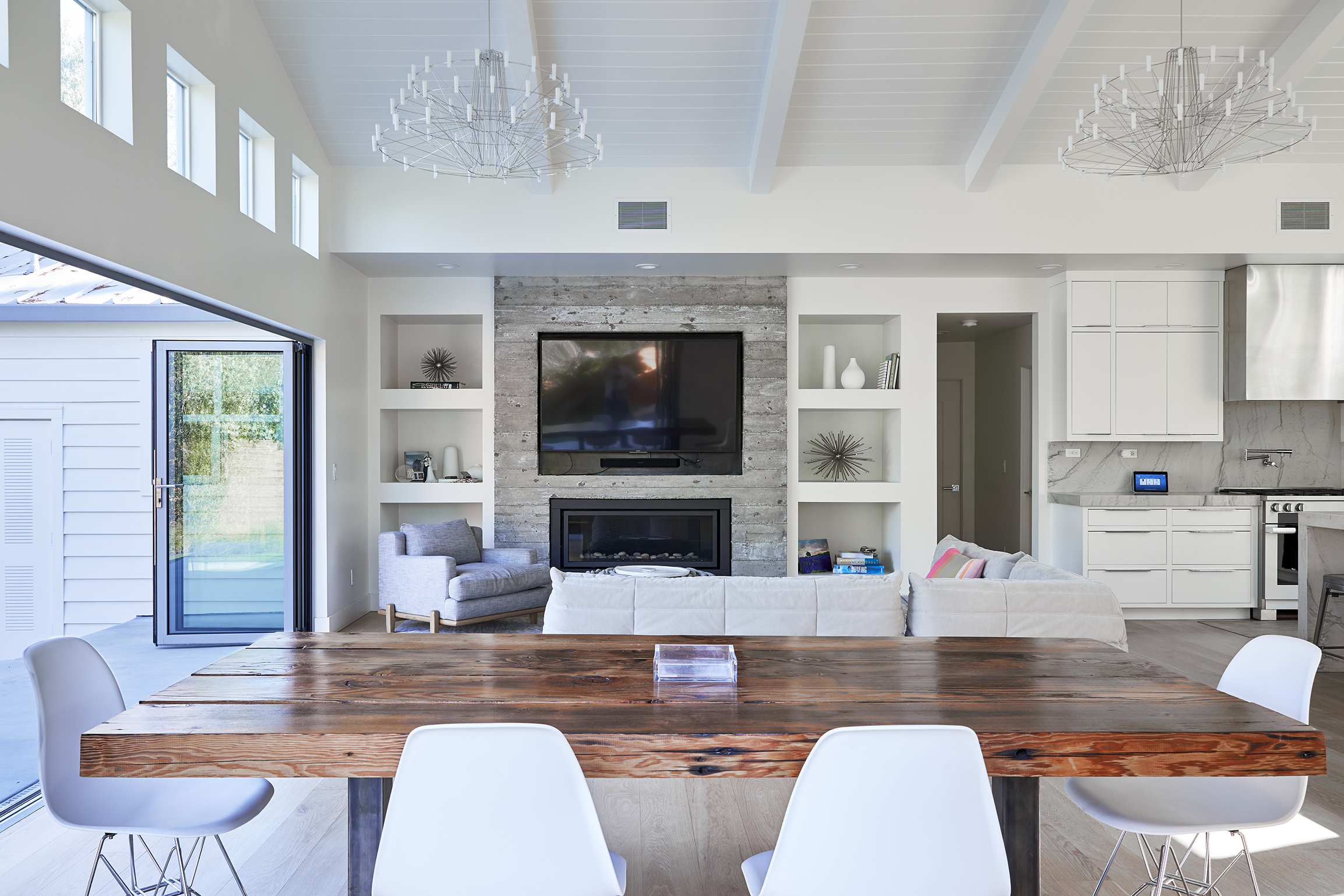 A light-filled, beautiful family home with clean lines and soaring ceilings.