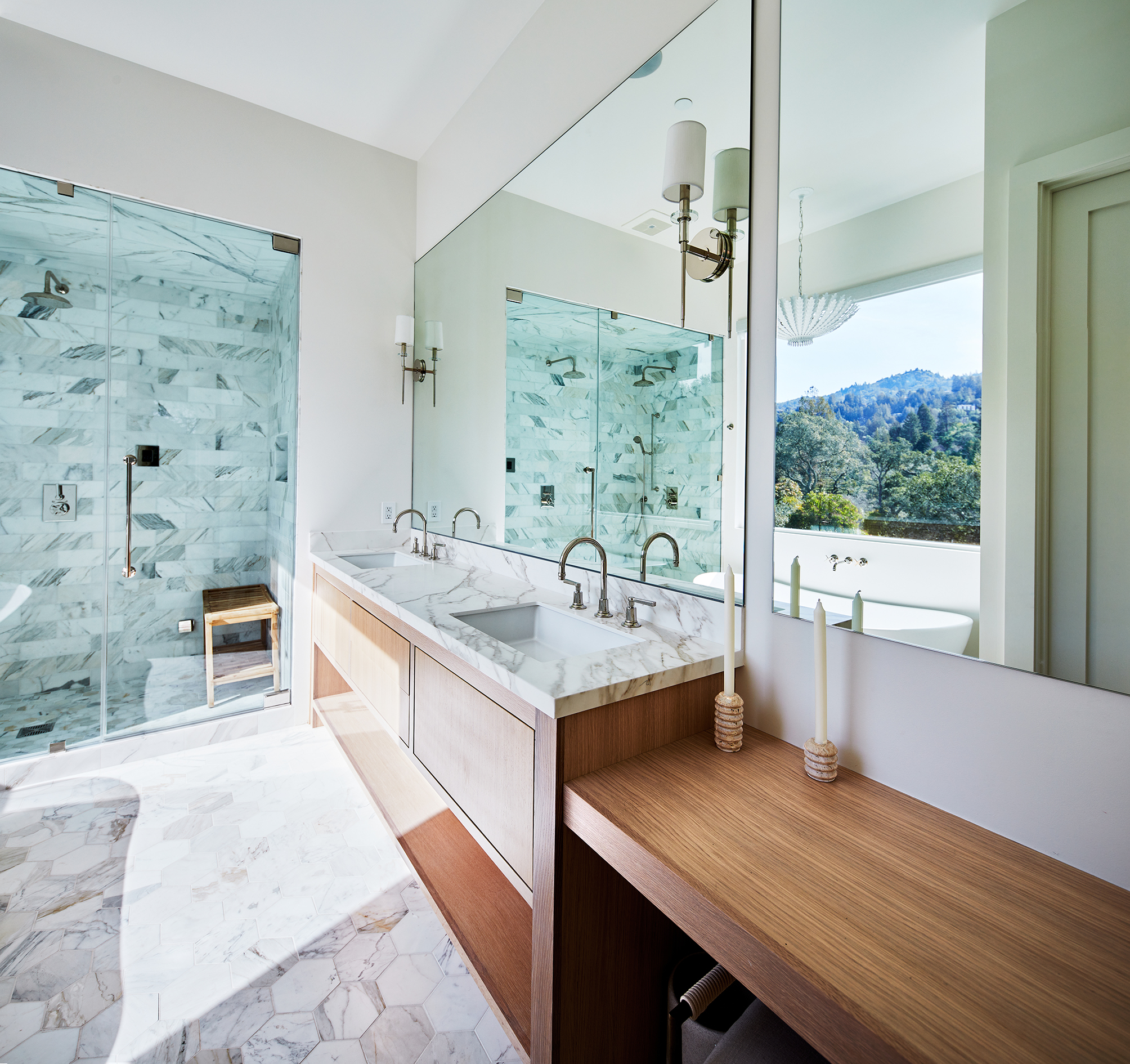 A modern new build with transitional accents! This home is full of light with lots of windows to showcase the beautiful Marin landscape of Mt. Tam.