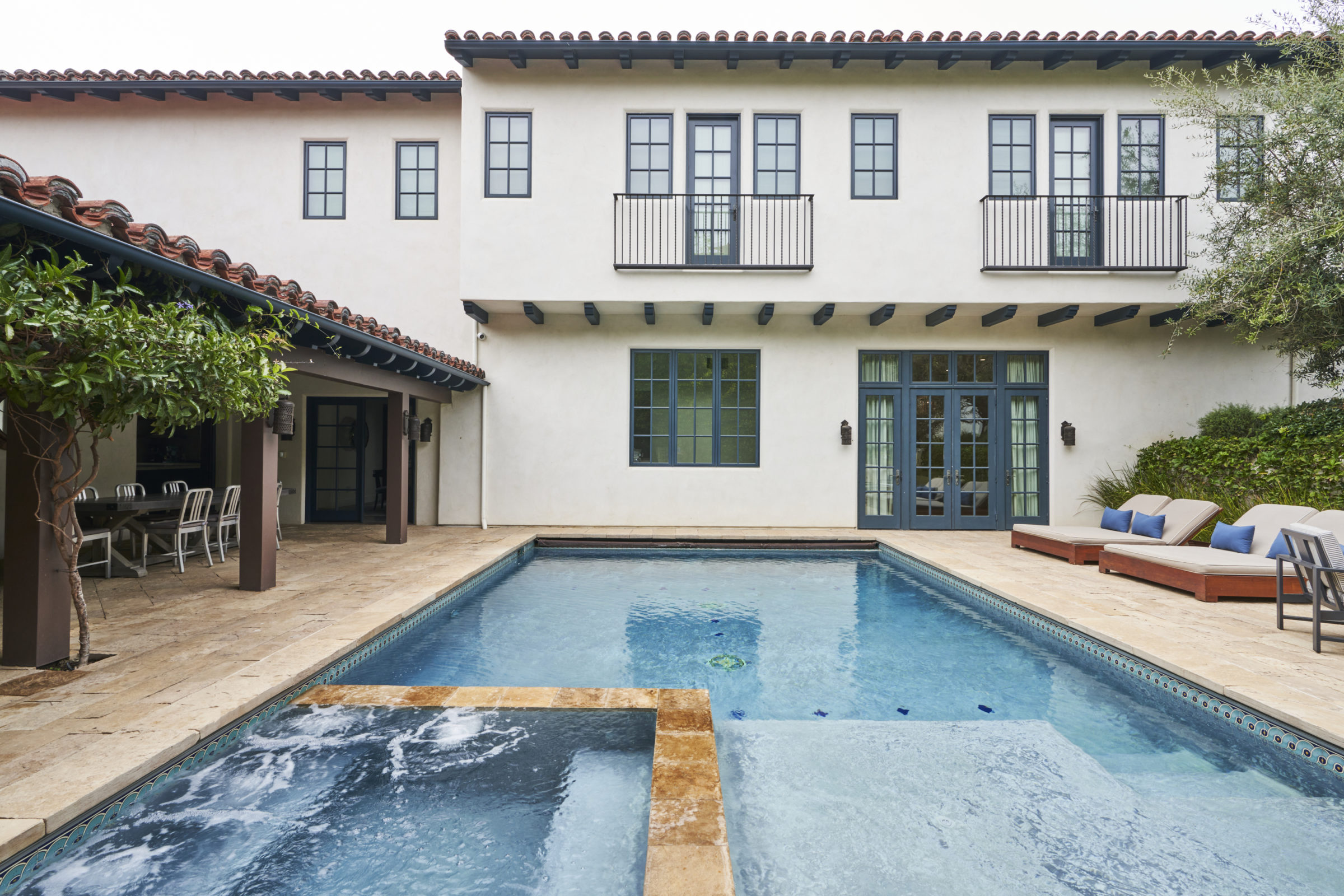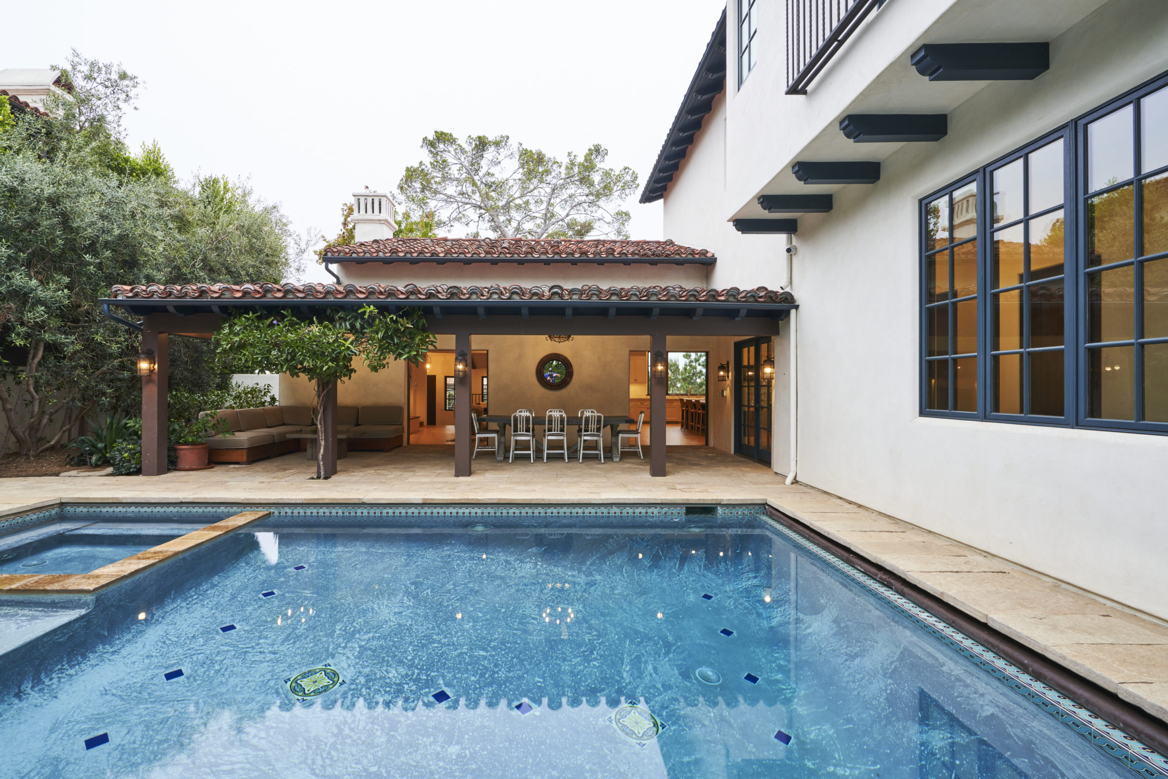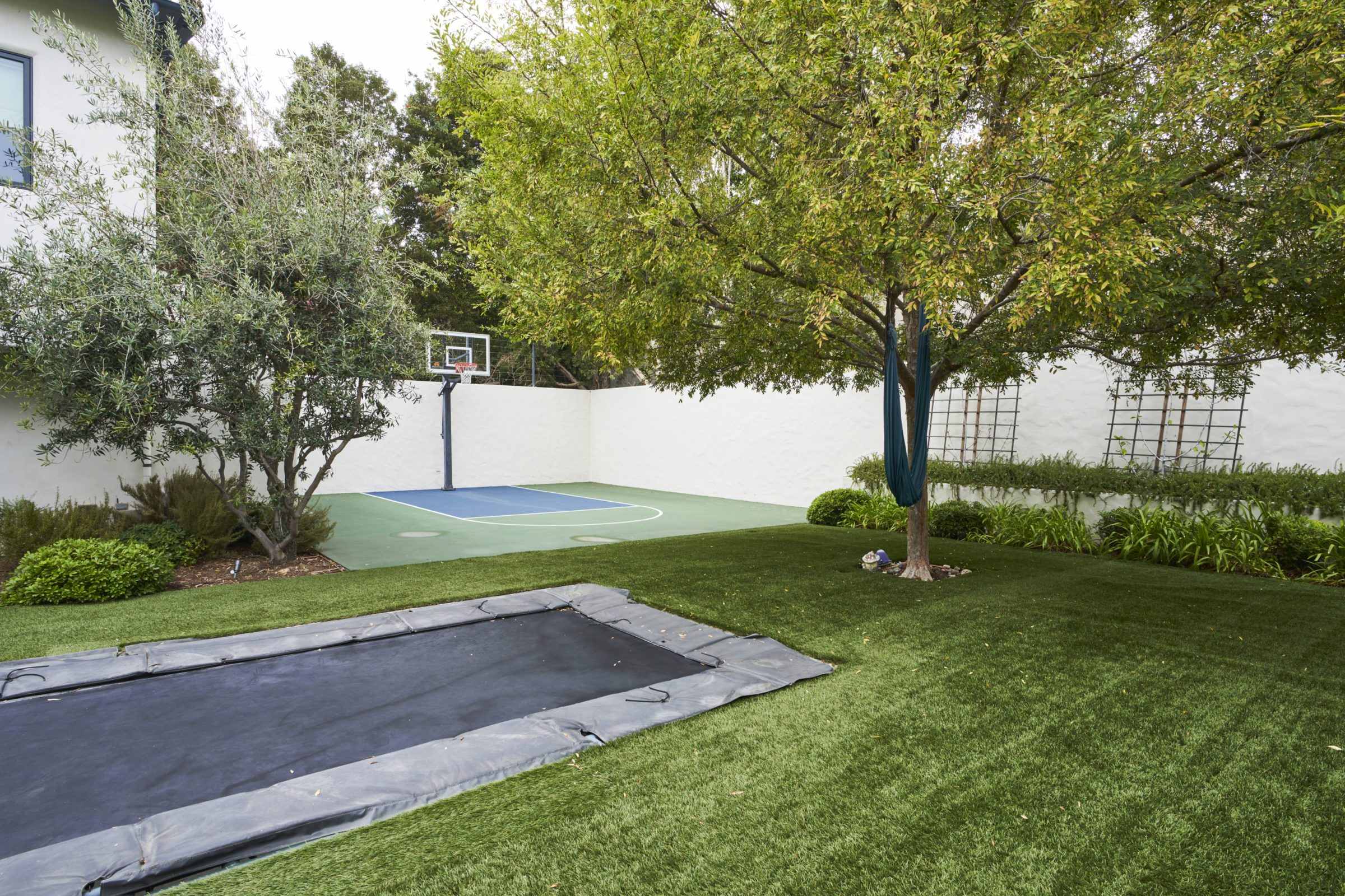 6 beds, 8 baths, 6,715 sq ft. Step inside to an open living room & extraordinary kitchen offering marble counters, Waterstone faucets, top-of-the-line appliances & an enormous island. The beautiful master is steps from the pool & garden. A perfect entertaining house with formal dining flows to the yard with an exceptional outdoor space complete with a Spanish courtyard w/ a large pool, covered loggia, built-in trampoline, grassy landscaped yard & full size sport court. Upstairs are 3 en-suite bedrooms, laundry & office w/ peek-a-boo ocean view. Lower level w/ laundry, 6th bedroom, media room & gym completes this beautiful home.